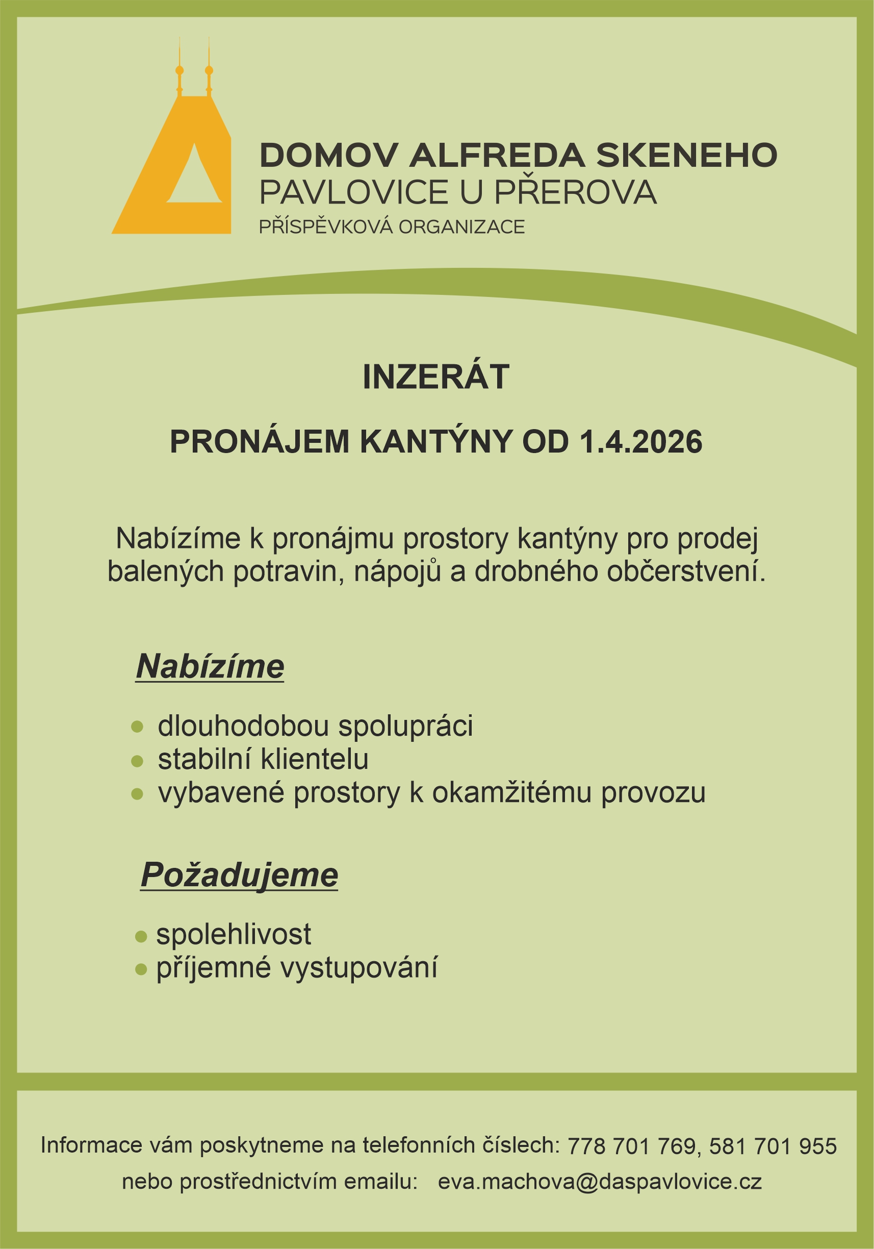 Inzerát na pronájem kantýny