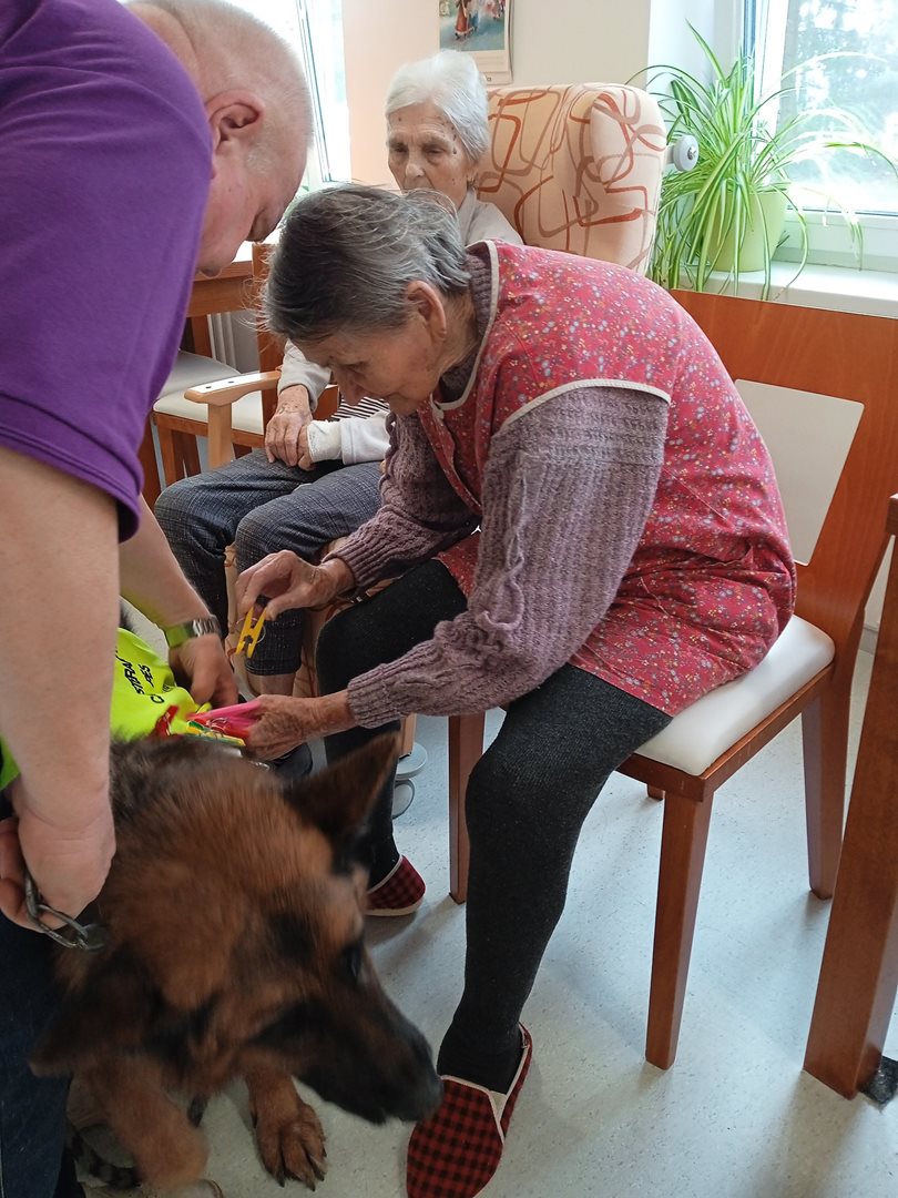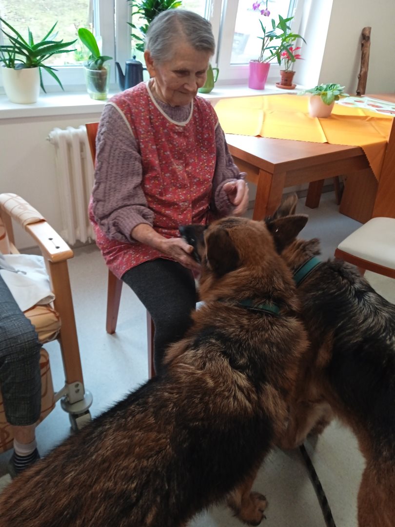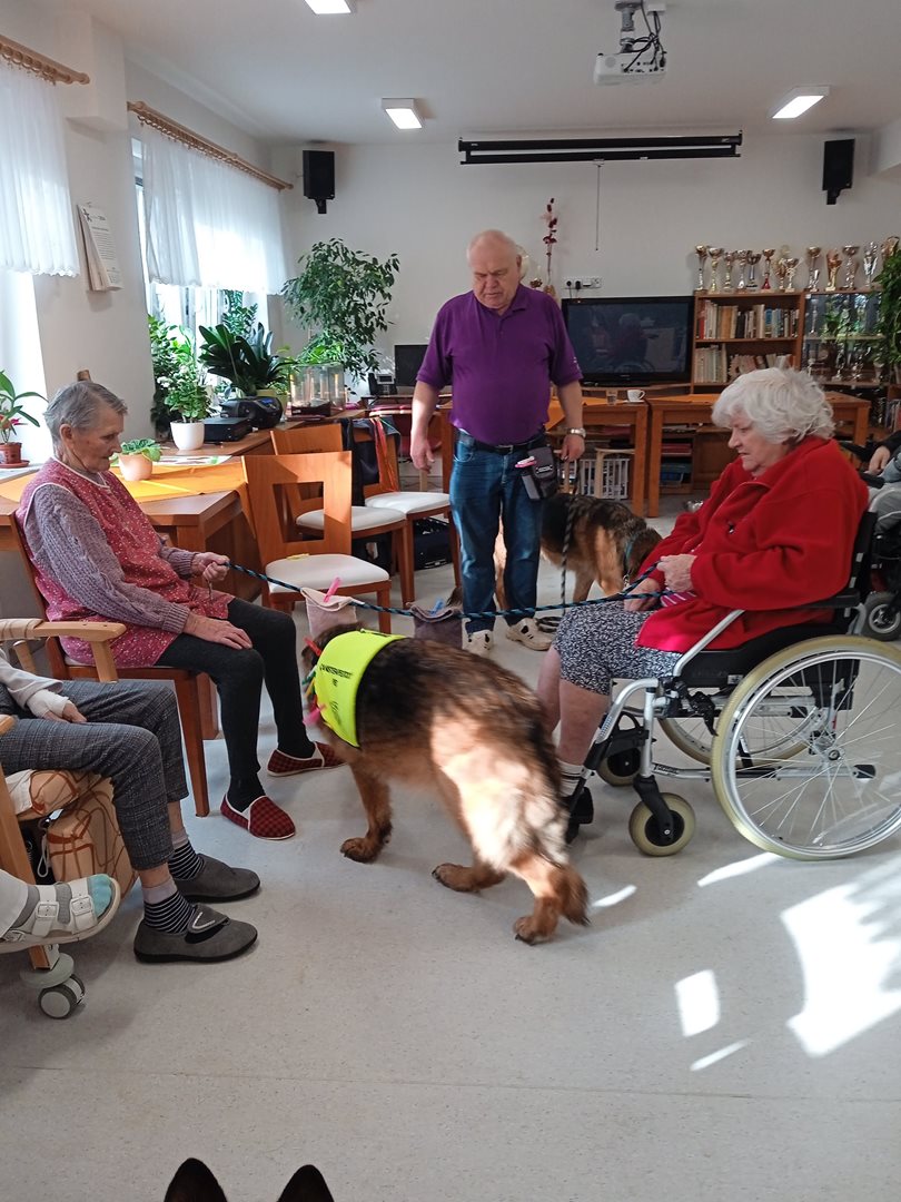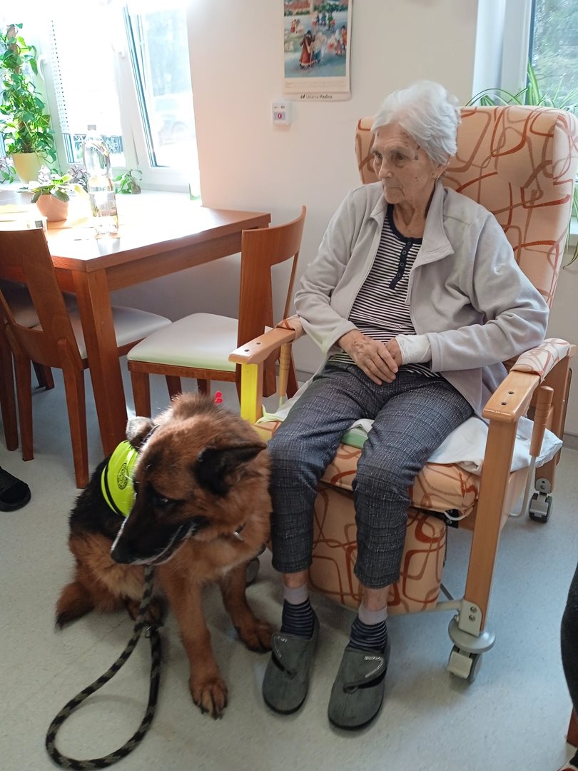 Dnes proběhla jak skupinová, tak individuální canisterapie, která byla financována z nadačního příspěvku z veřejné sbírky Ježíškova vnoučata. Jednalo se o projekt Zvířecí návštěvy v zařízeních pro seniory.