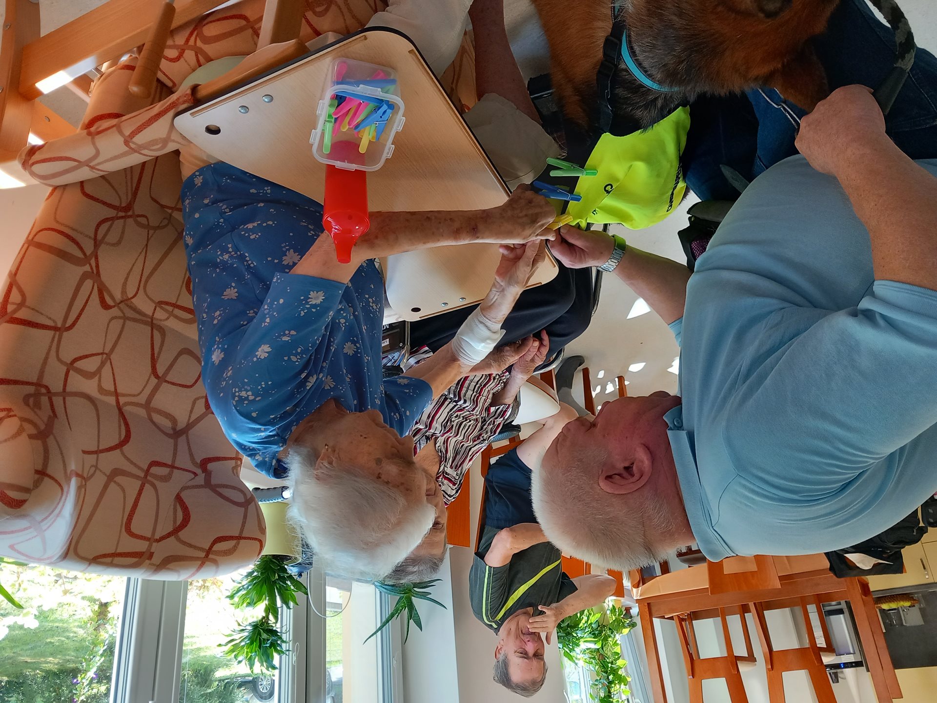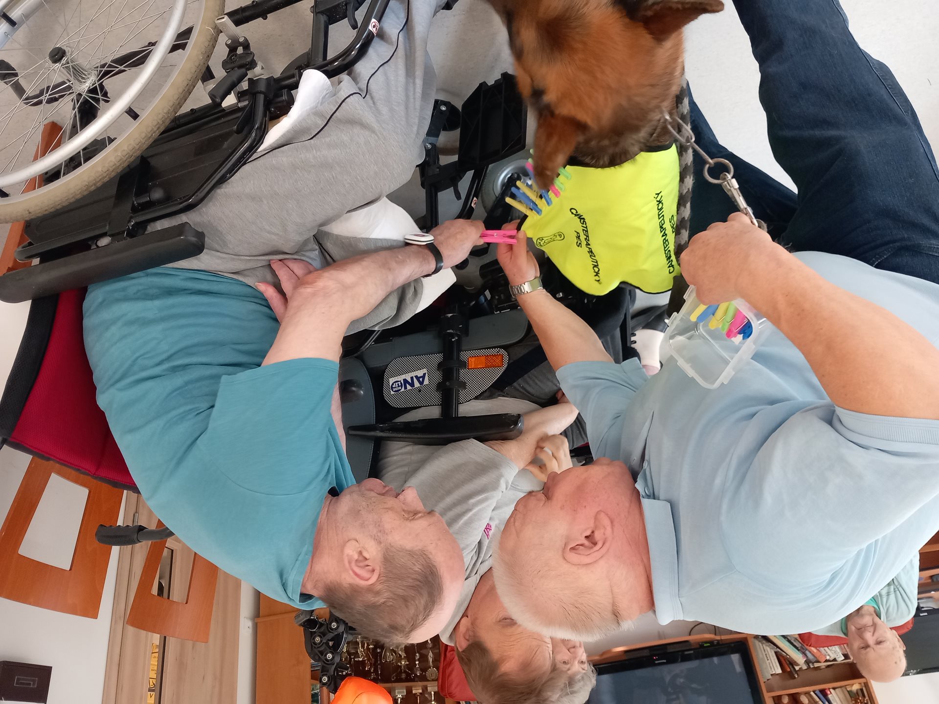 Během dnešní canisterapie uživatelé procvičovali jemnou motoriku, paměť, pozornost. Spolupracovali při řešení úkolů. Během canisterapie panovala příjemná atmosféra. K závěru byla puštěna relaxační hudba.