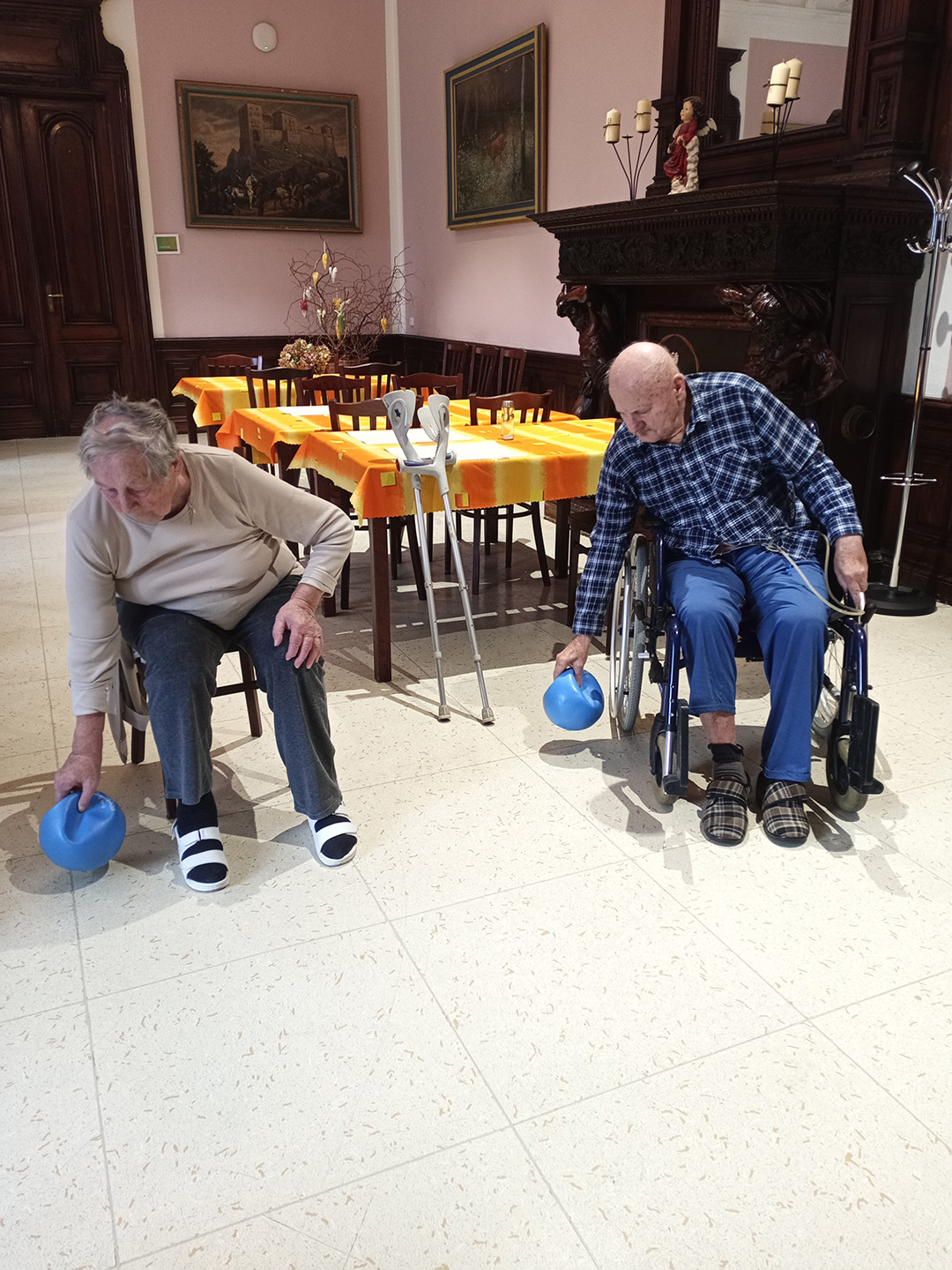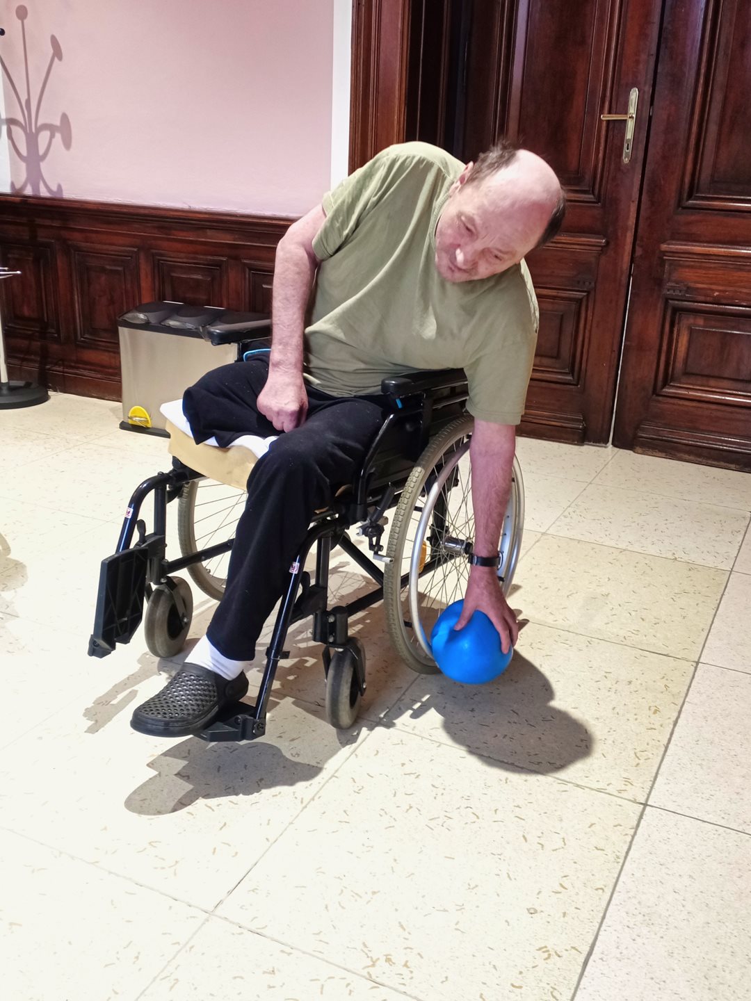Dnes jsme si pro uživatele připravili cvičení s míčem. Na konci cvičení uživatelé zkoušeli míč kopat, posílat si ho a předávat. V rámci seznamování uživatelů a trénování paměti měli říct jméno uživatele, kterému míč poslali. Byla to pro ně příjemná změna. Bavili se.