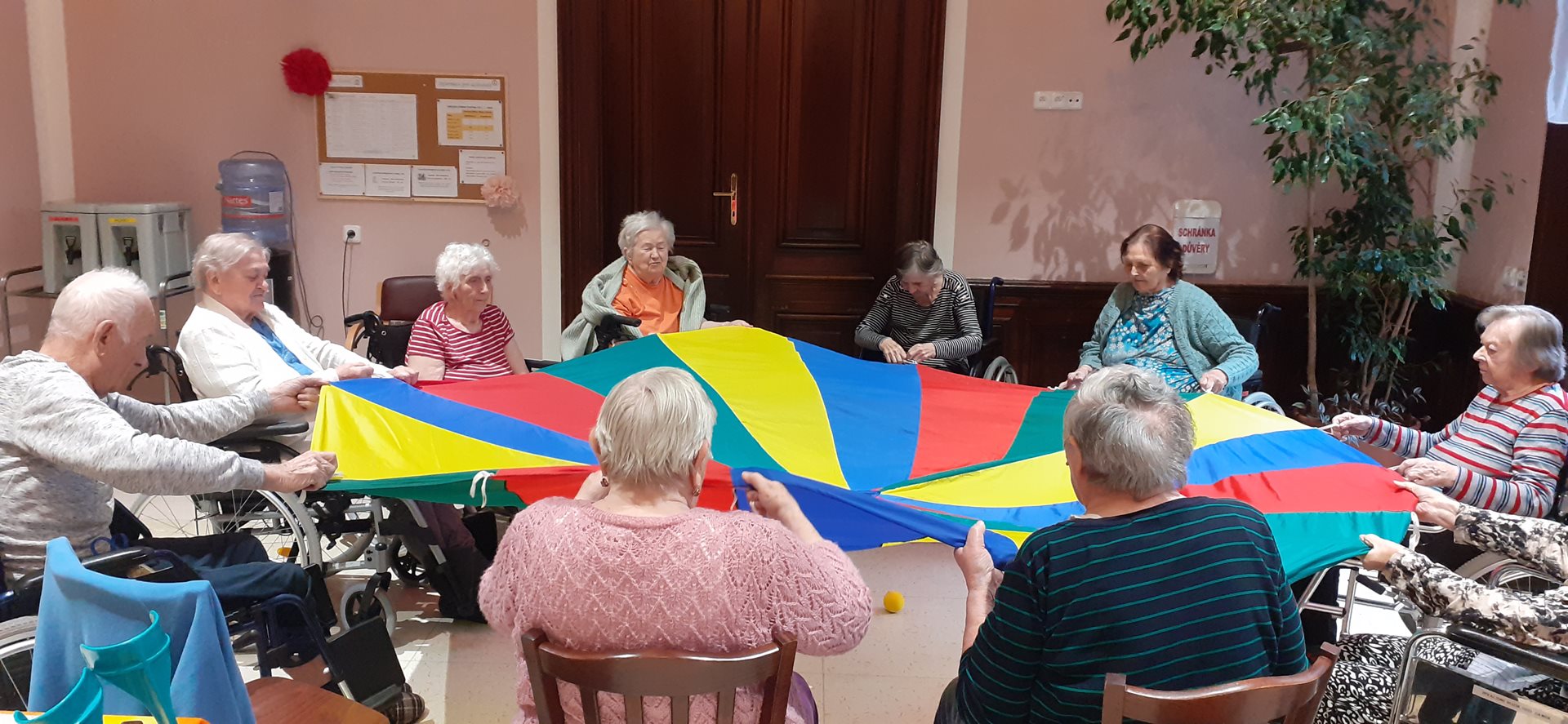 Po velikonočním oddychu se naši senioři mohli opět protáhnout a pobavit se při využití padáku.