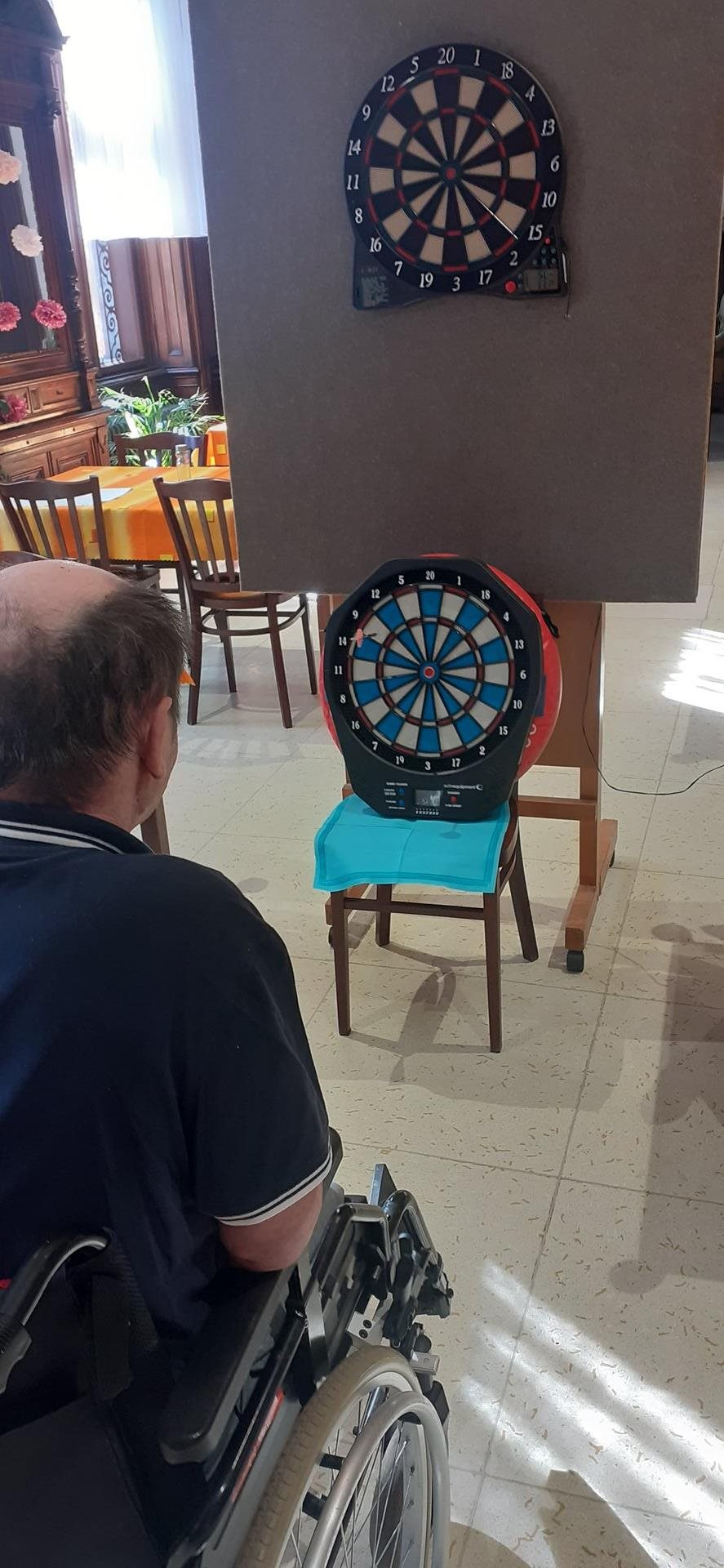 Dnes jsme se s uživateli pokusili hrát klasické šipky. Bohužel i po vyzkoušení byla hra pro naše uživatele velmi náročná. Zvolili jsem tedy hru na podobném principu-hod tenisákem na terč. Tato hra byla zábavná a jednodušší na koordinaci pohybu.