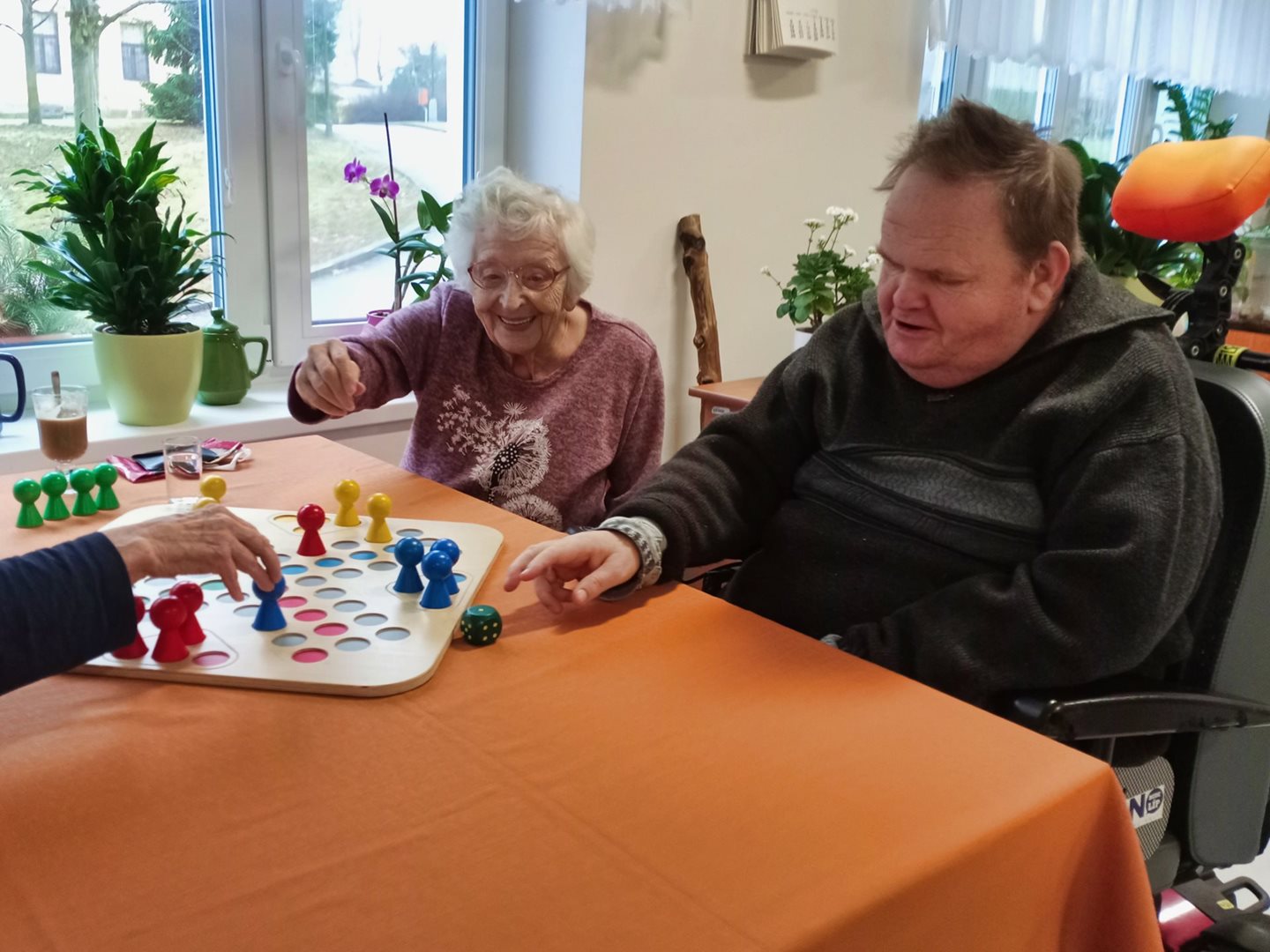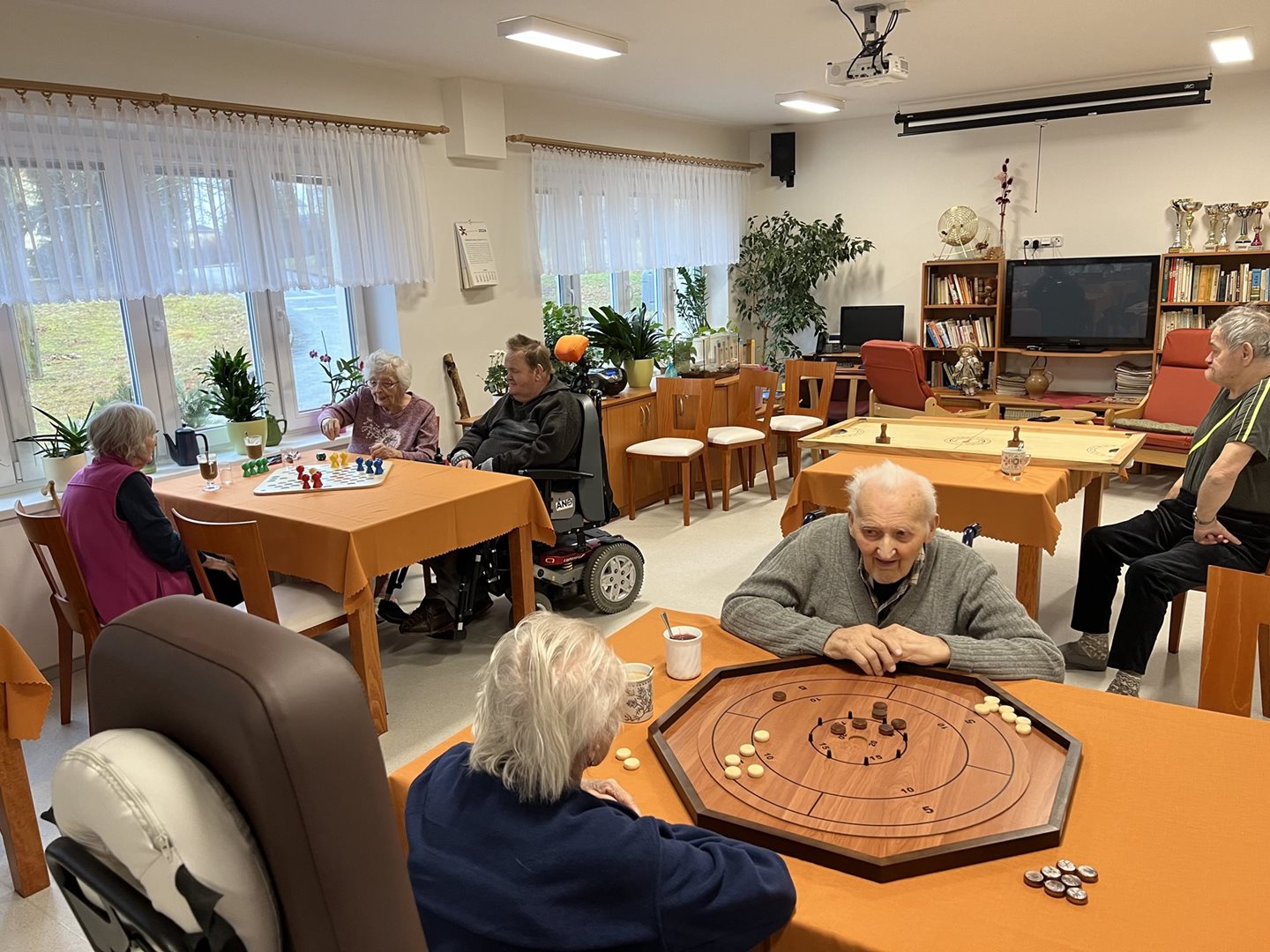 Dnes měli uživatelé možnost zahrát si novou hru /Crokinole/ a stolní hokej. Nesměla chybět ani oblíbená hra Člověče, nezlob se. Bylo to pro uživatele příjemně strávené dopoledne.