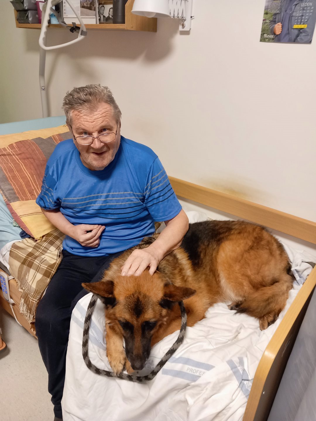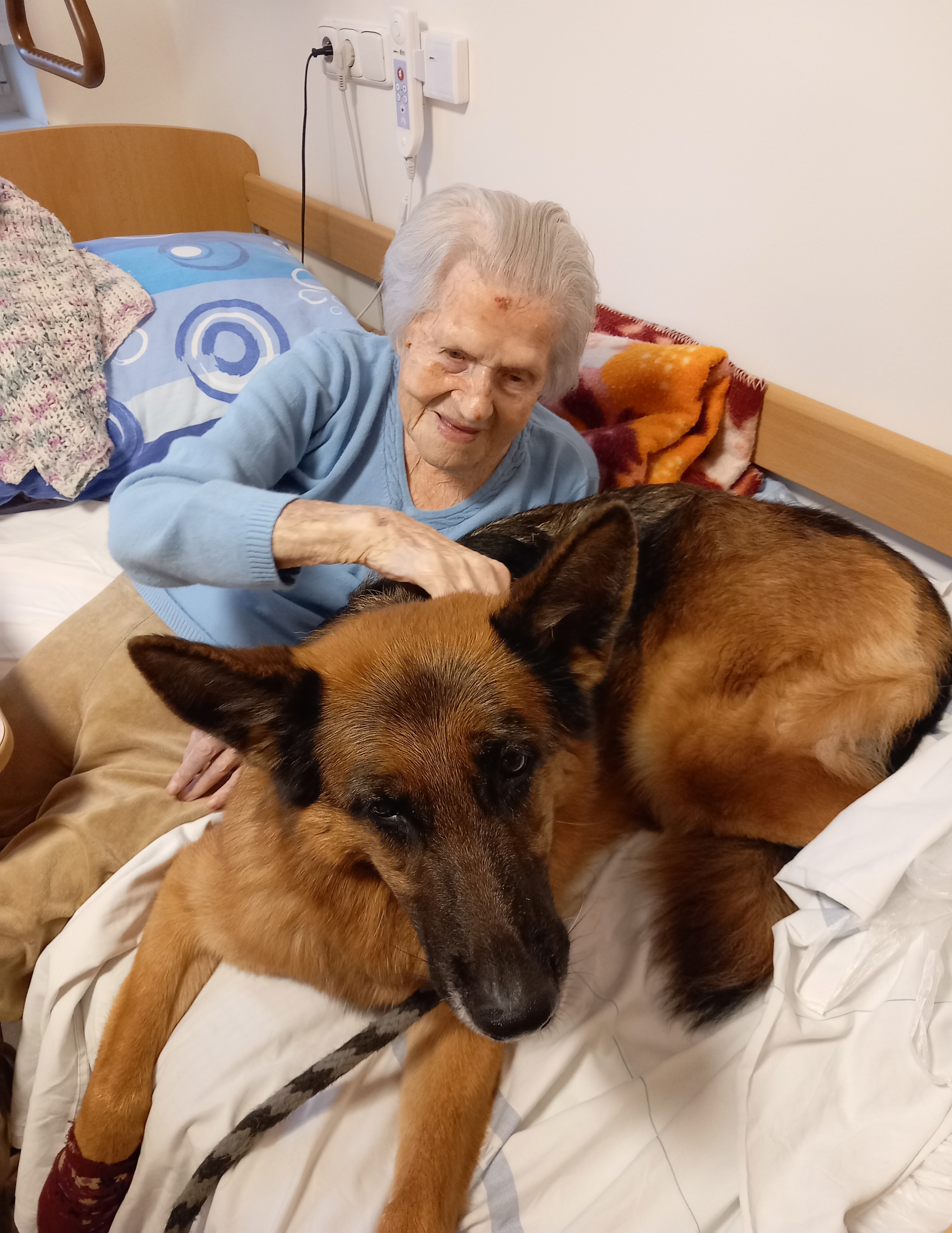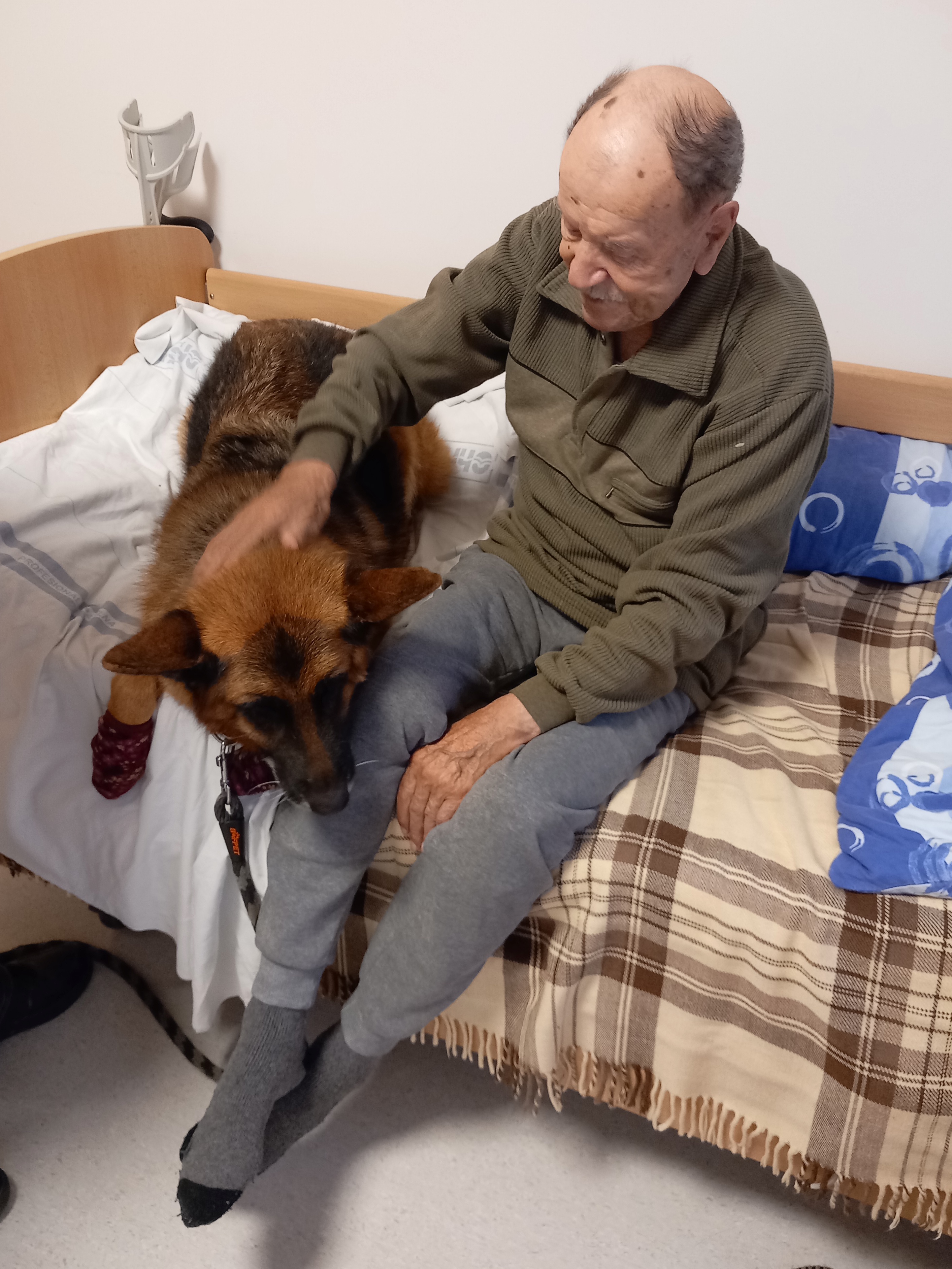 V rámci individuální canisterapie navštívil psovod s fenkami uživatele na jejich pokojích. Uživatelé měli radost, že mají prostor a svůj čas, který stráví s fenkami.