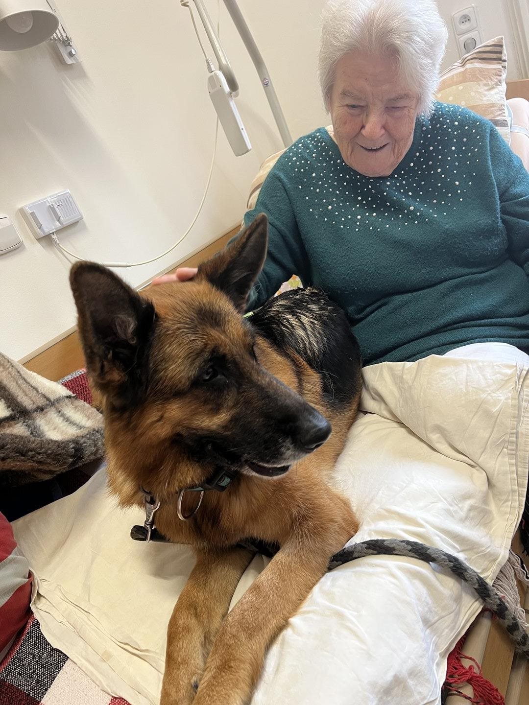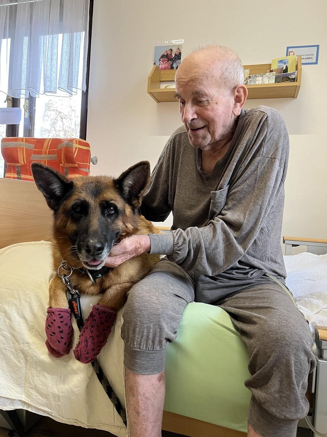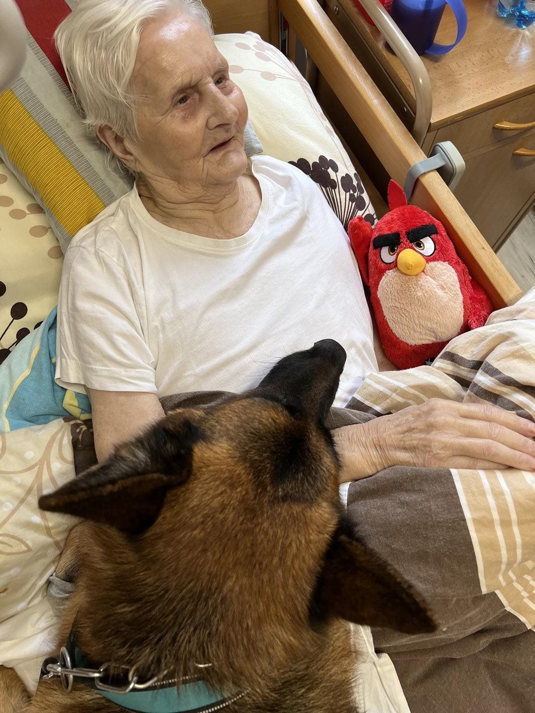 Dnes jsme opět v domově přivítali psovoda s fenkami v rámci individuální canisterapie. Navštívili uživatele na jejich pokojích. Uživatelé měli na fenky vlastní čas a měli možnost si je užít.