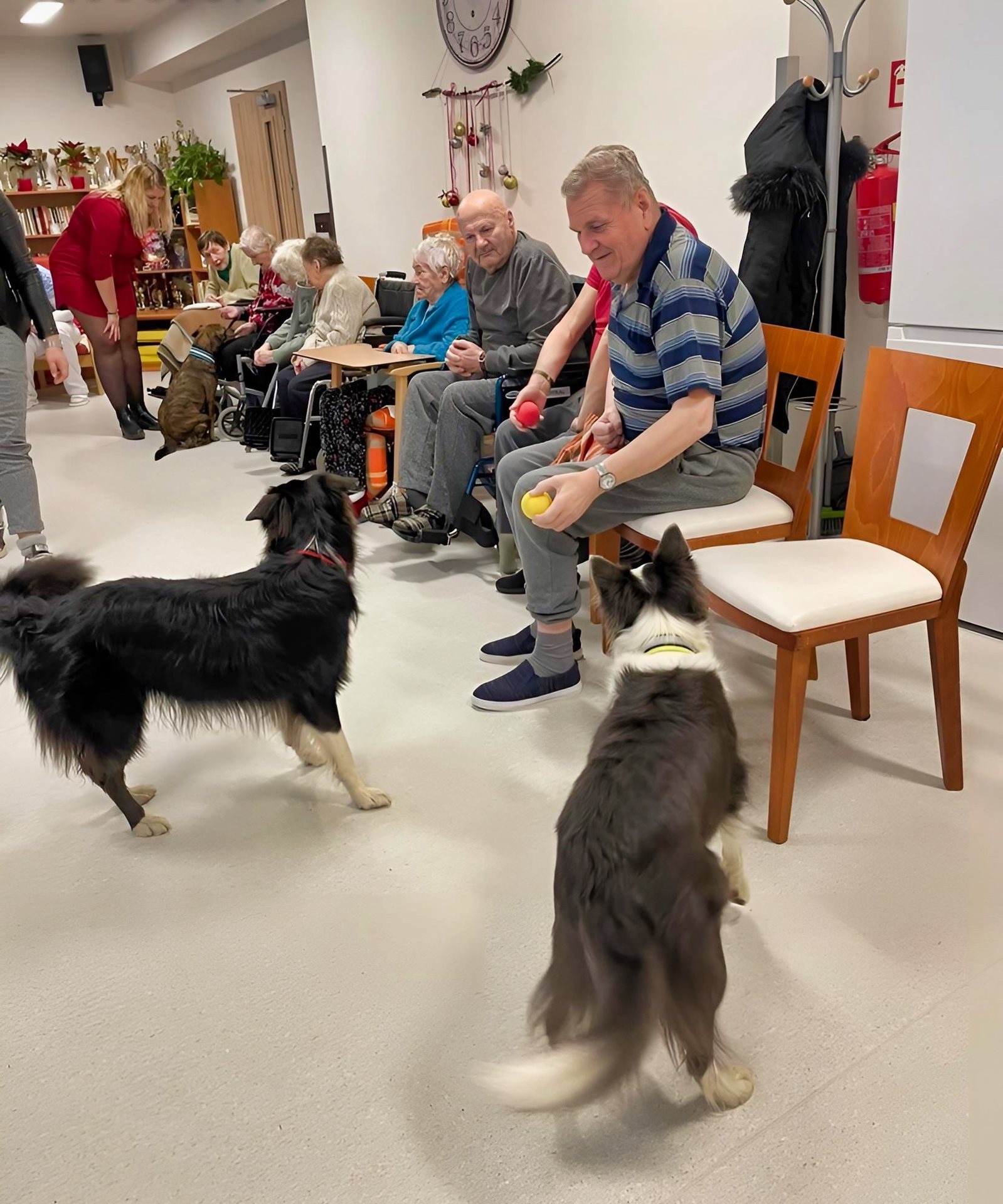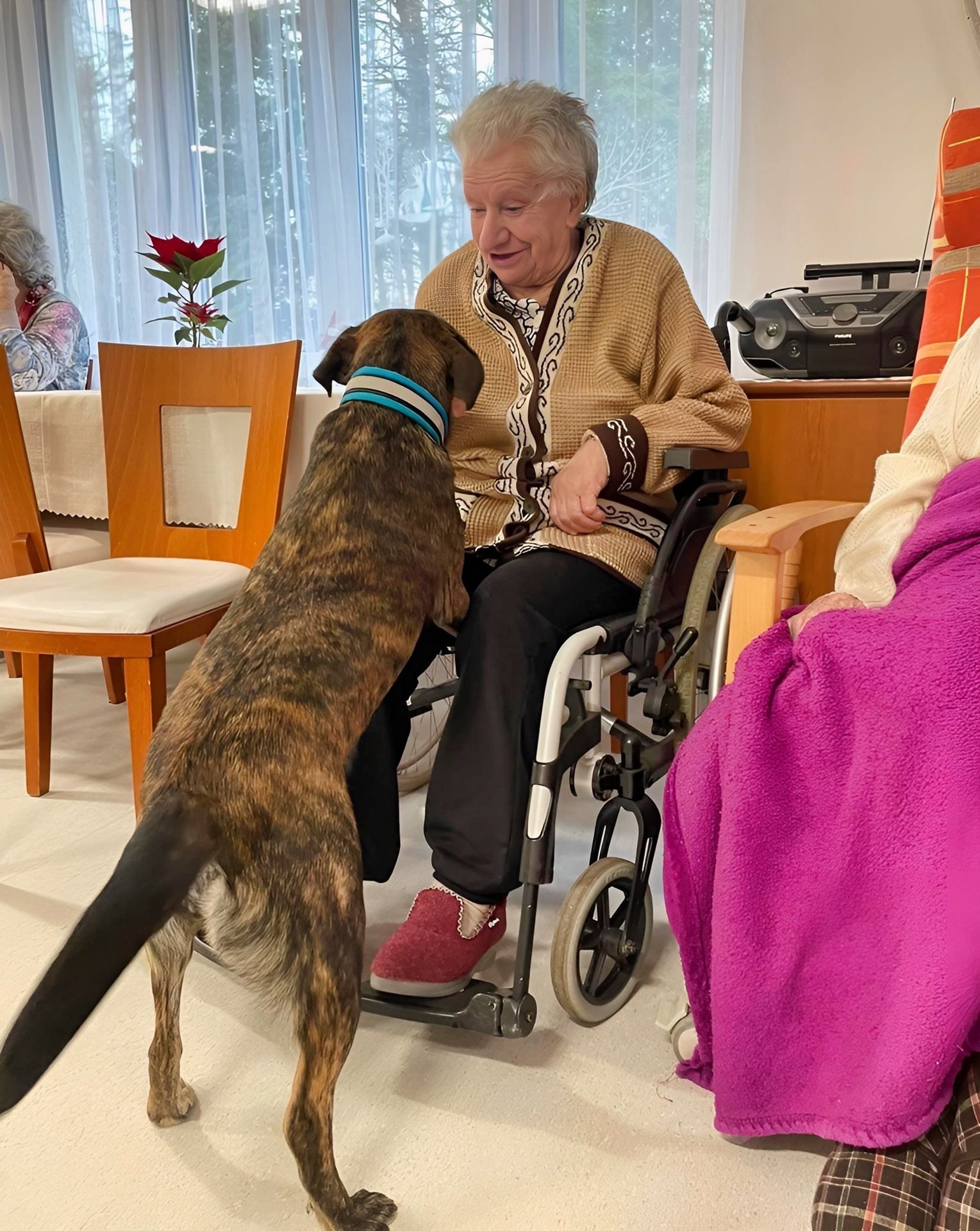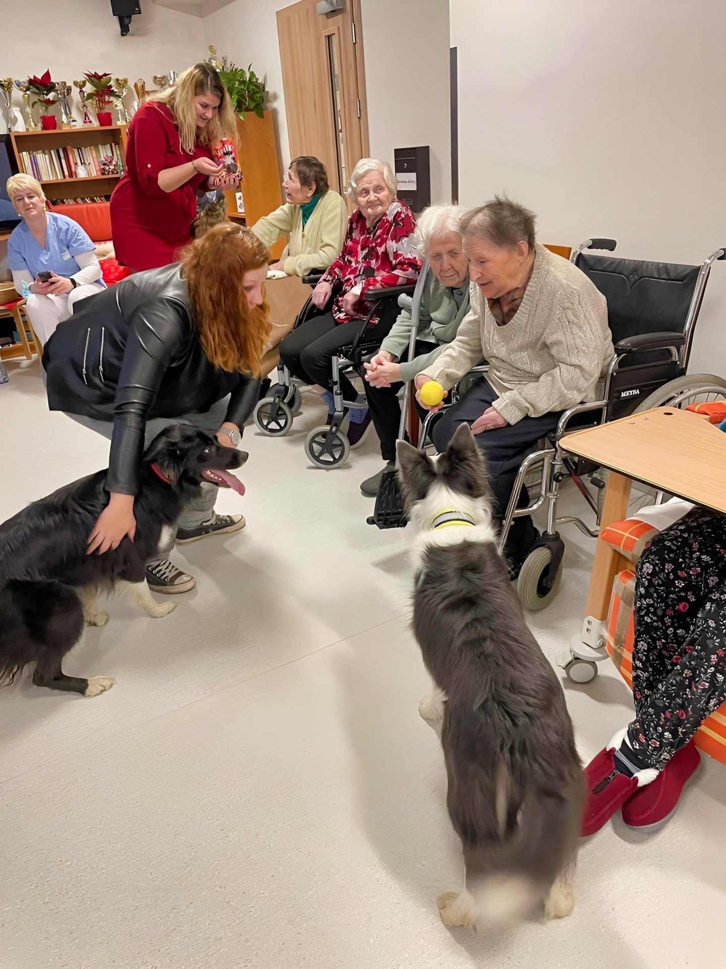 Tuto sobotu k nám do Domova přicestovaly dvě milé dámy až z Prahy. Doprovodem jim byli 3 pejsci, kteří splnili přání dvěma uživatelům, kteří nemají to štěstí být potěšeni rodinou či blízkým. Společně udělali radost i ostatním milovníkům zvířat ve společenské místnosti.