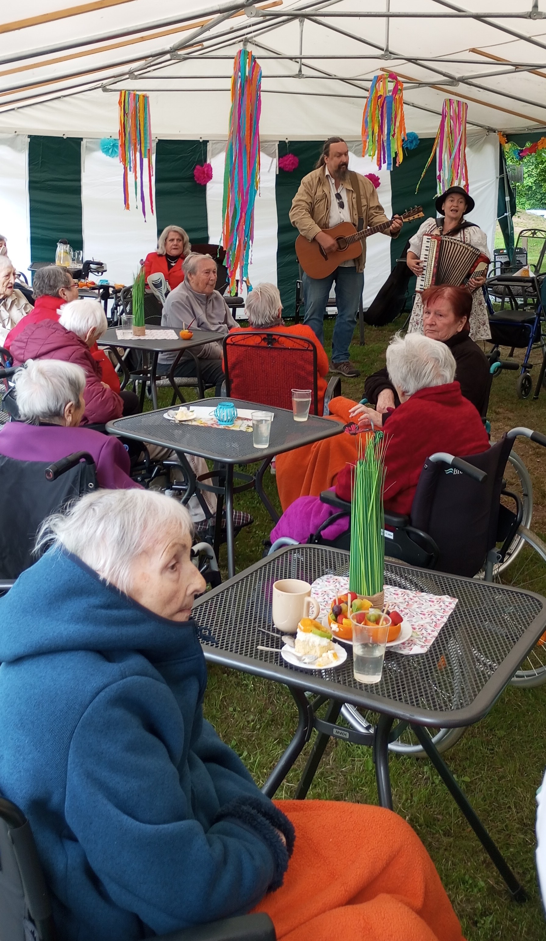 Kácení máje je tradiční slavnost, která symbolicky uzavírá období máje. Lidé se při této příležitosti scházejí, aby společně oslavili konec jara a příchod léta. Tato tradice má hluboké kořeny v české lidové kultuře a stále si udržuje své kouzlo i v moderní době. Také u nás v Domově jsme tuto tradiční slavnost uspořádali. I když nám počasí příliš nepřálo, zúčastnil se jí hojný počet našich seniorů. V doprovodu harmoniky jsme si zazpívali krásné moravské písně a nechybělo ani chutné občerstvení z grilu a ke kávě ovocný zákusek.