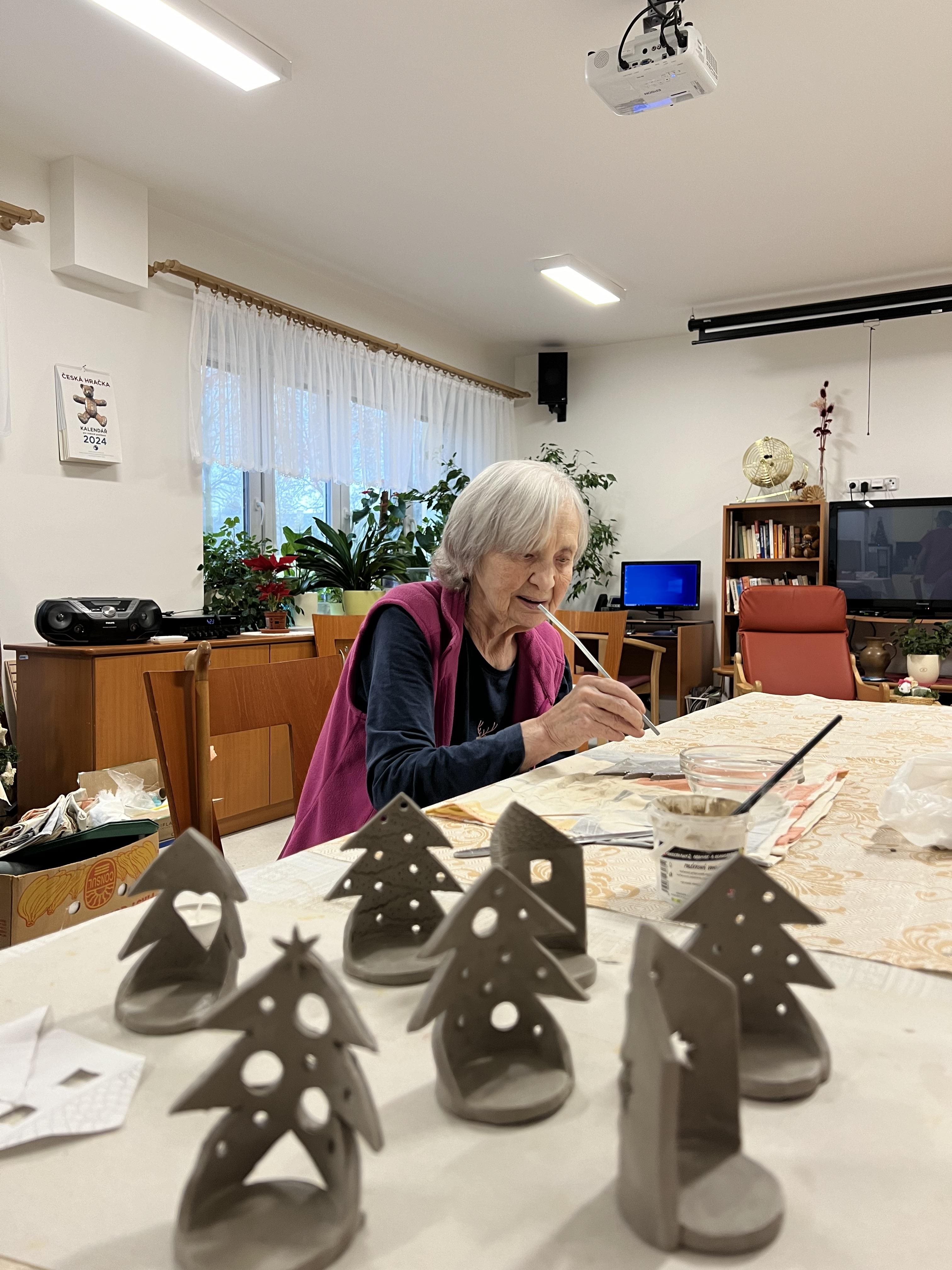 Během dopoledne se uživatelé věnovali výrobě vánočních svícnů.