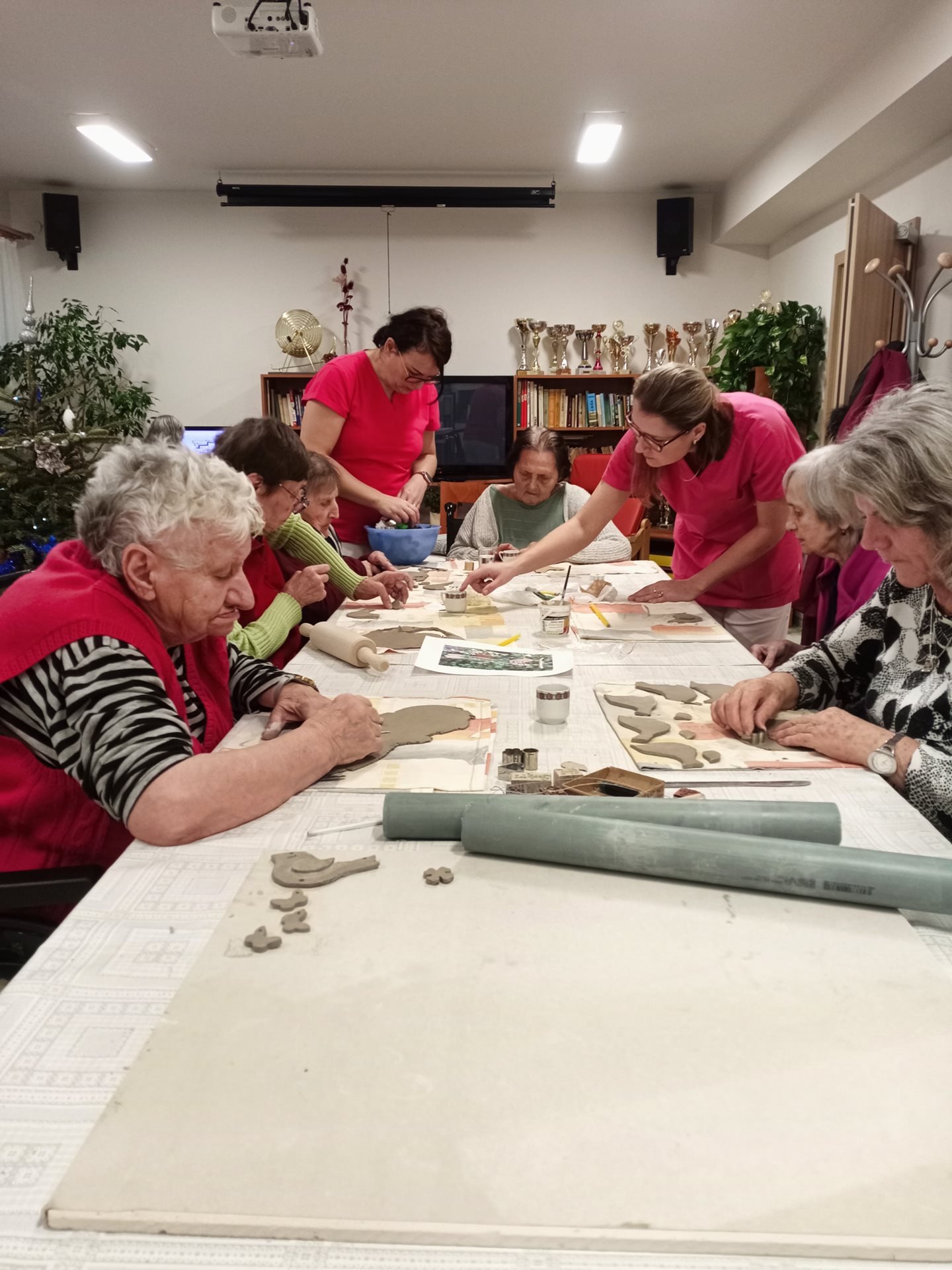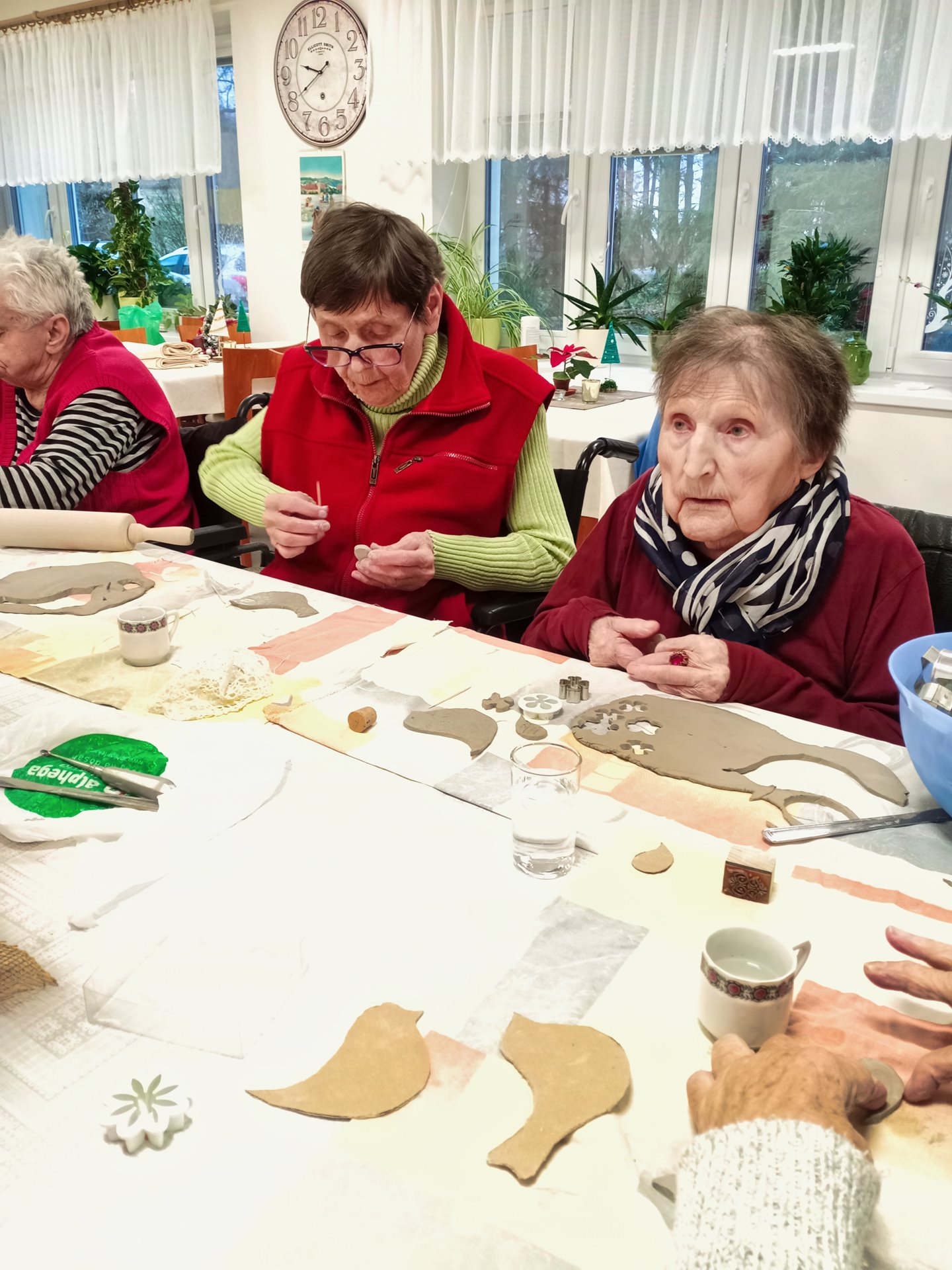 Dnes jsme s uživateli vyráběli z keramiky ptáčky k zavěšení. Moc se jim povedli.
