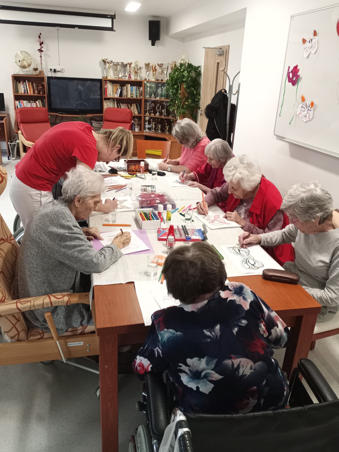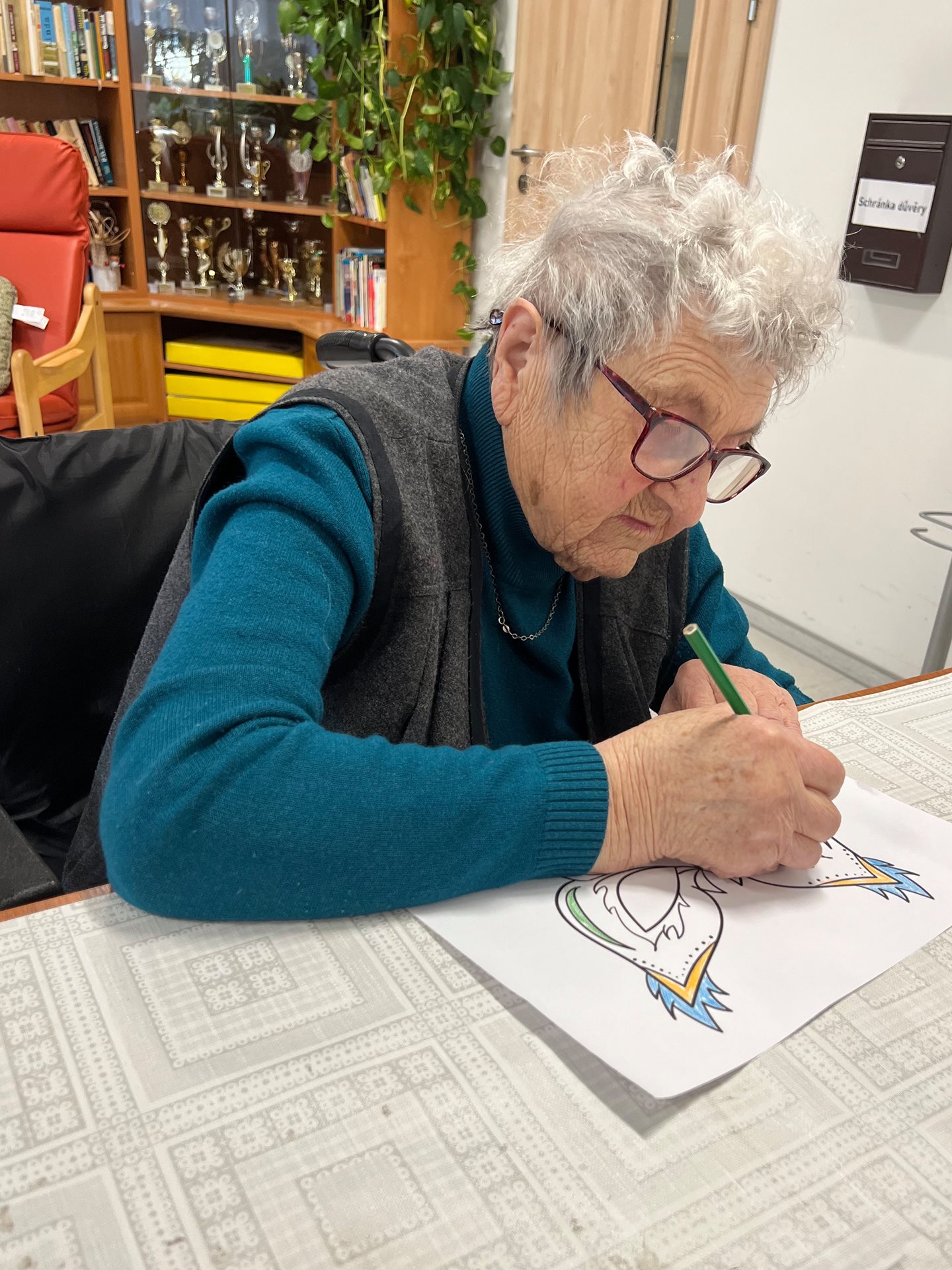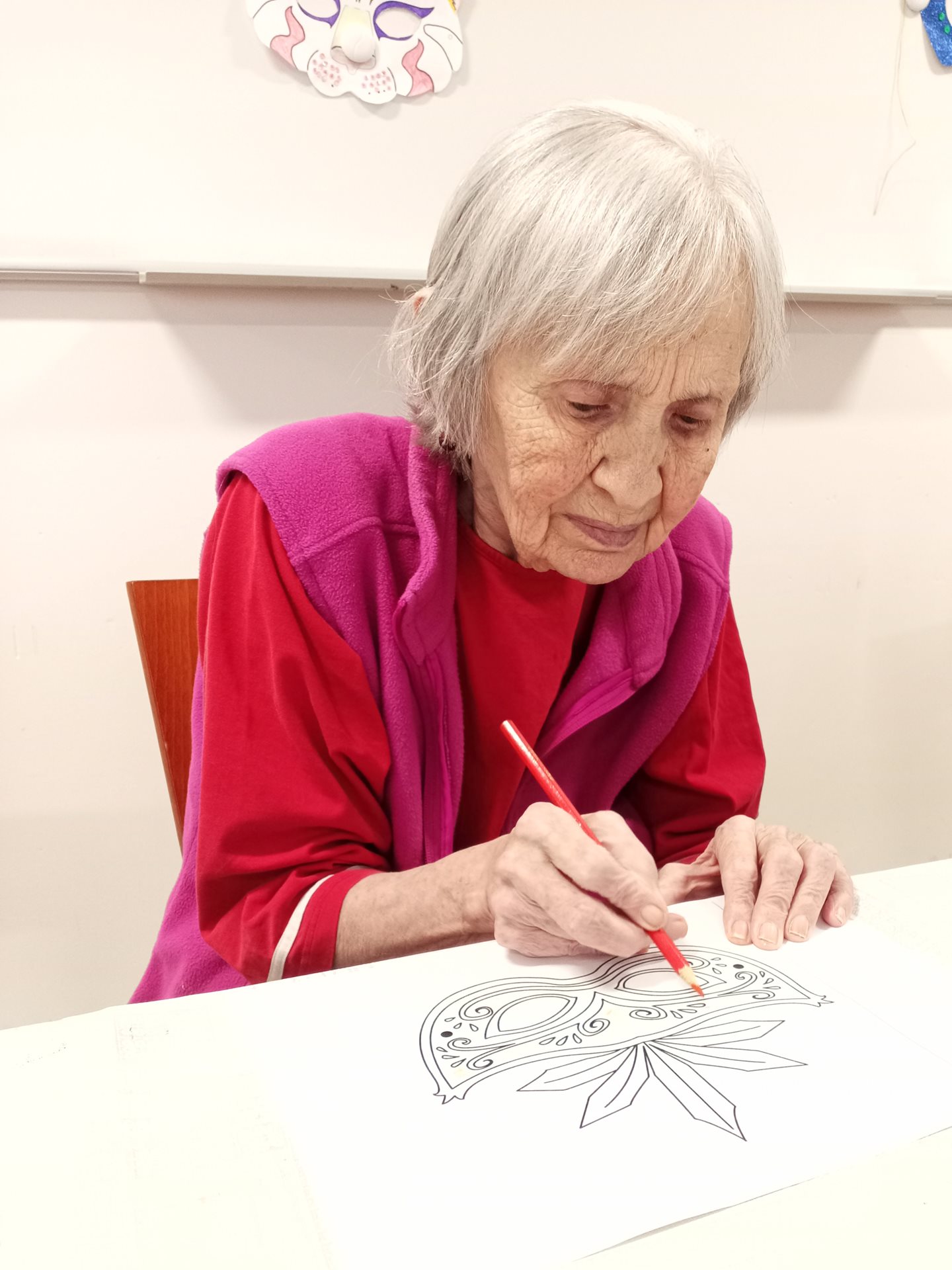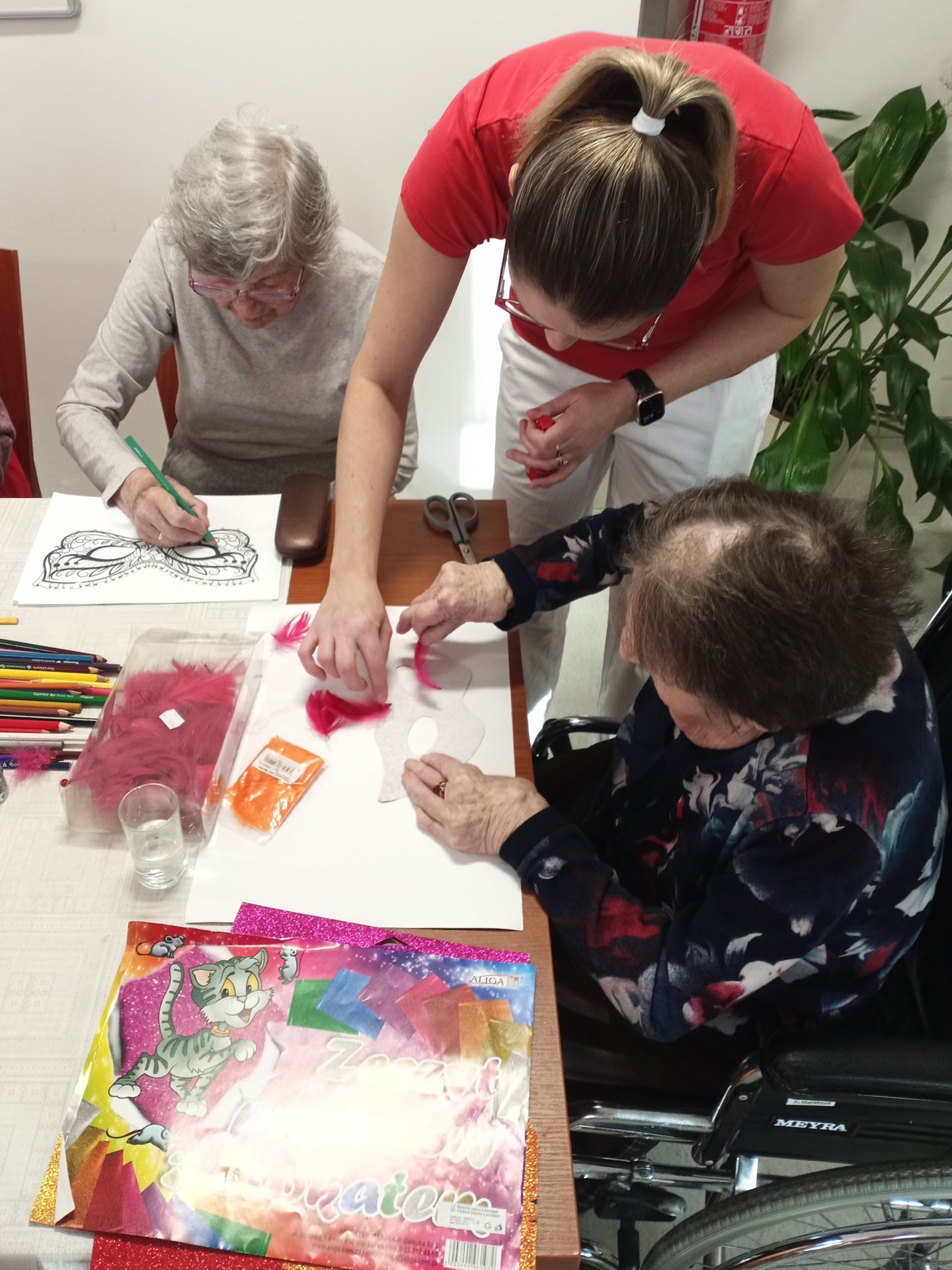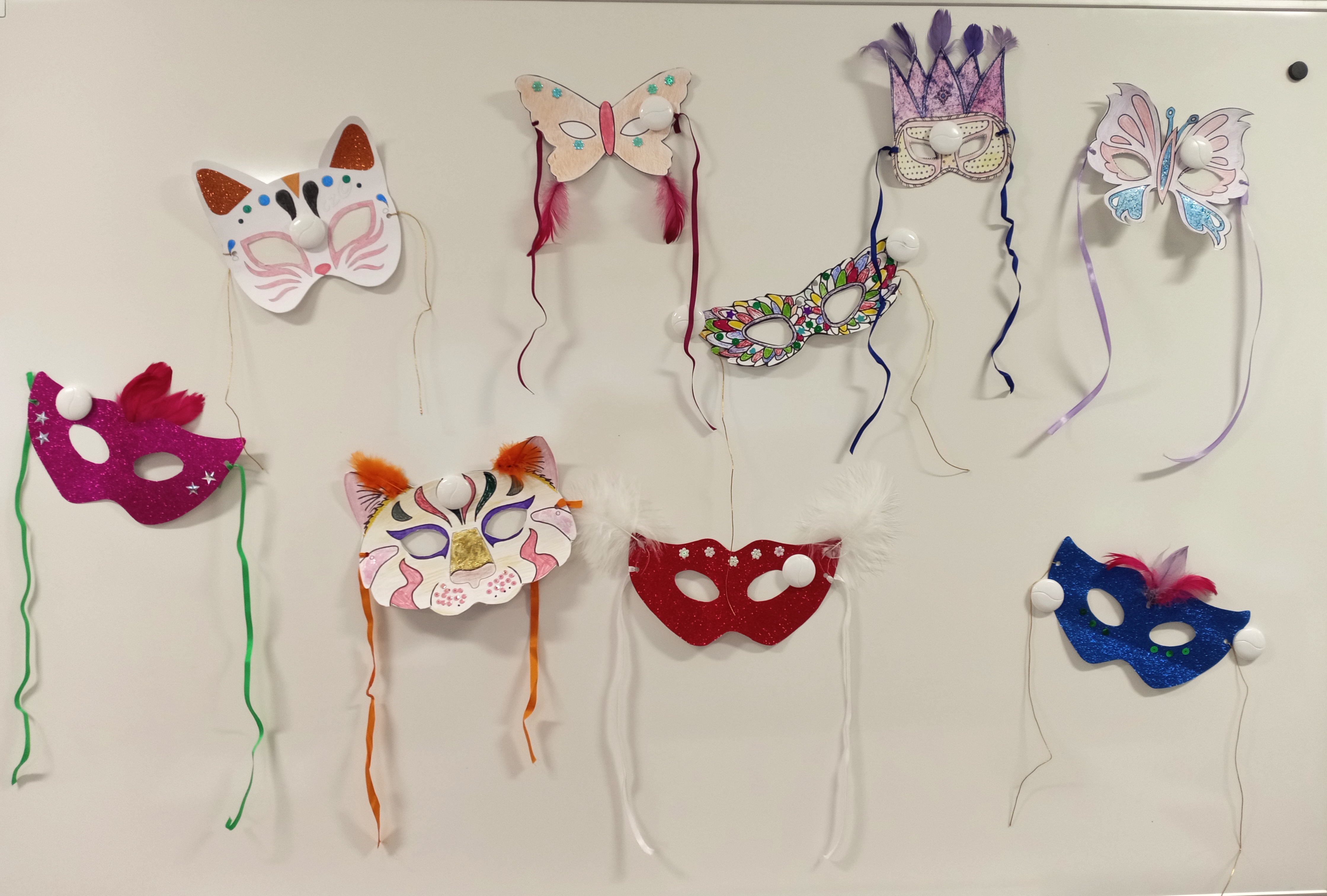 Dnes jsme s uživateli vyráběli masky na Masopust. Vybarvovalo se pastelkami a třpytivým lepidlem. Uživatelé také přidávali na masky různé doplňky jako peříčka, třpytky, malé doplňky či stuhy.