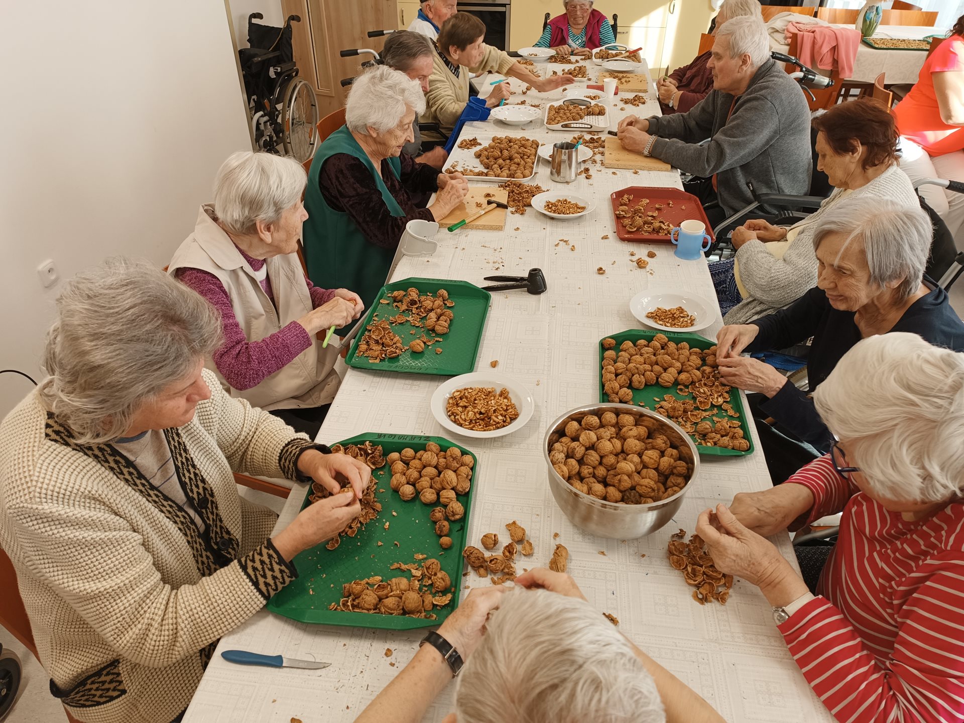 Volný čas jsme s našimi seniory využili k dnes již tradičnímu louskání ořechu. Vyloupané ořechy naši senioři využijí převážně v čase před Vánoci, kdy si budou moci vlastnoručně upéct nějaké cukroví.
