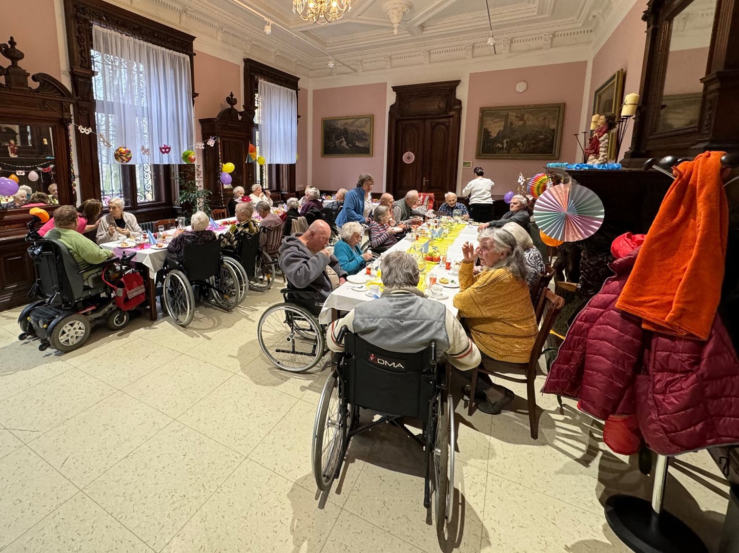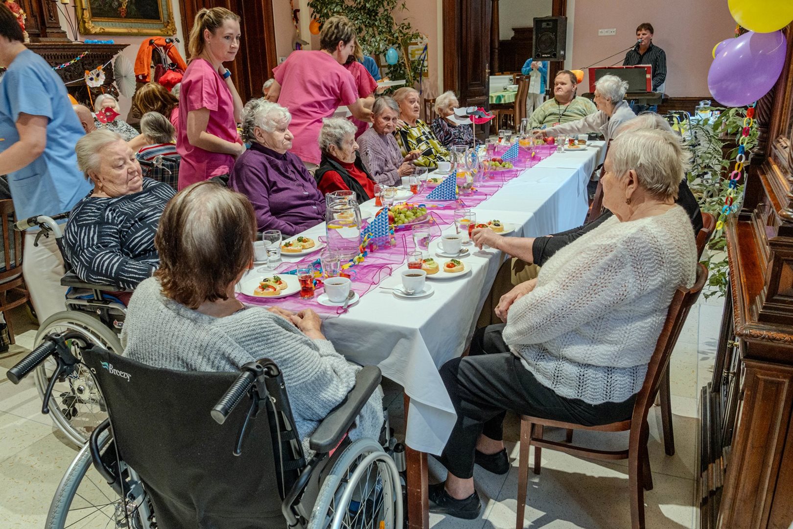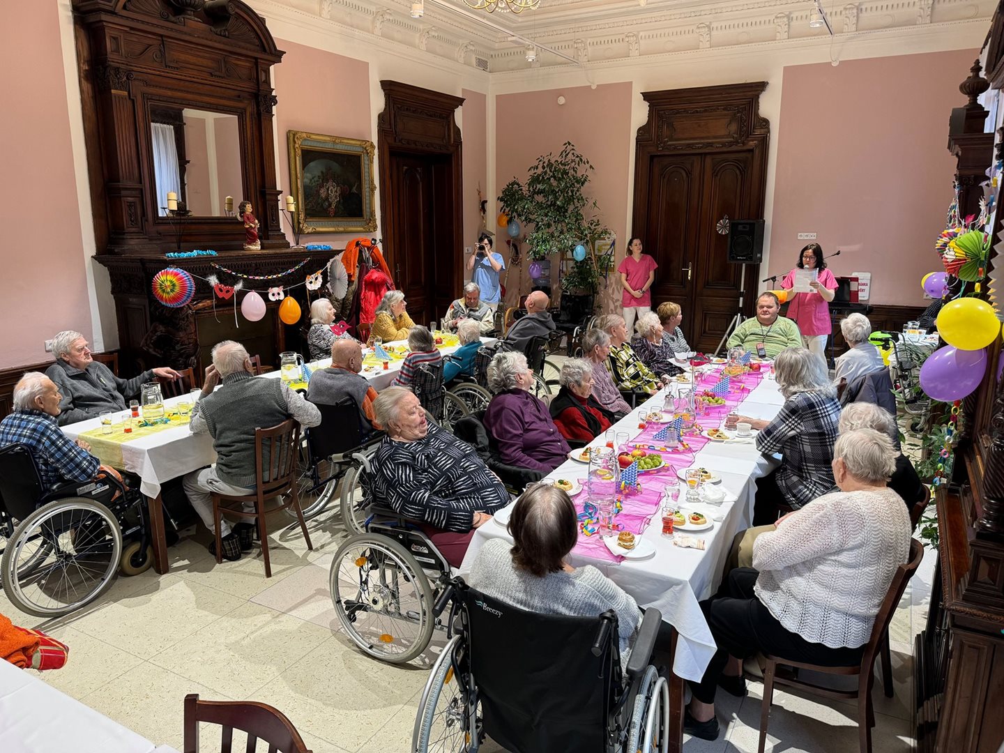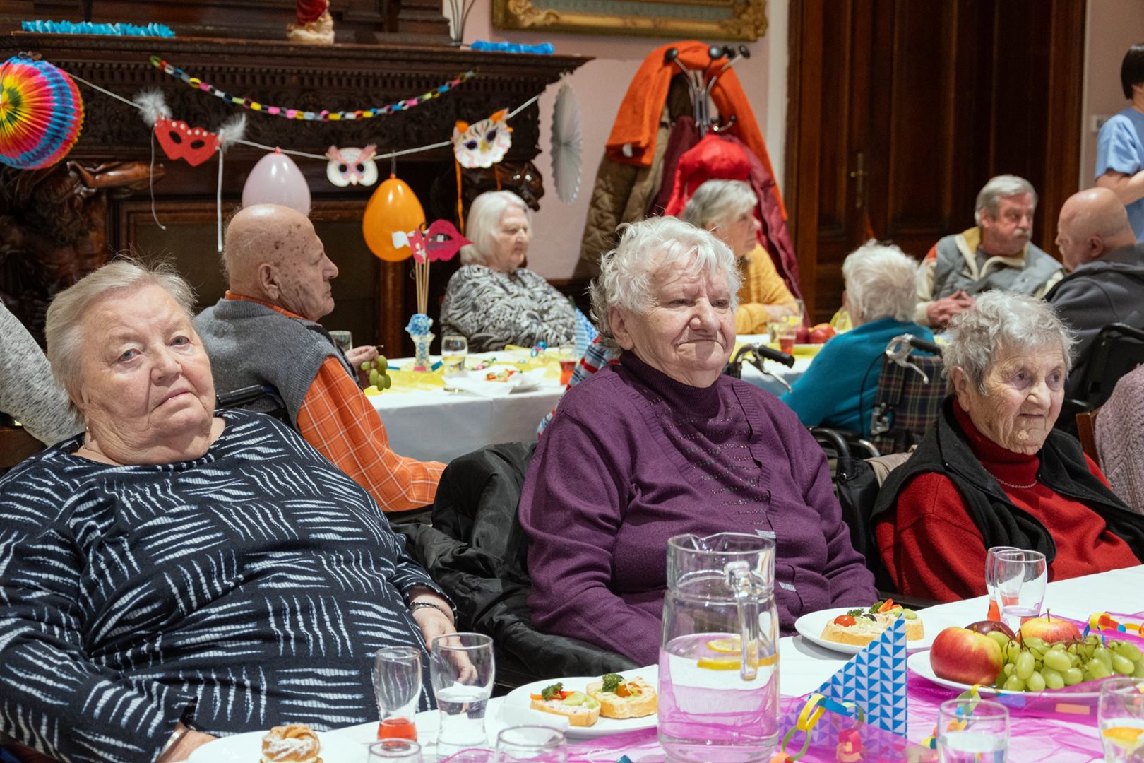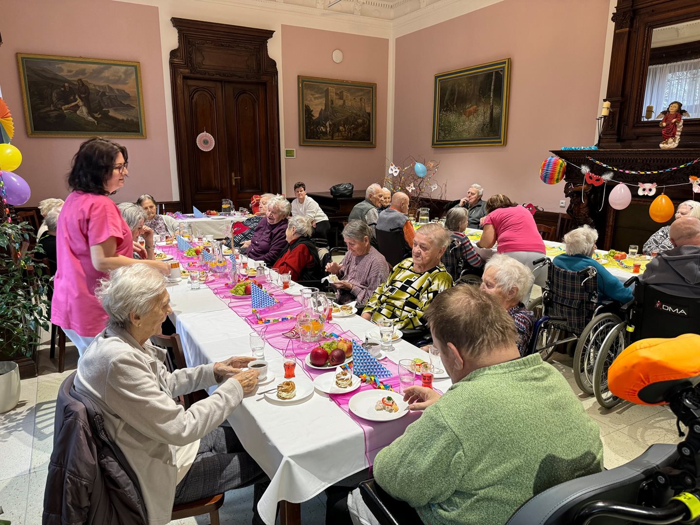 Na odpoledne jsme pro uživatele připravili masopustní zábavu s občerstvením. Nezapomněli jsme ani na výzdobu v maškarním stylu, nechyběly balónky, ručně vyráběné škrabošky, papírové řetázky, fáborky a vše ve veselých barvách. Hudebně akci doprovázel p. Volek. Pro zpestření proběhla i soutěž o nejrychlejší namotání provázku s cukrovinkou na dřívko. Atmosféru doladili všichni tanečníci, zpěváci a všichni, kteří se chtěli radovat.