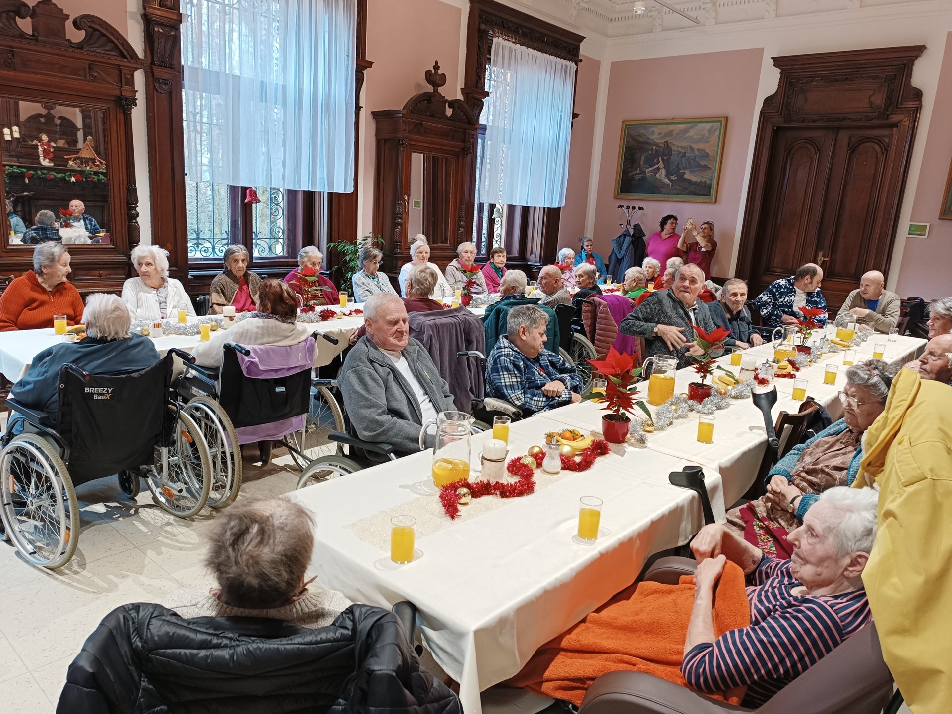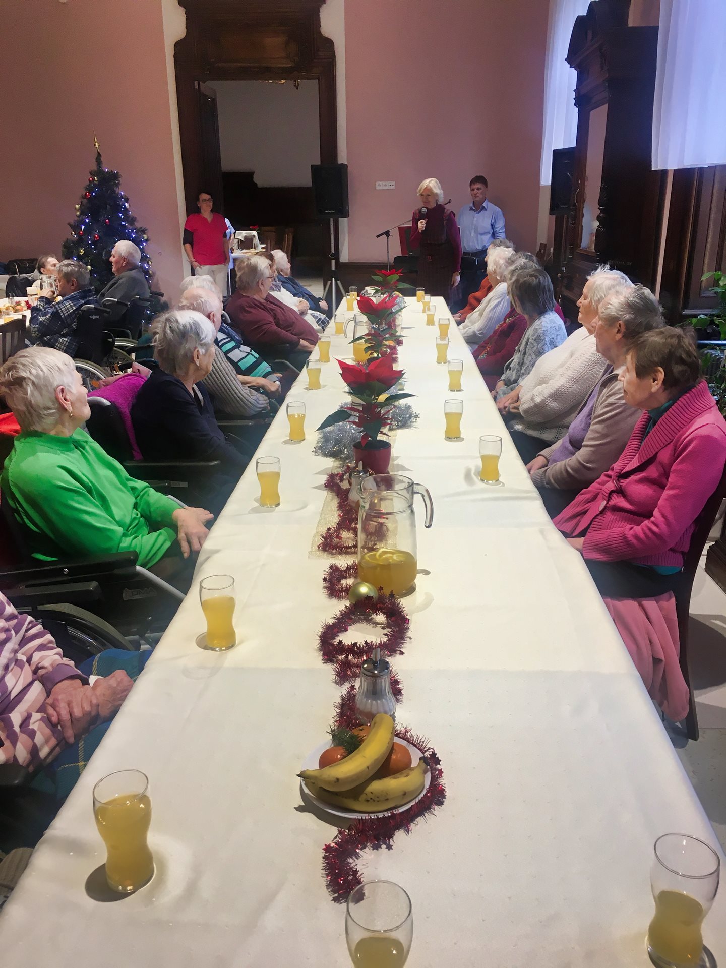 I v tomto roce se u nás v Domově pro uživatele konala Mikulášská zábava. Nechybělo milé, úvodní slovo od paní ředitelky, krásně prostřený stůl s pohoštěním a hudba v podání pana Volka. Atmosféra byla kouzelná. Melodie známé i neznámé nás naladily na zpěv i tanec.
