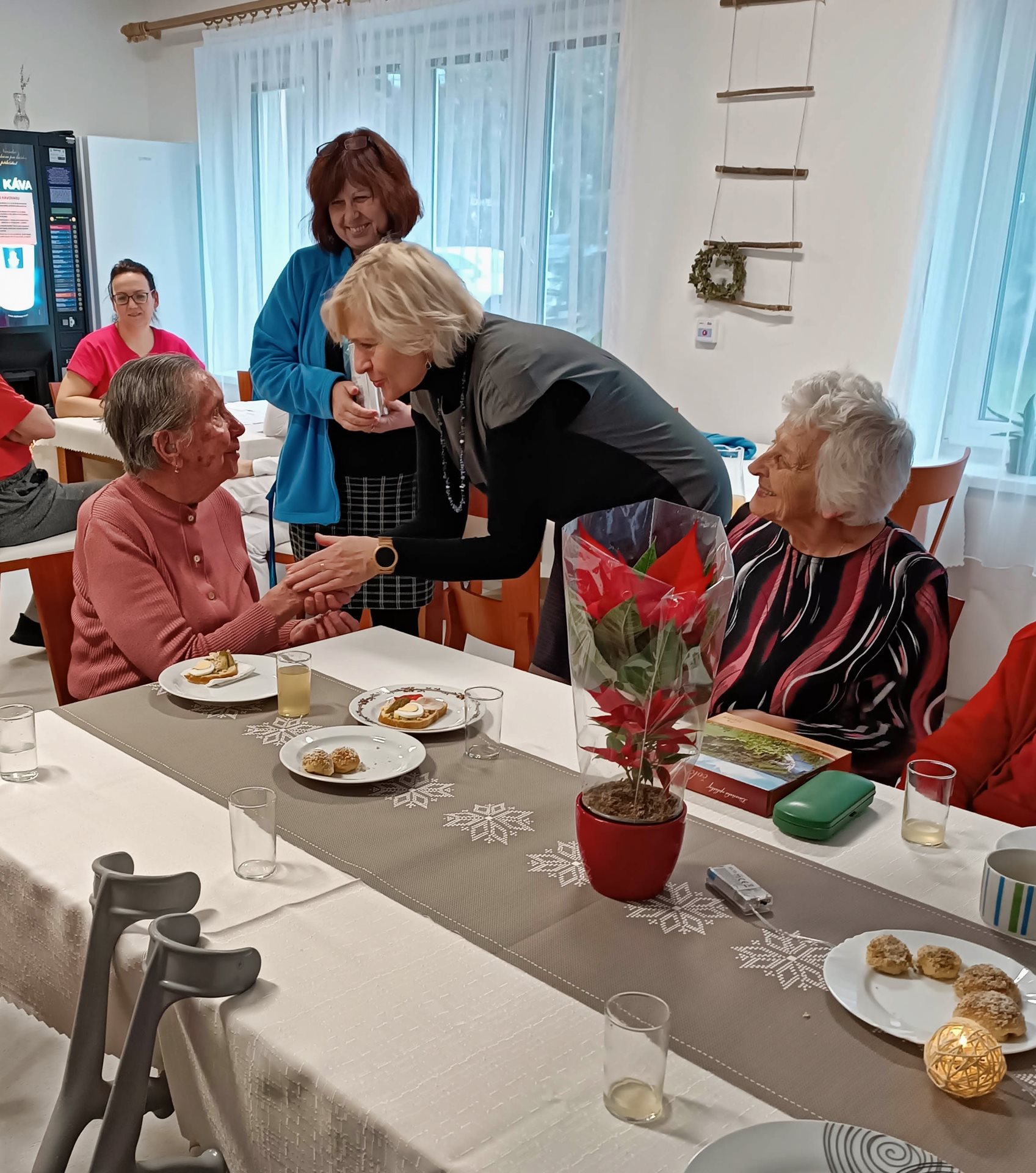 Dnes 28.11. v našem Domově oslavila 94. narozeniny paní Vlastimila. Vitální uživatelka si dnešní den užila s velkou parádou. Oslava probíhala v příjemném duchu, kdy nechyběl slavnostně prostřený stůl a radostná atmosféra. K výjimečnému dni přišly pogratulovat i ostatní uživatelky domova a přítomna byla také i paní ředitelka.