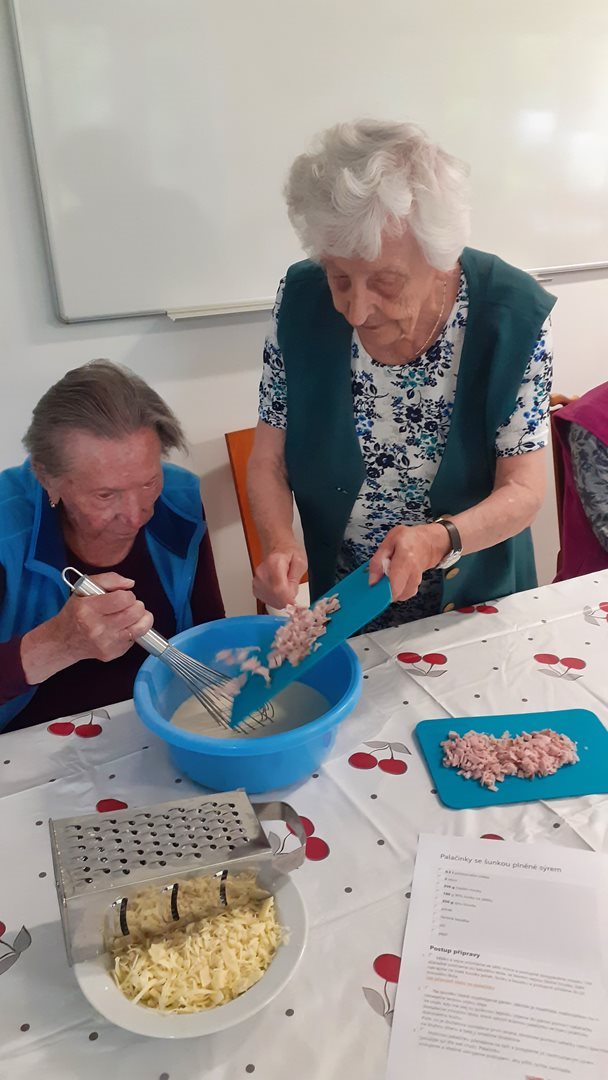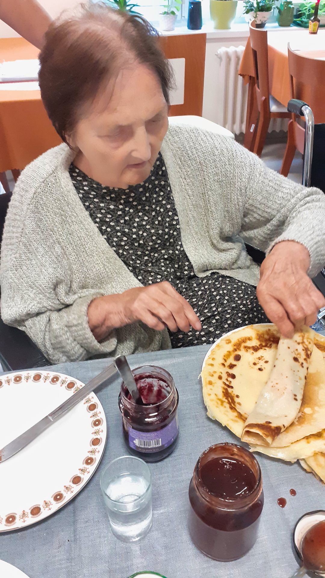 Dopoledne jsme si s uživateli připravili oblíbené jídlo-palačinky. Uživatelky umíchaly těsto a připravili palačinky na dva způsoby. Naslano se šunkou, sýrem a jarní cibulkou a nasladko, plněné borůvkovou a rybízovo-malinovou marmeládou. Obě varianty se povedly, ale u uživatelů vyhrála jednoznačně sladká varianta.