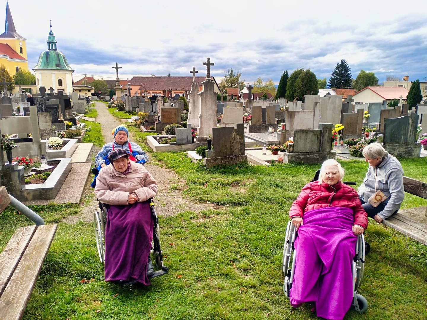 Dnešní dopoledne jsme s uživateli vytvořili společně věnce, které jsme odpoledne s uživateli zanesli na hřbitov a věnce jsme položili na hrob Alfreda Skeneho.