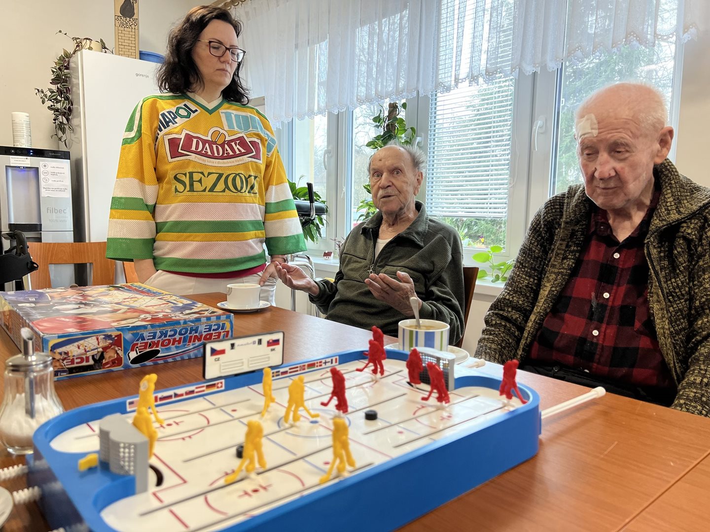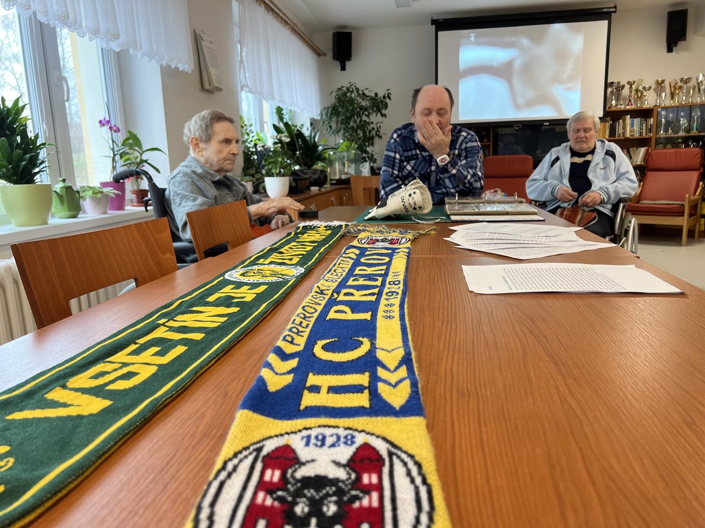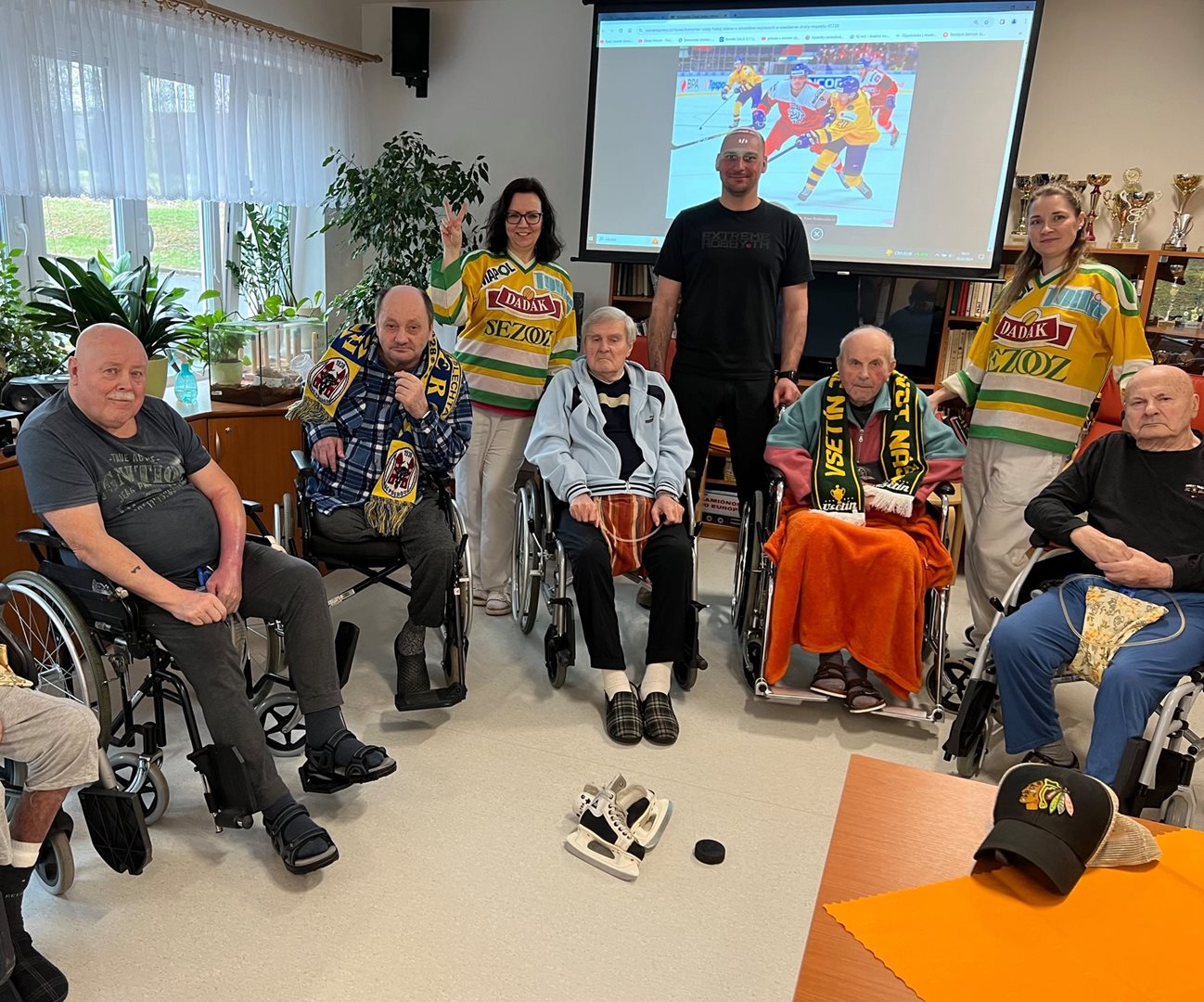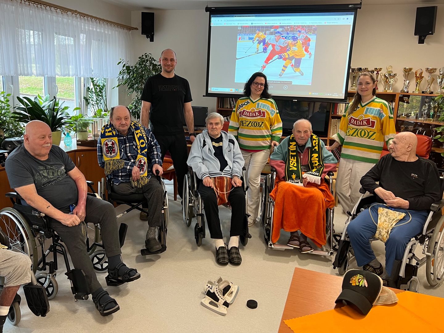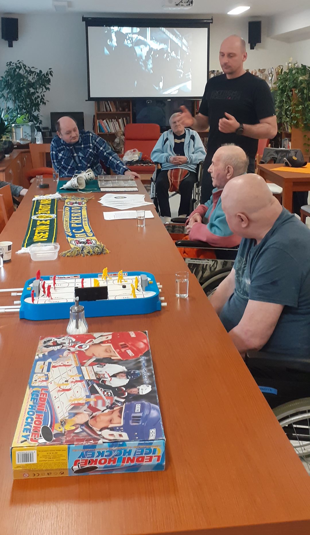 S uživateli jsme dnes měli pánský klub na téma Hokej a zimní sporty. Probírali jsme, kde a kdy vnikl hokej, jaké jsou hokejové kluby. Na ukázku jsme měli hokejový puk, brusle, Vsetínské dresy i hokejové karty s hokejisty celého světa k nahlédnutí. Pány jsme překvapili i podrobným vyprávěním o hokeji s panem Bednářem ml. Ten nám pověděl vše, co je aktuální, i co bylo v dřívějších dobách.