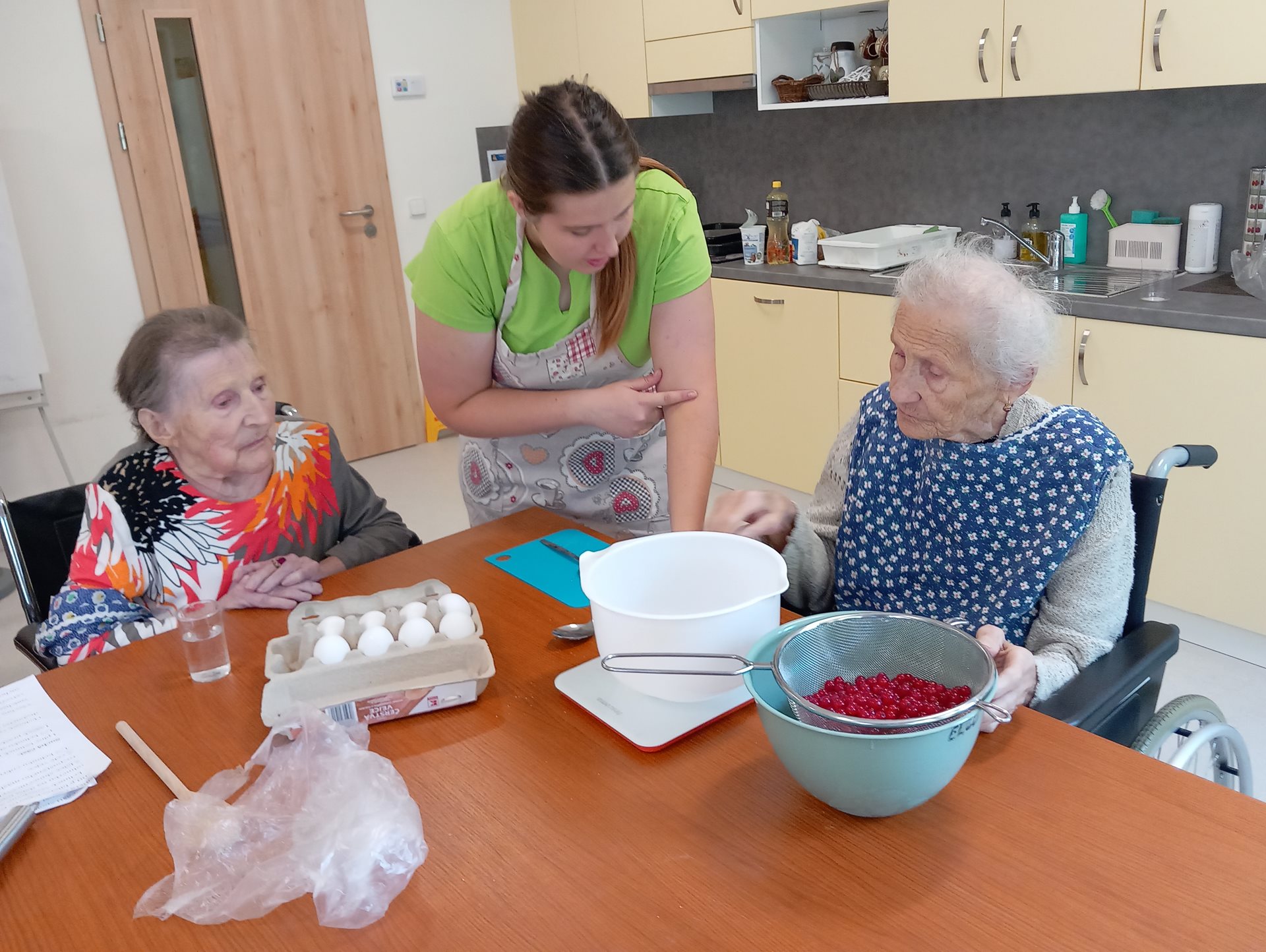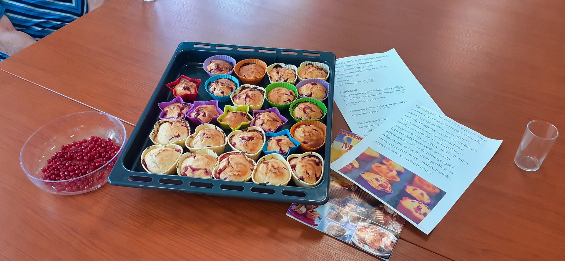 Dopoledne jsme s uživatelkami pekli rybízové muffiny z jogurtového těsta. Každý přiložil ruce k dílu. Během pečení muffinů si uživatelky prohlížely časopisy, knihy s recepty a zavzpomínaly si, co dříve pekly.