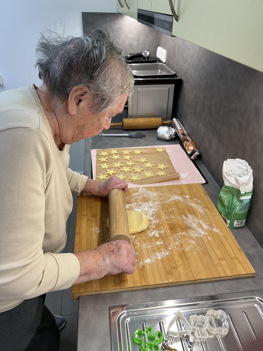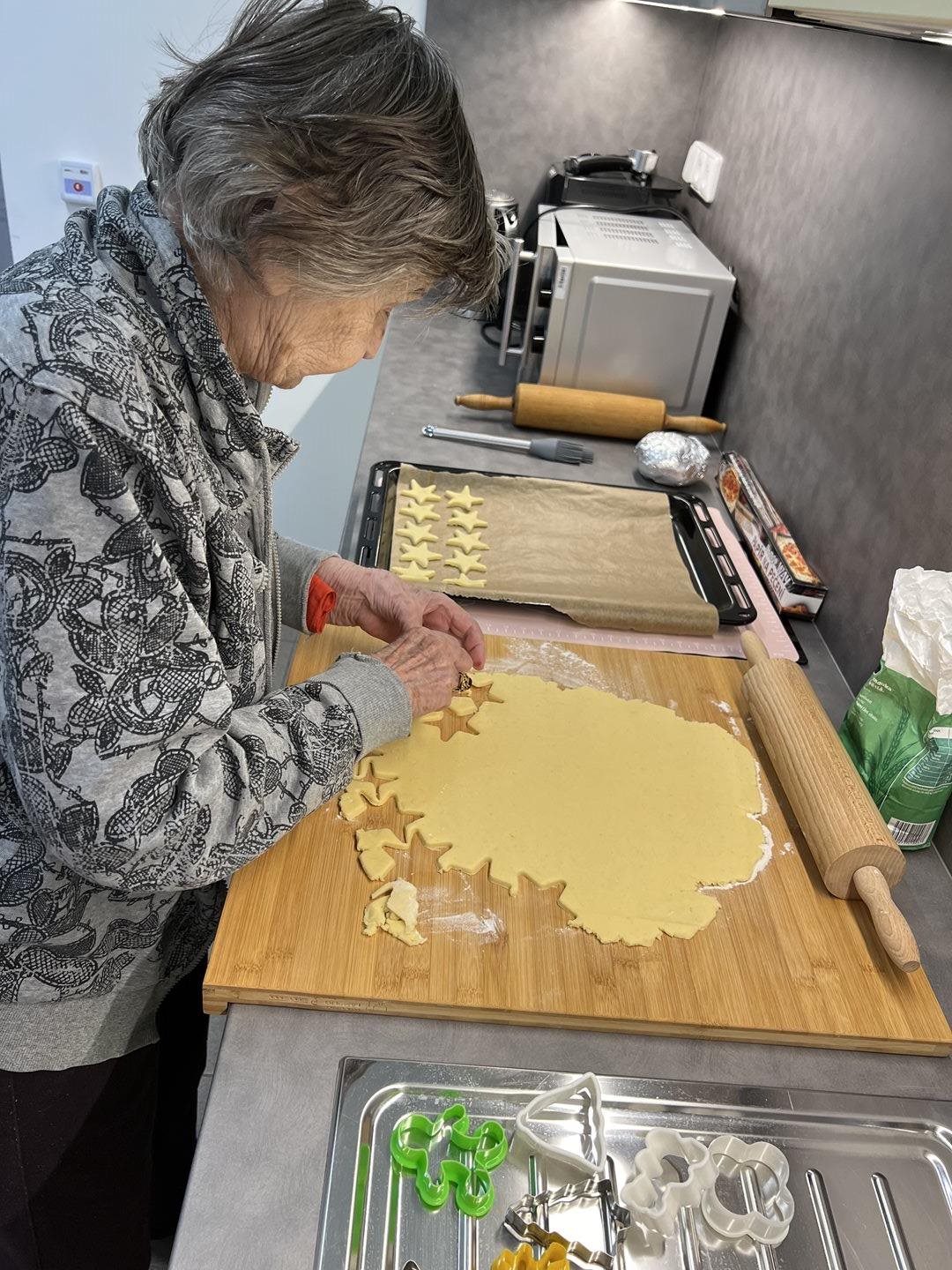 Dnes jsme s uživateli pekli linecké cukroví ve tvaru hvězdiček a čtyřlístků. Po vychladnutí uživatelé slepovali cukroví meruňkovou marmeládou. Cukroví si poté odnesly k odpolední kávě.