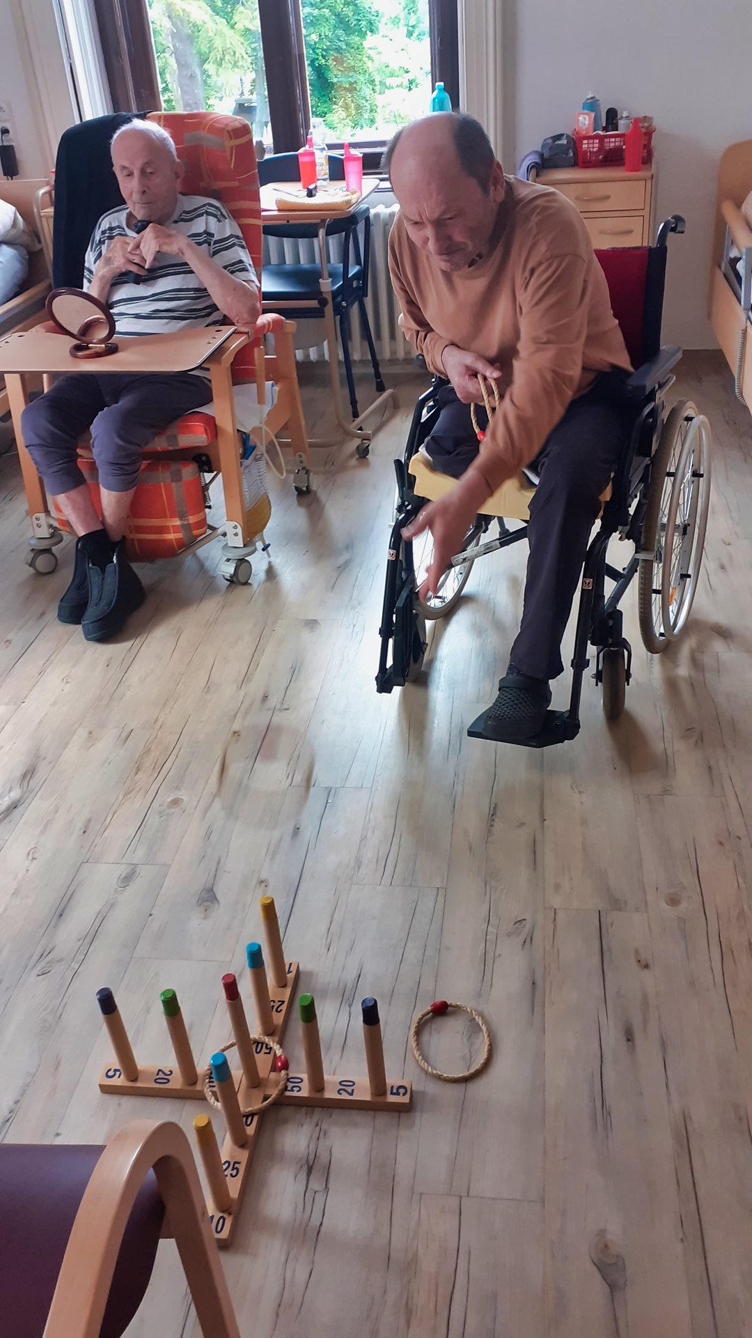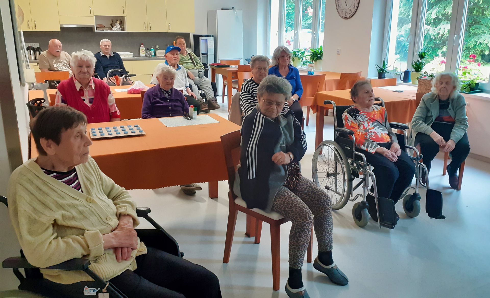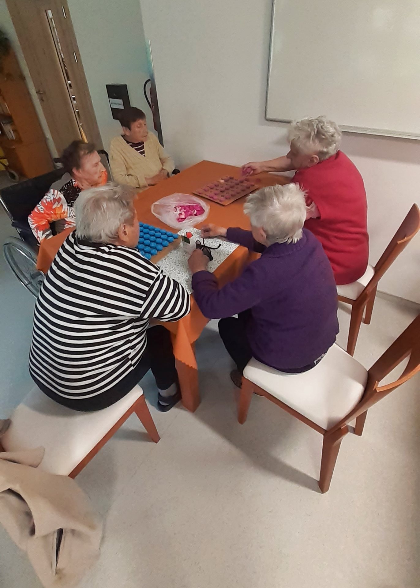 Dnešní cvičení jsme obohatili i trénováním na blížící se sportovní olympiádu. Na začátku se všichni krásně protáhli od hlavy až k patě dle různých cvičebních prvků. Na závěr si uživatelé vyzkoušeli disciplíny např. hod kroužky, kočičí pexeso na čas, šroubování vršků apod.