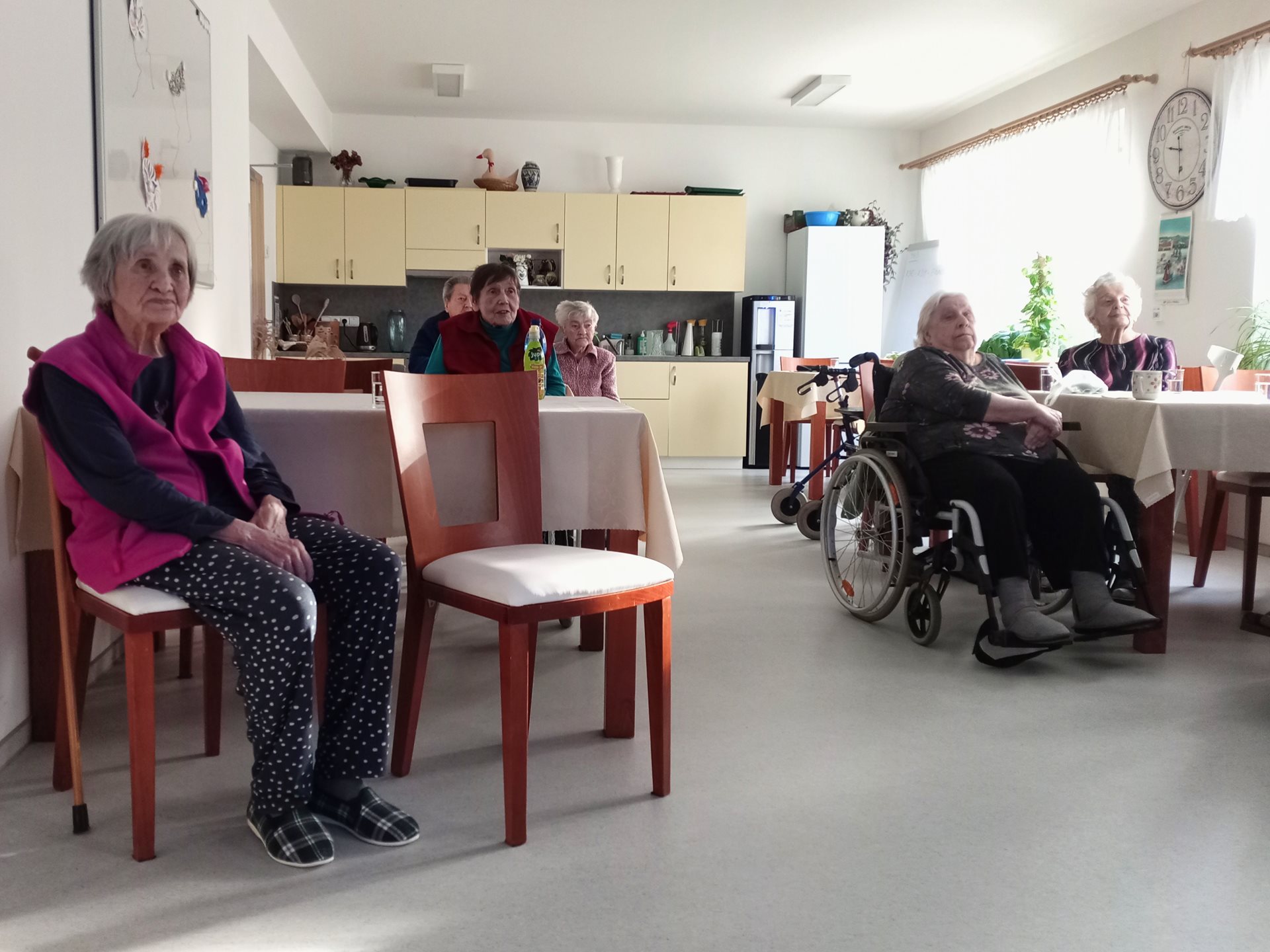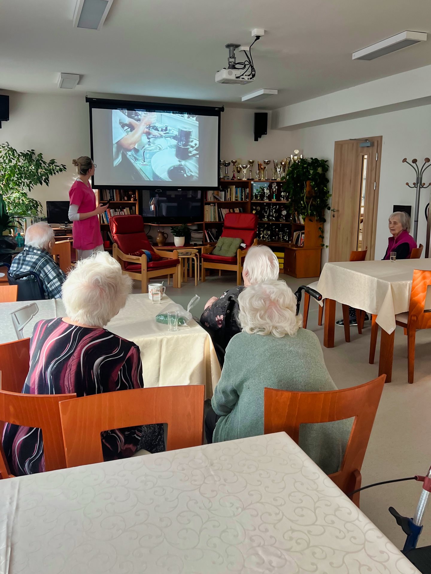 Uživatelům jsme připravili prezentaci a povídání o městě Přerov. Připomněli jsme historii města, ale taky jsme se podívali na jeho současnost. Uživatelé byli zvědaví, jak se Přerov změnil. Ukazovali jsme si fotky, videa a uživatelé zavzpomínali, co všechno v Přerově bylo, kam chodili, kde pracovali.