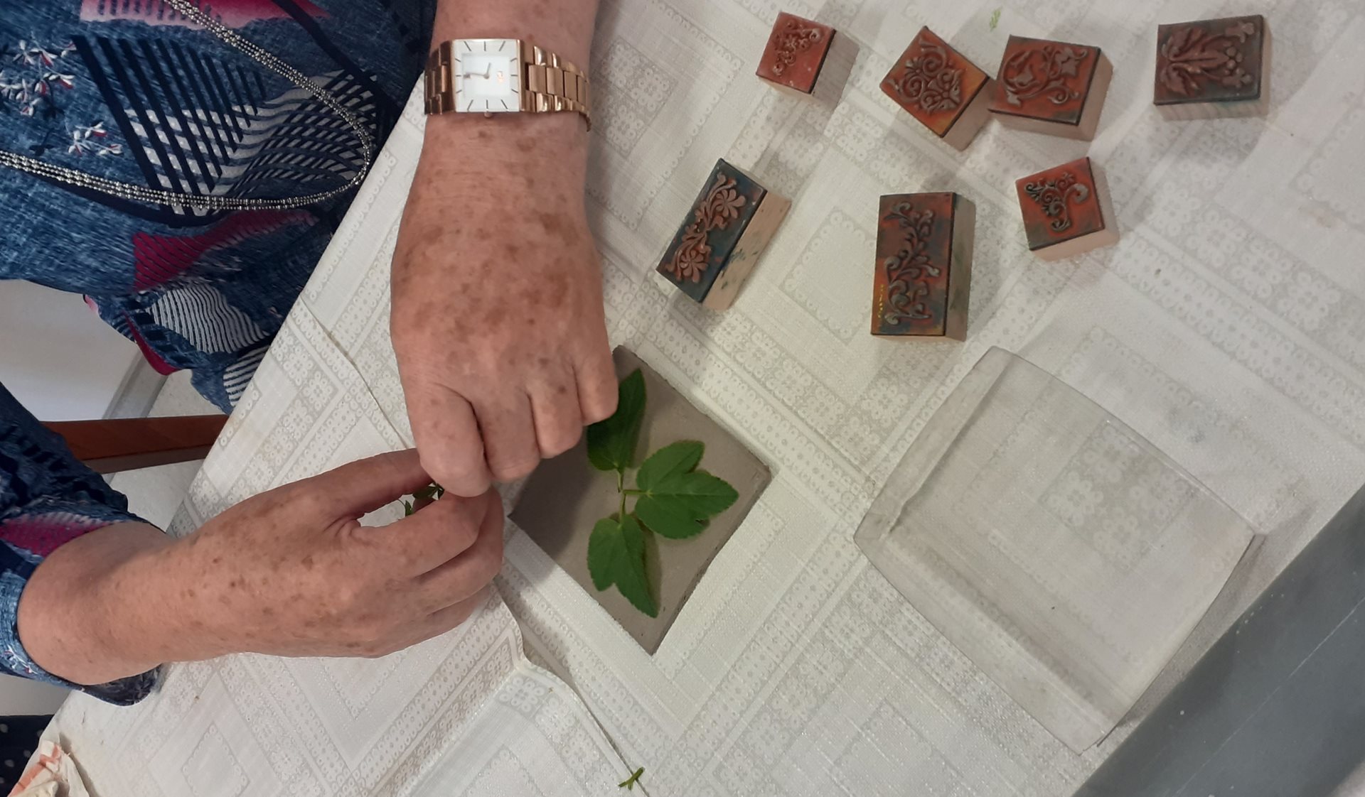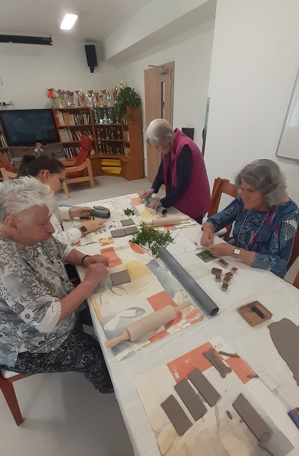 Při dnešní tvorbě jsme využili přírodniny. Vyráběli jsme keramické kachliček se vzorem lučních rostlin. Uživatelky byly velice šikovné a měly radost z obtisků rostlinek do hlíny.