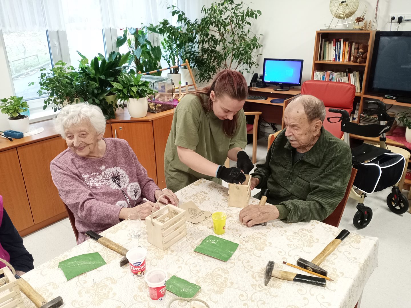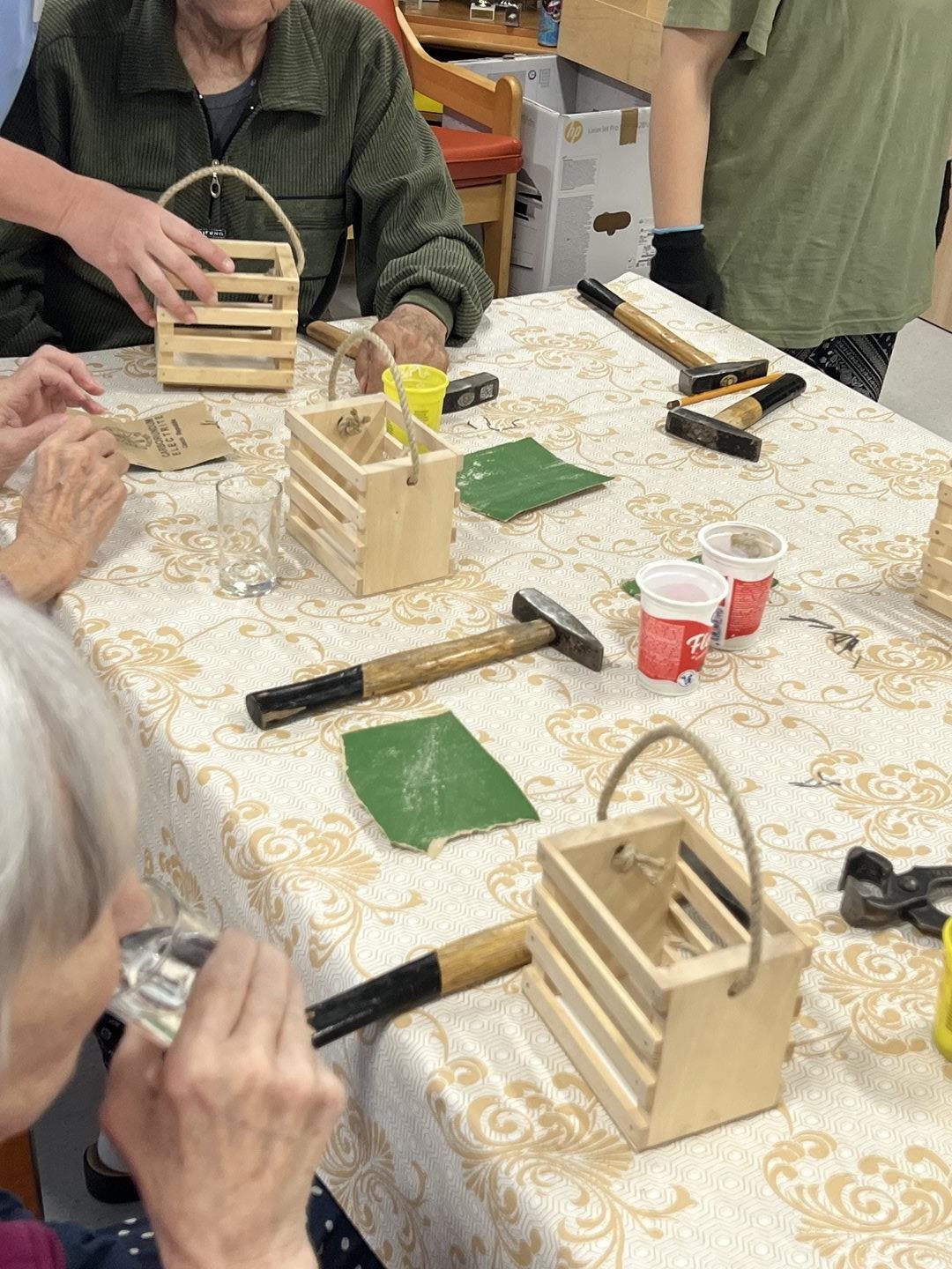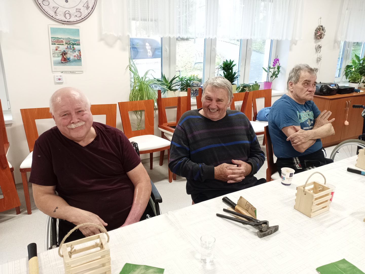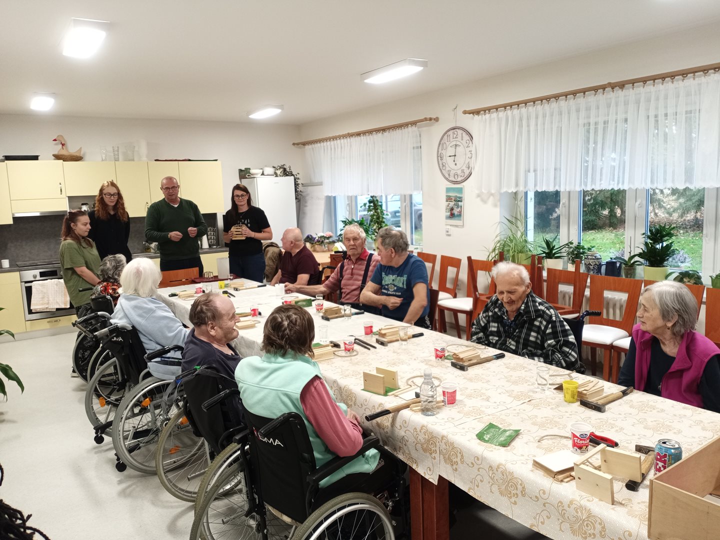 V rámci spolupráce se SŘŠ Tovačov nás navštívili mistři a studentky ze SŘŠ Tovačov a ukázali uživatelům, jak si vyrobit příborník. Uživatelé se ujali práce, vše jim šlo krásně od ruky. Výrobky se všem moc povedli a jako odměnu si je mohli ponechat.