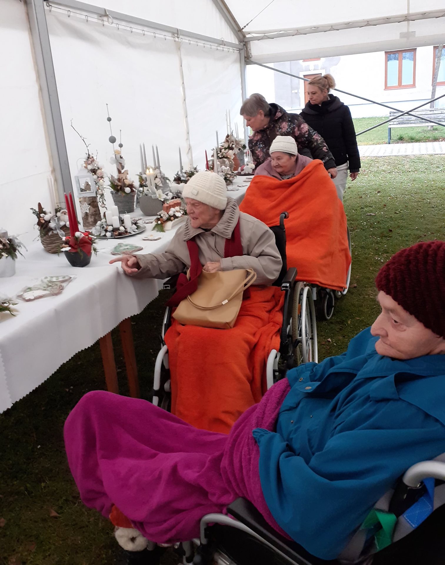 Tato výstava se konala ve venkovních prostorách za KD. S našimi uživatelkami jsme také vydali podívat se a nasát vánoční atmosféru. Této procházky se účastnilo 5 uživatelek v doprovodu PSP a aktivizační pracovnice. Byla to moc pěkná podívaná s možností zakoupit si, co se vám líbí.