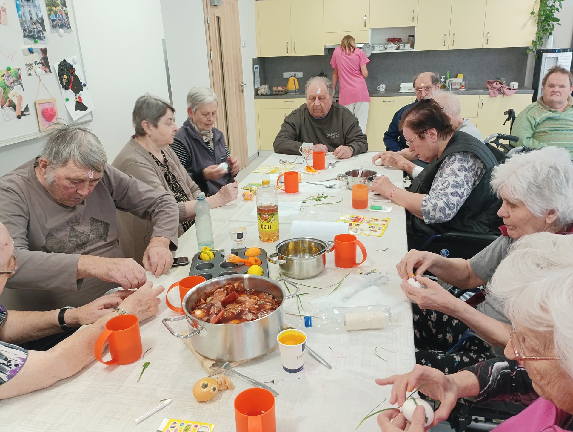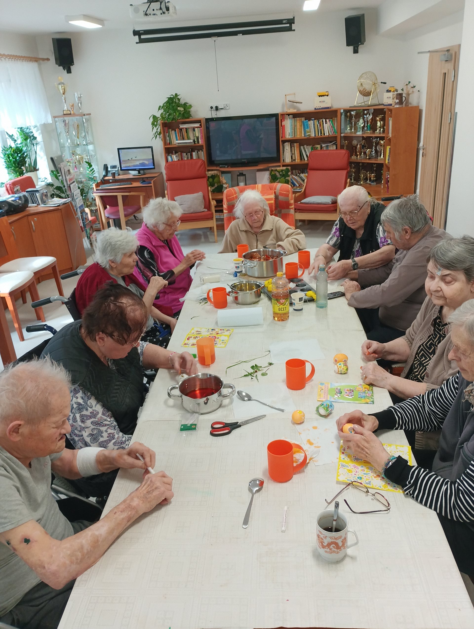 Velikonoce se přiblížily a s nimi i čas milých tradic a příprav. Pustili jsme se do barvení vajíček, která rozzářila náš Domov pestrými barvami, a provoněli jsme prostory pečením velikonočního beránka. Nezapomněli jsme ani na pletení tatarů, které k těmto svátkům neodmyslitelně patří. Atmosféru jara dotvořila velikonoční květinová výzdoba plná svěžích barev a vůní. Přejeme všem klidné a radostné prožití svátečních dnů.