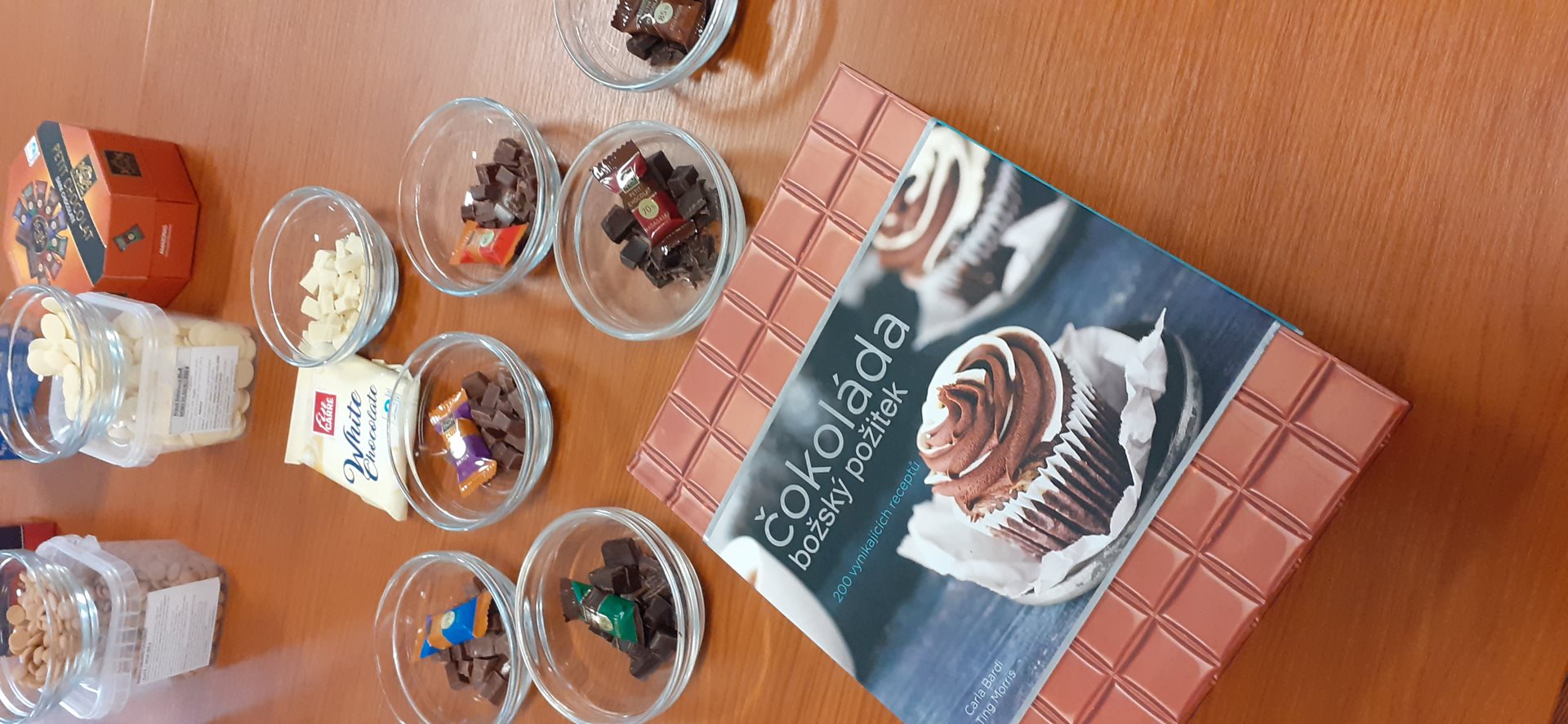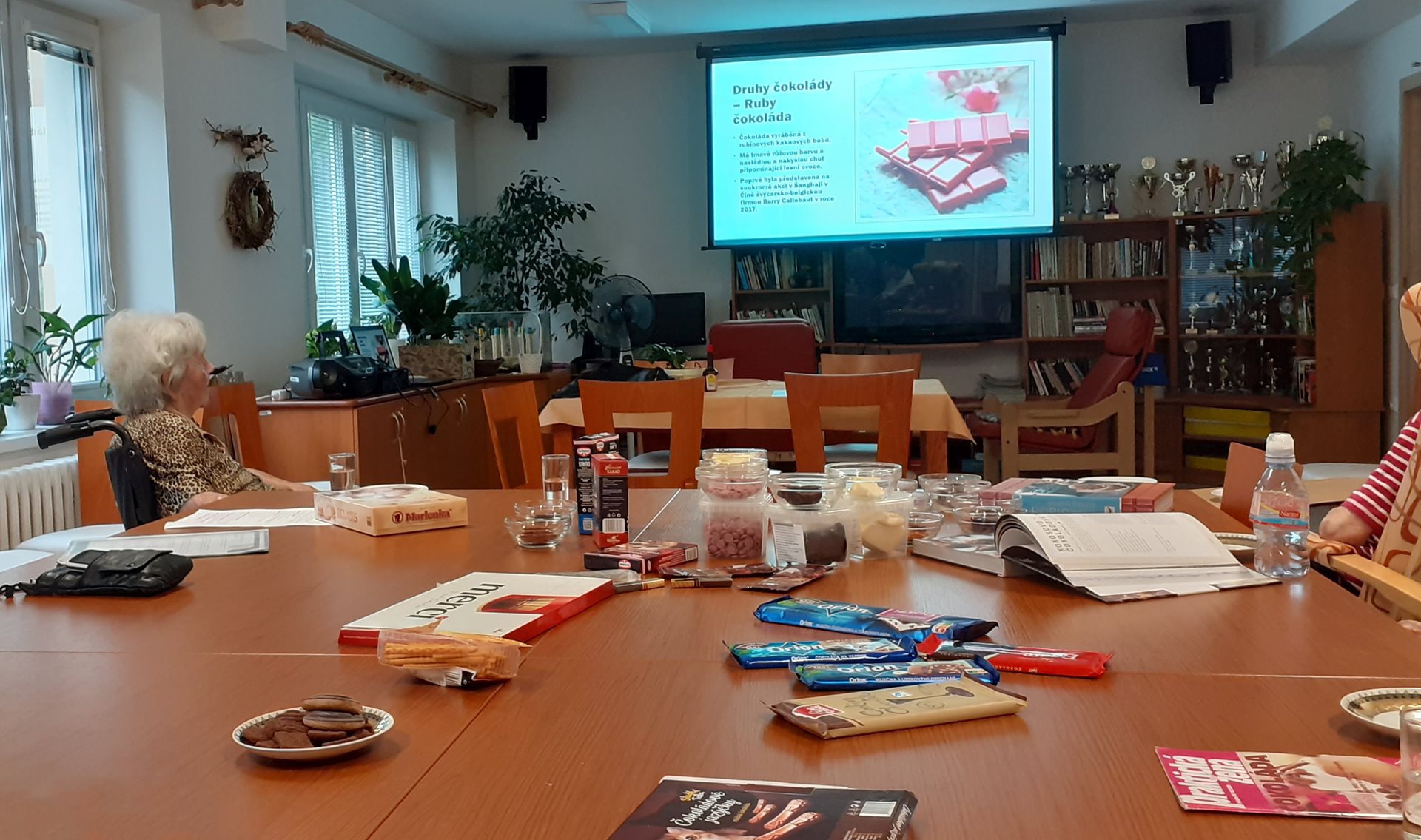 Dnes jsme si s uživateli udělali příjemné odpoledne s čokoládou. Promítli jsme si prezentaci o historii, výrobě a druzích čokolády. Podívali jsme se na video, jak vyrábí Studentskou pečeť v Zoře Olomouc. Proběhla i degustace různých druhů čokolády, několik druhů různě procentní hořké, mléčné a bílé čokolády. Dále jsme ochutnali i méně známé druhy jako rubínovou a zlatou čokoládu. Ochutnávkou kakaového řezu jsme také porovnávali rozdíly mezi holandským a černým kakaem. A na závěr jsme se podívali na úžasné sochy od cukráře Amaury Guichon.