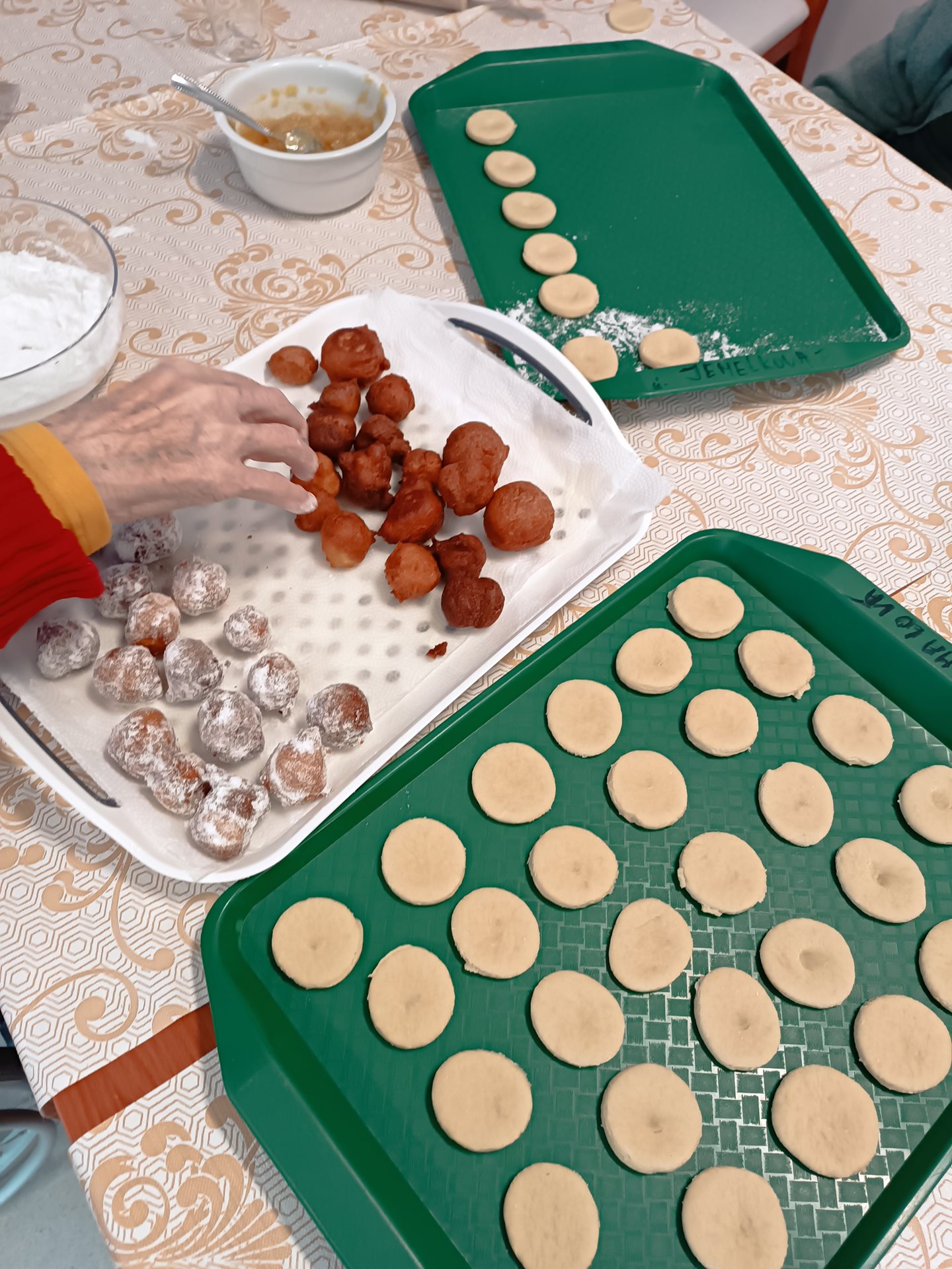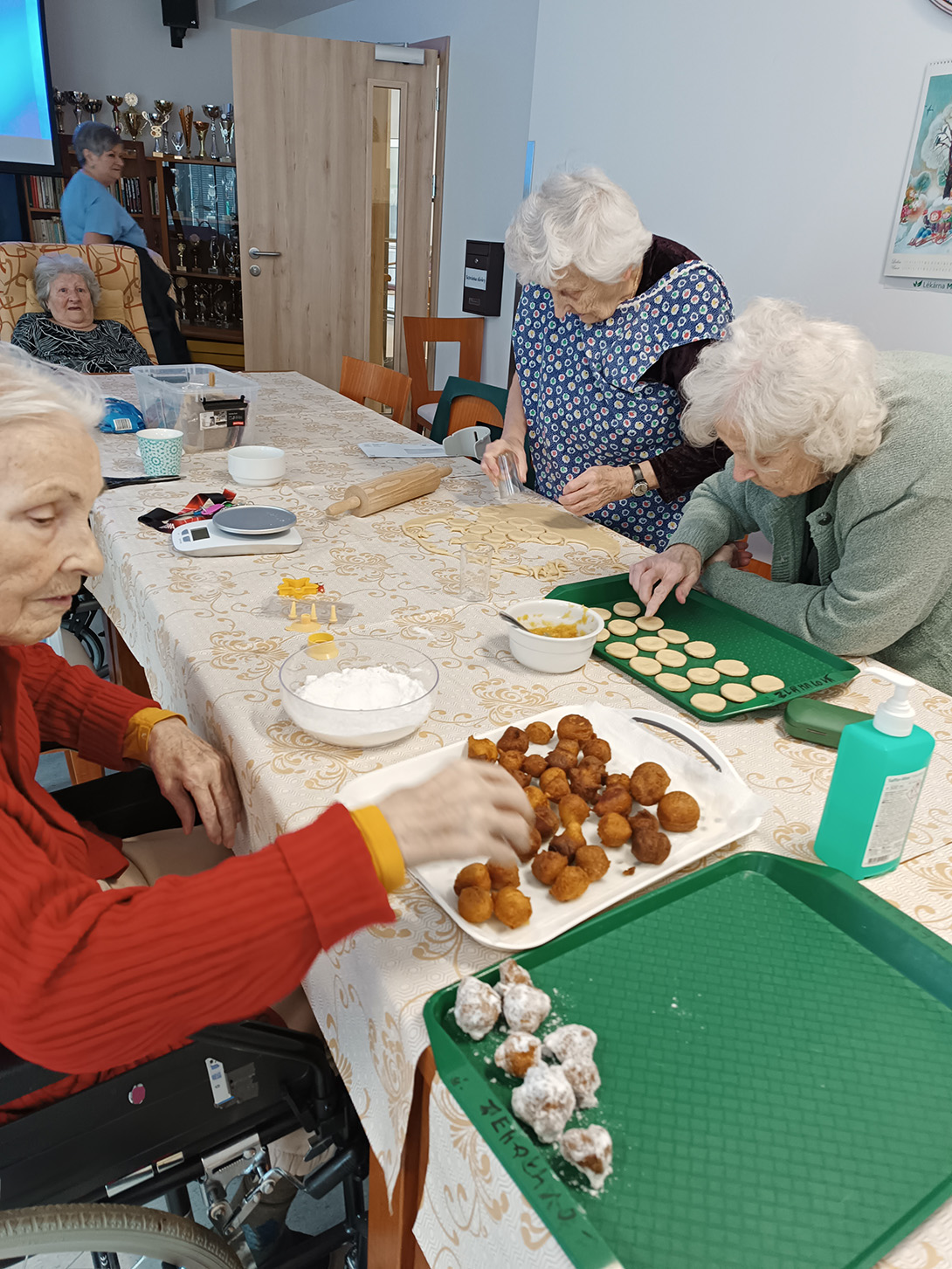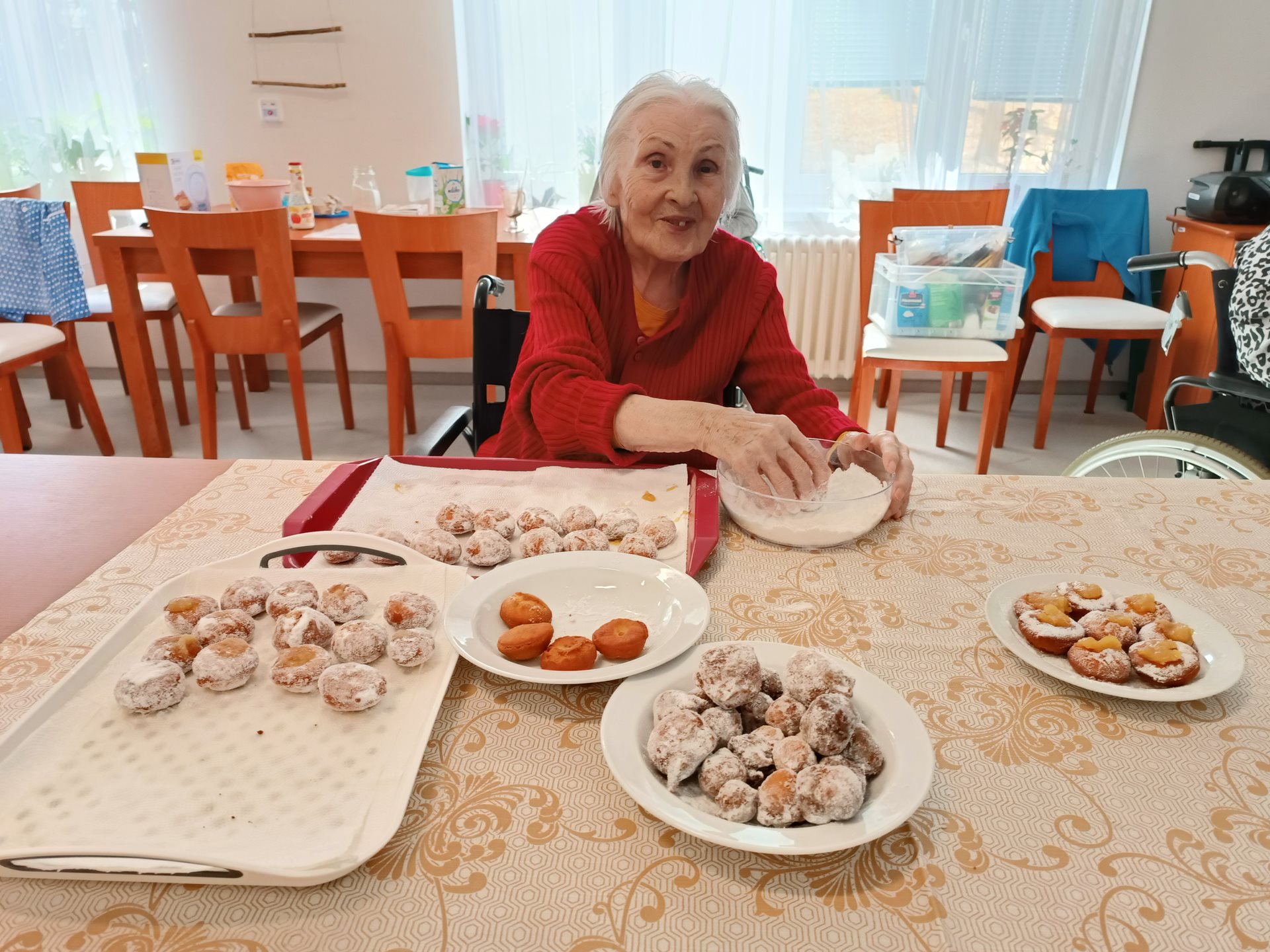 Společně jsme s uživateli připravovali a smažili mini koblížky, které pak uživatelé ochutnávali.