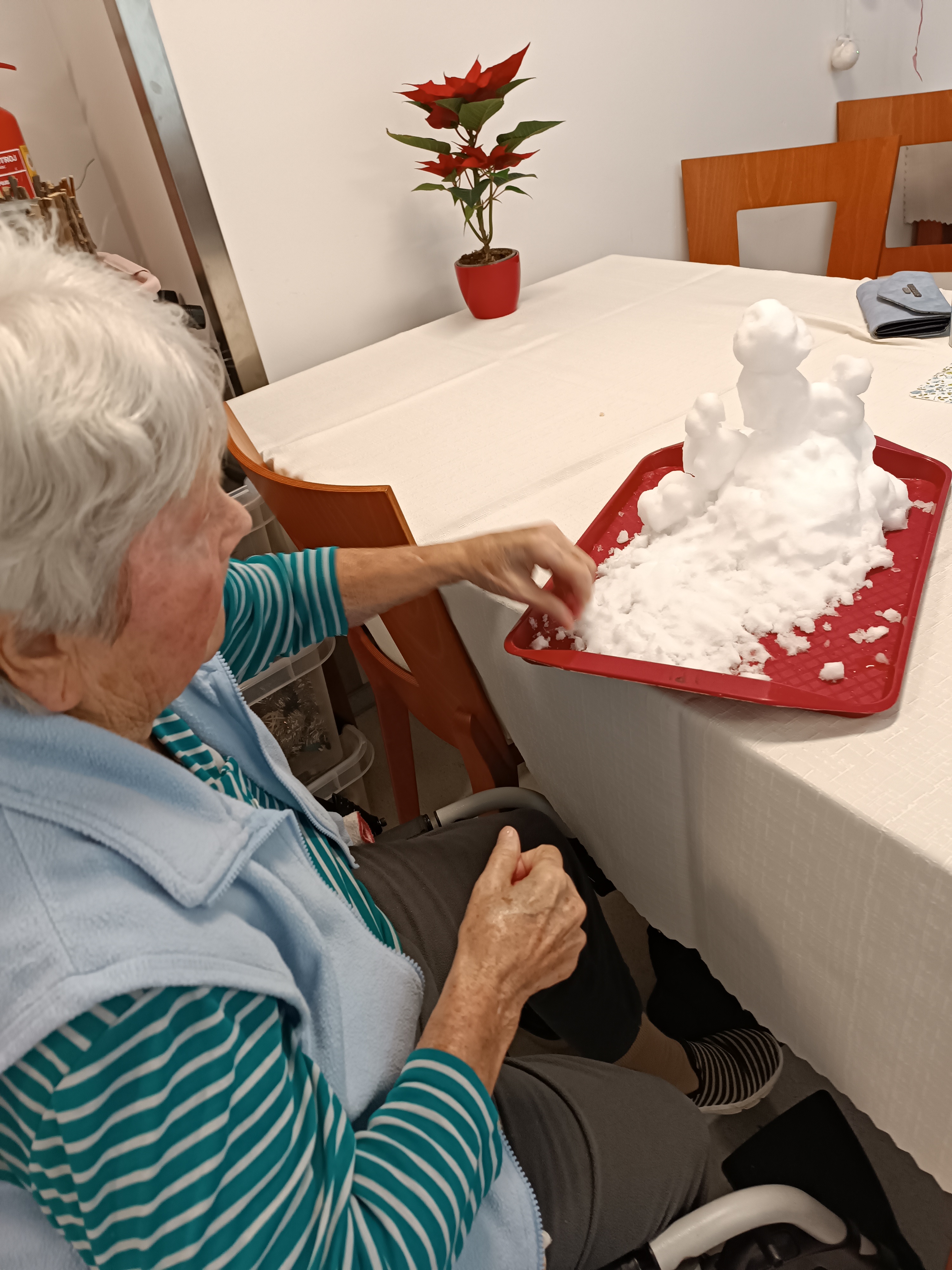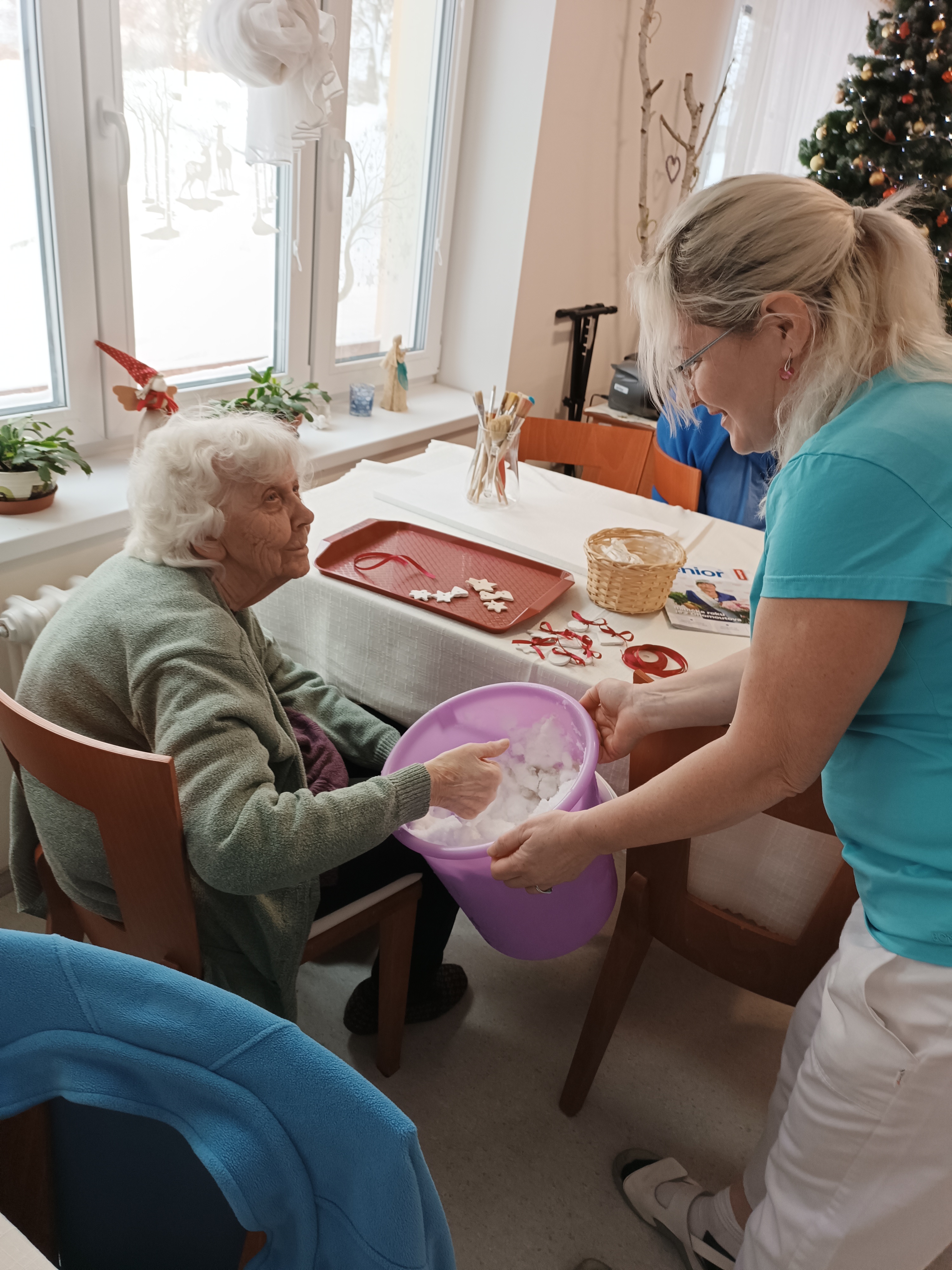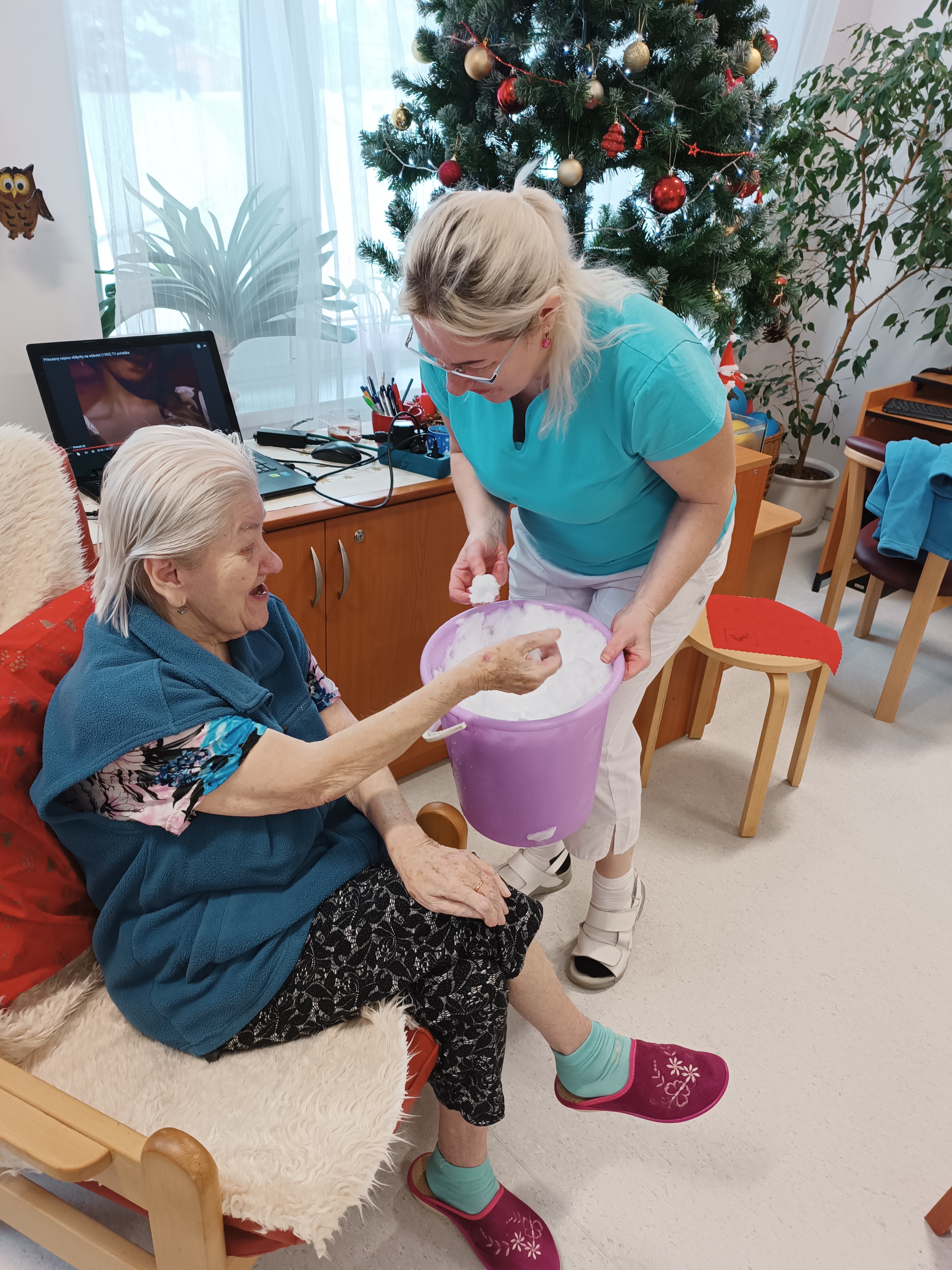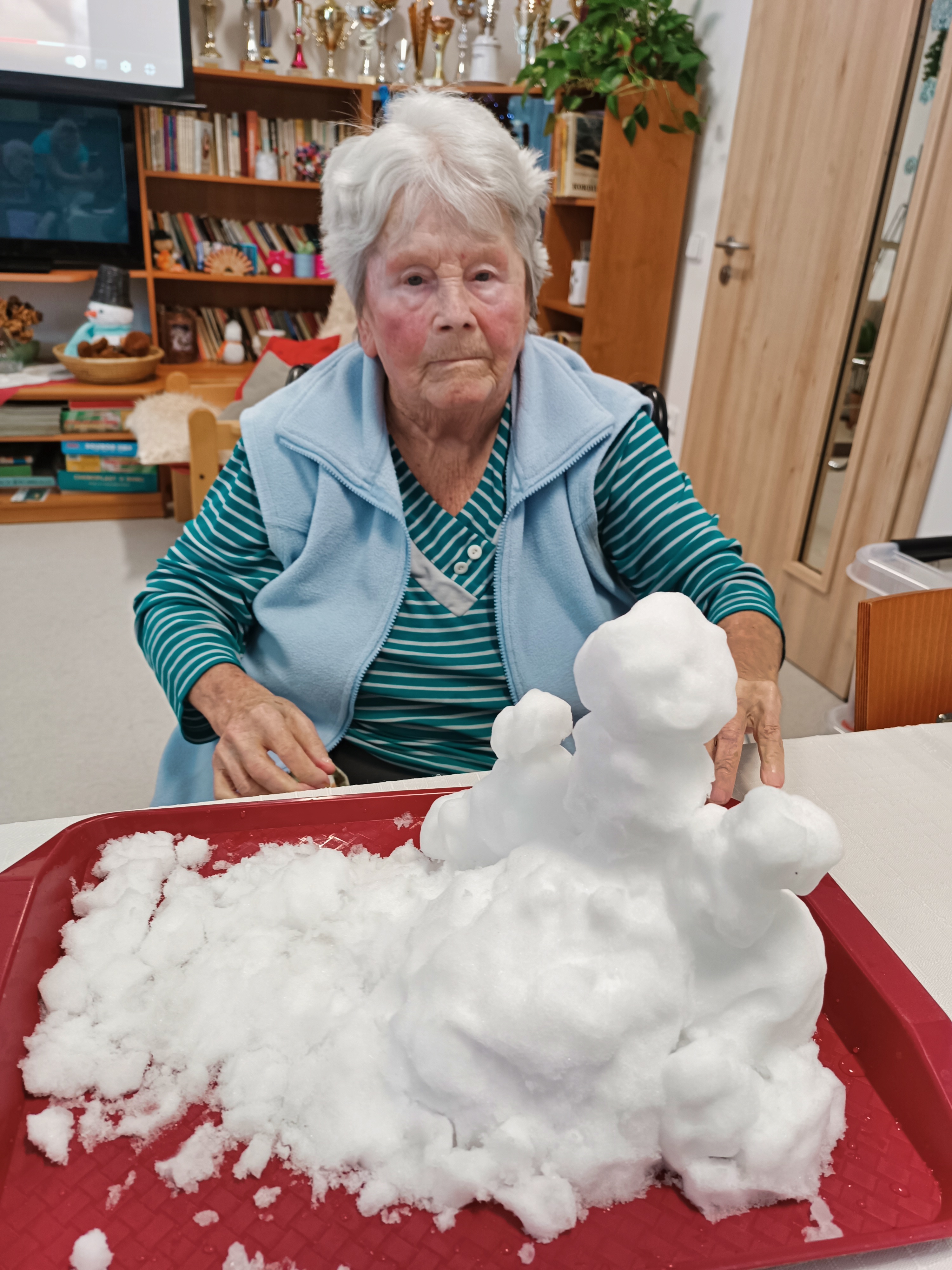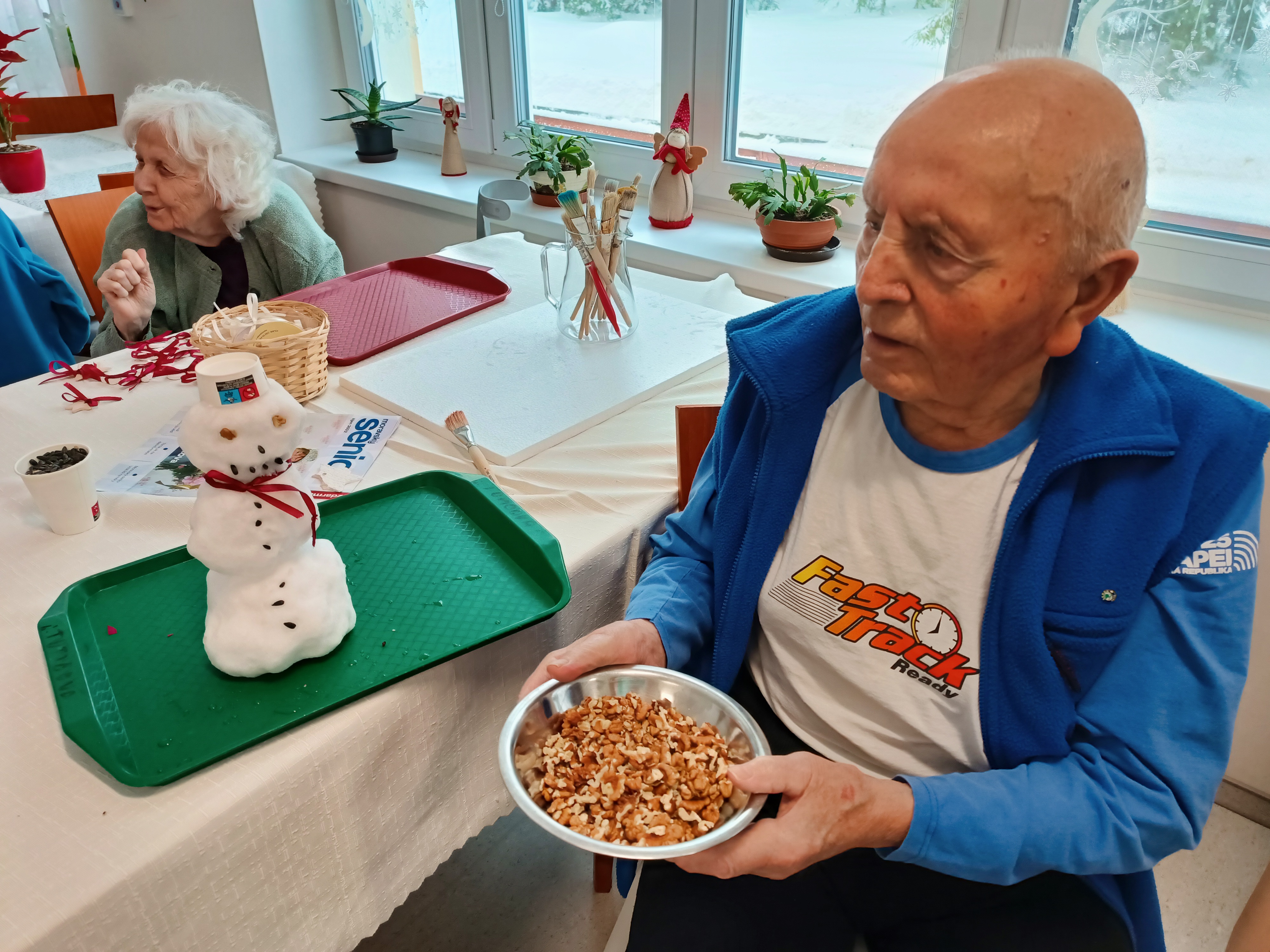 Dnešní zasněžený den si užili i uživatelé, kteří mají zhoršenou mobilitu a v zimním období se do přírody dostanou méně než v měsících ostatních. Napadaný sníh všem udělal velkou radost. Vzpomínalo se na dobu dřívější, kdy sněhu bylo vždy opravdu dostatek a sněhulák stál před každým domem. Zábava nám zpříjemnila celé dopoledne. Přejeme si, aby nám sníh dělal po celou zimu jen radost a svou bílou barvou prozářil zimní měsíce.