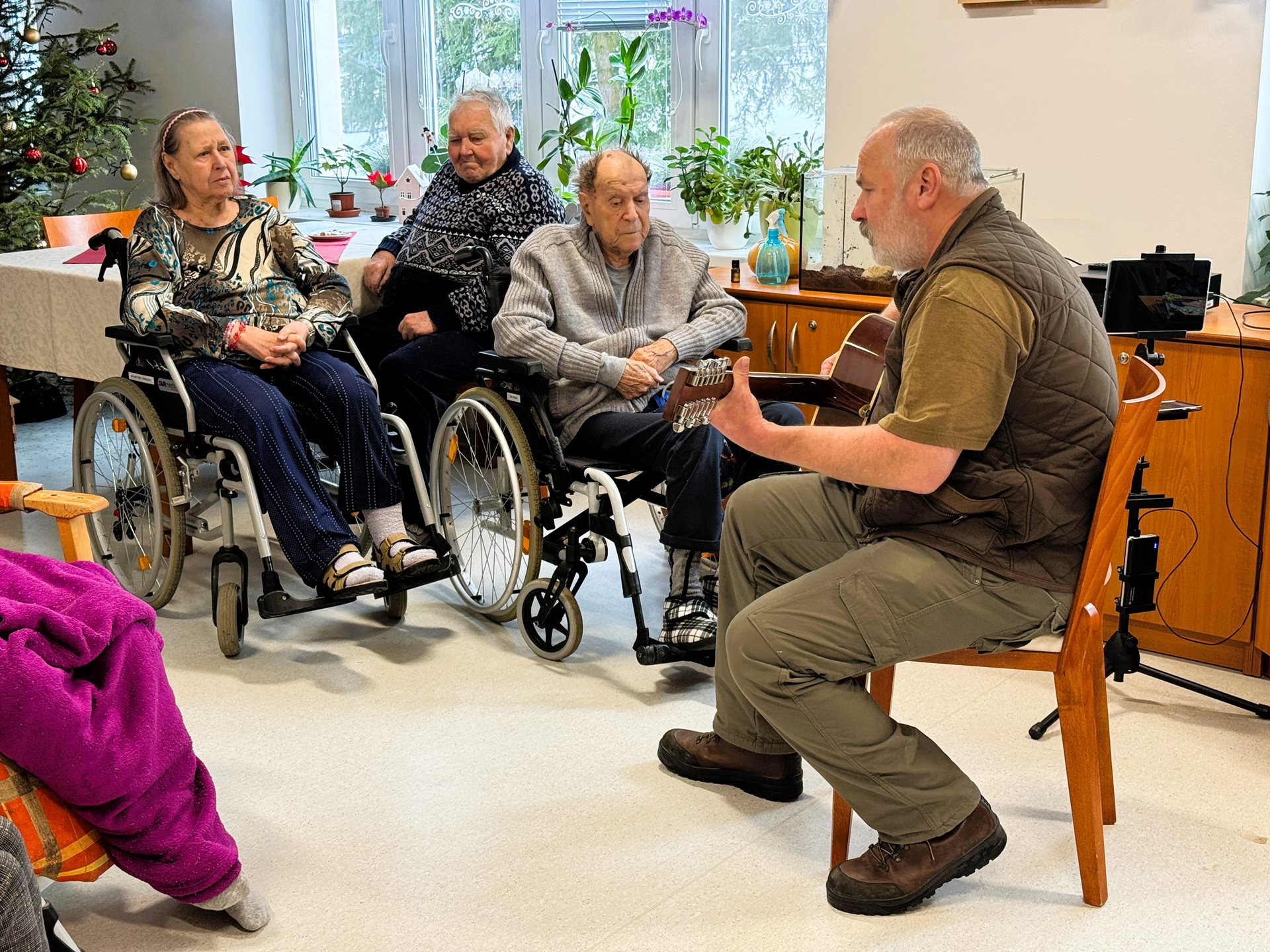Díky tomuto projektu se i našim seniorům v prosinci a lednu splnila přání, která přinesla radost, dojetí a krásné chvíle. Velkým zážitkem bylo splnění hudebních přání, kdy si naši klienti mohli poslechnout oblíbené melodie a společně zavzpomínat. Neméně potěšující byla také návštěva pejsků, která vykouzlila úsměvy na tvářích.