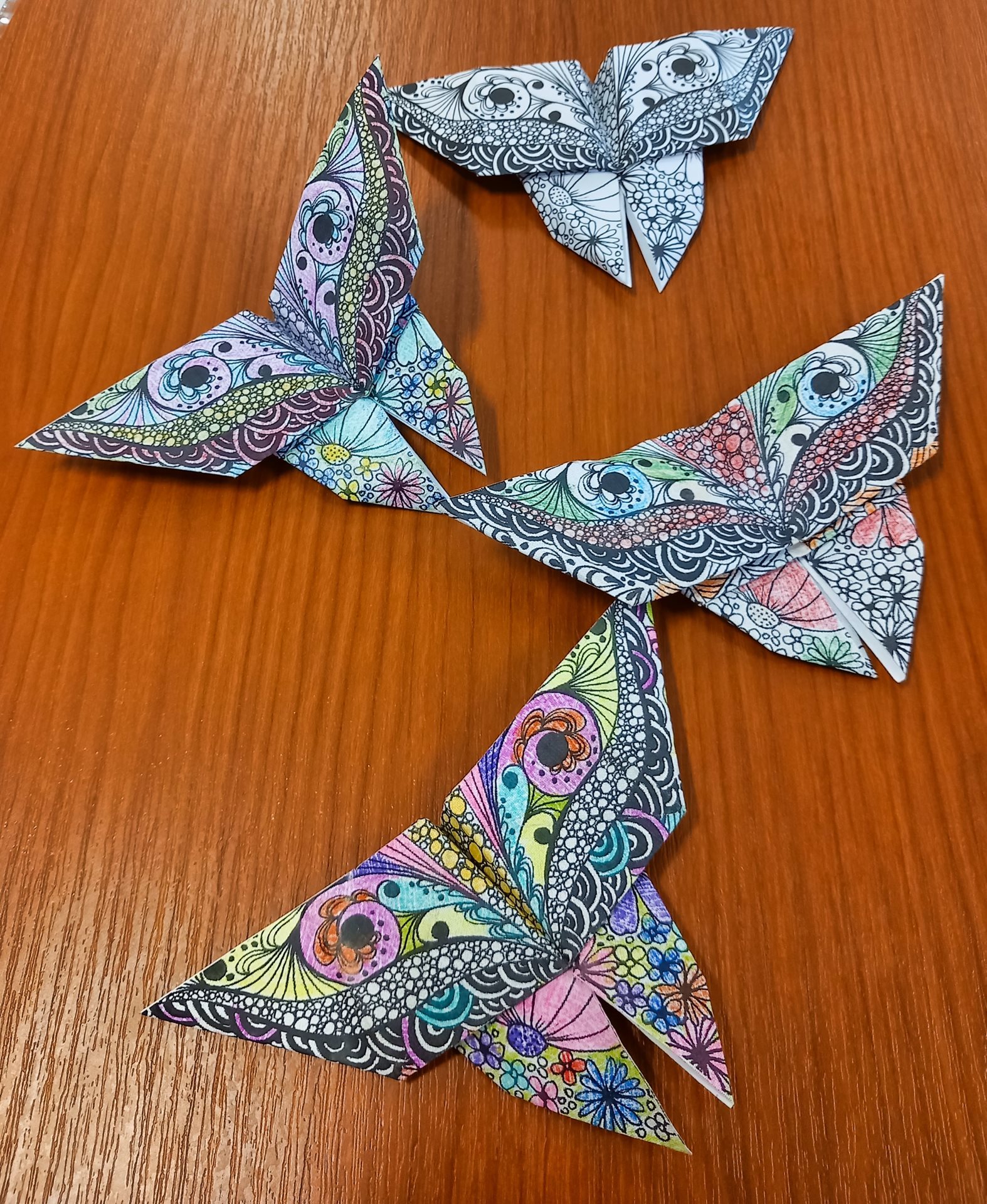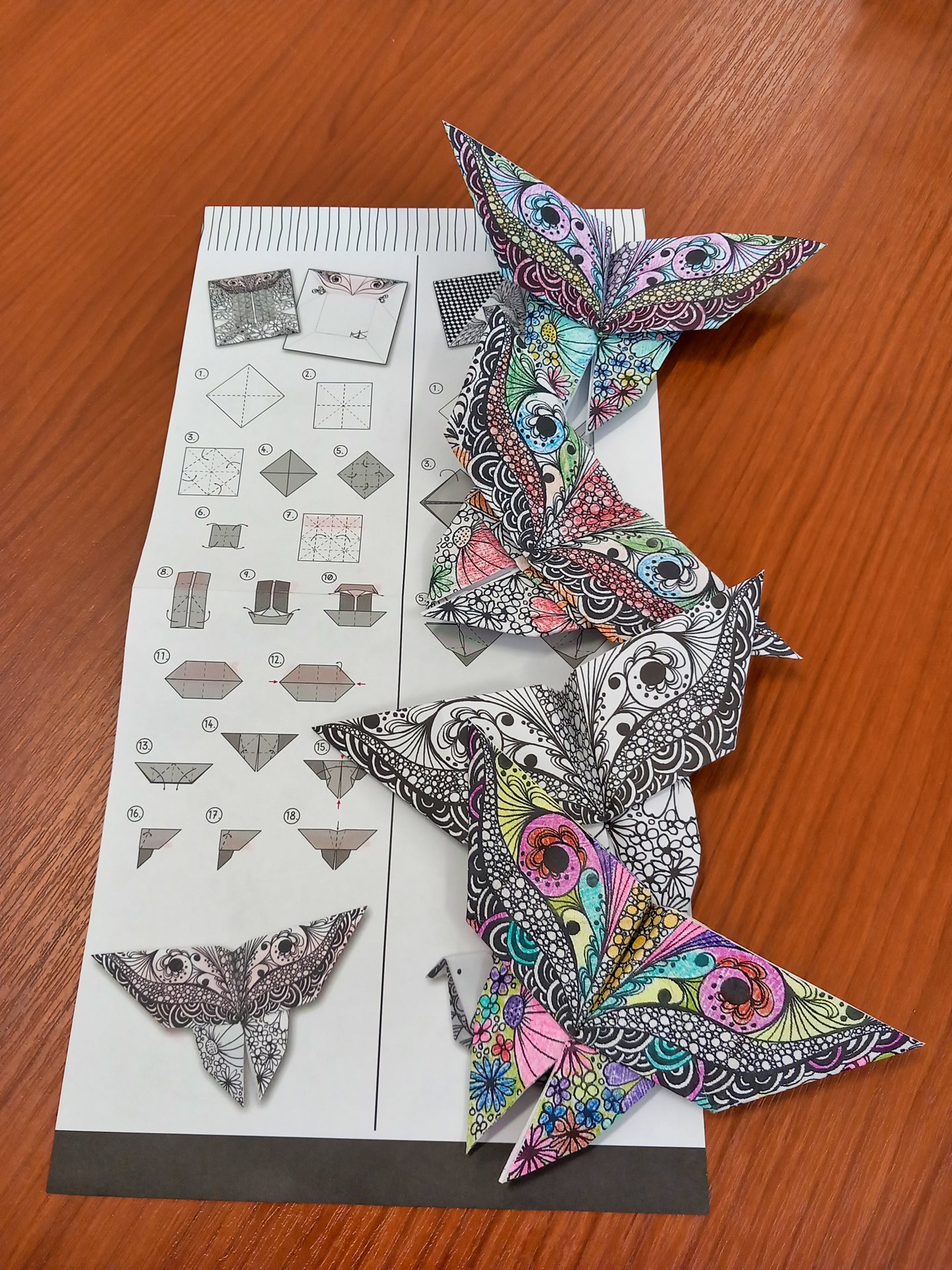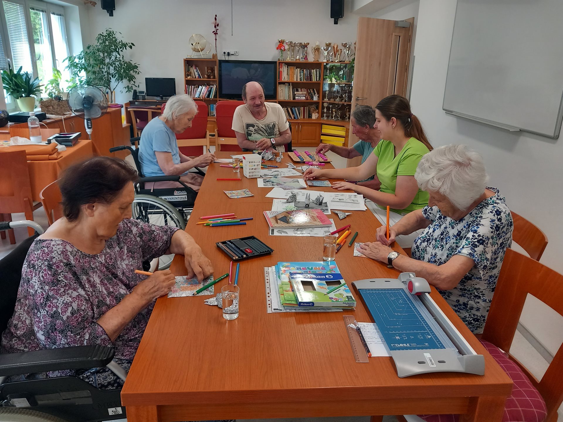 Při dnešním tvoření jsme vyráběli z papíru origami, a to motýlky, rybky a další. Pro uživatele to byla nová zkušenost. Nejprve se obávali, že to nezvládnou, ale nakonec si každý vytvořil svůj originální kousek-origami. Všem se to moc povedlo.