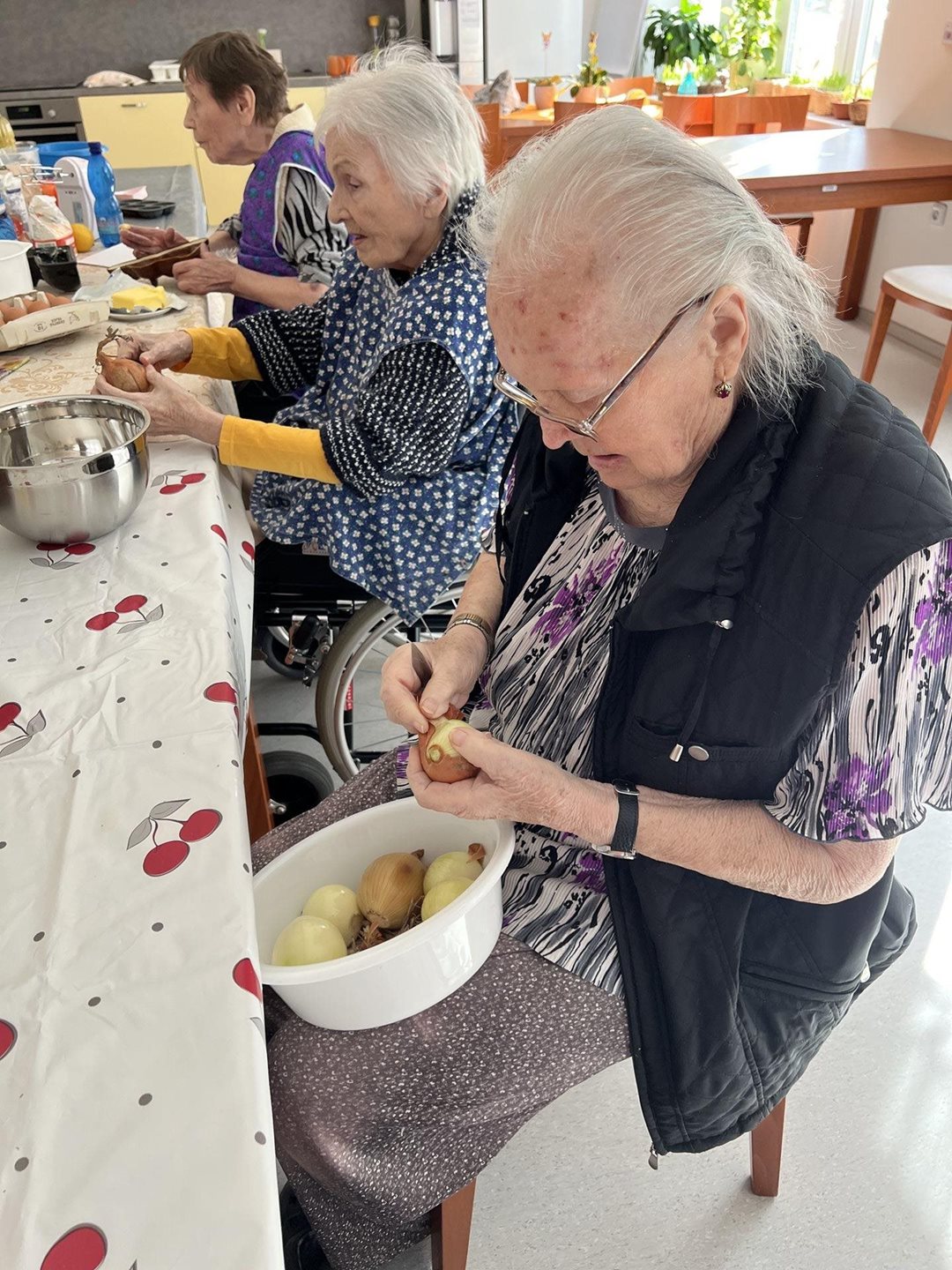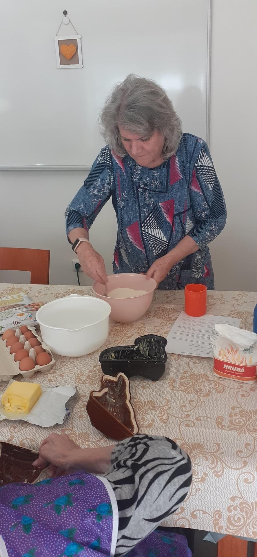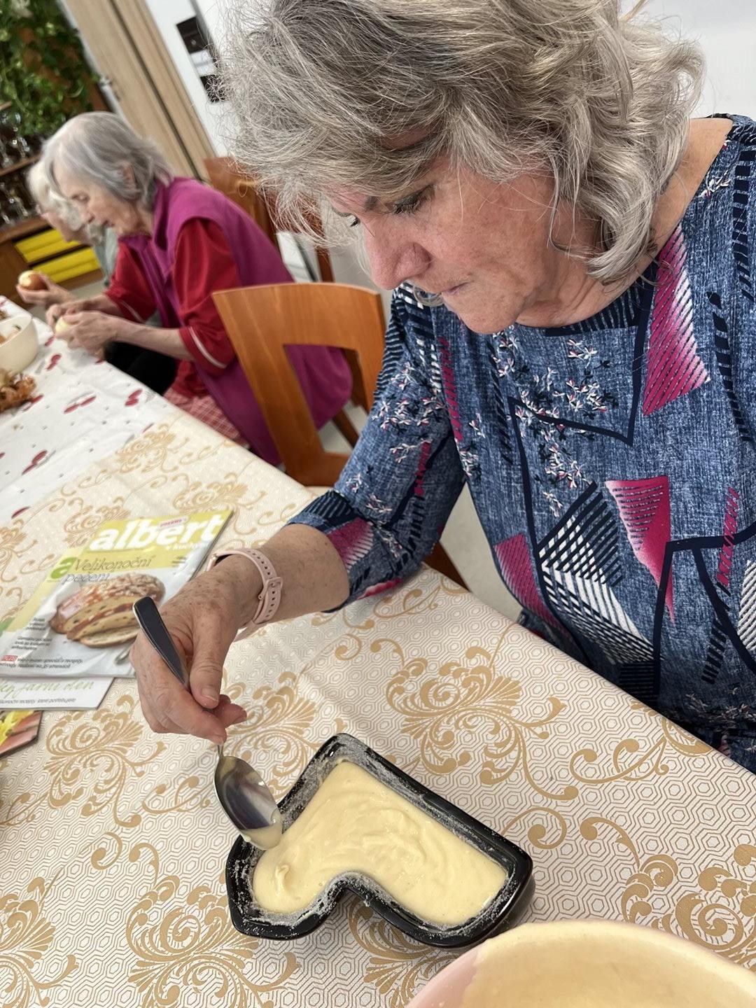 Dnes, na "škaredou" středu, jsme si s našimi uživatelkami udělaly radost a společně si upekly velikonoční beránky, zajíce a vajíčka z olejového těsta, které je rychlé na přípravu. Každá uživatelka, jako správná hospodyňka, se zapojila do přípravy na pečení. Během doby pečení jsme využily čas a pustily se do barvení vajíček pomocí cibulových slupek. Uživatelky si vyzkoušely tuto techniku a byly překvapené z výsledku. Vše se nám podařilo, vejce jsme řádně namastily, aby se leskla a beránky pocukrovaly.