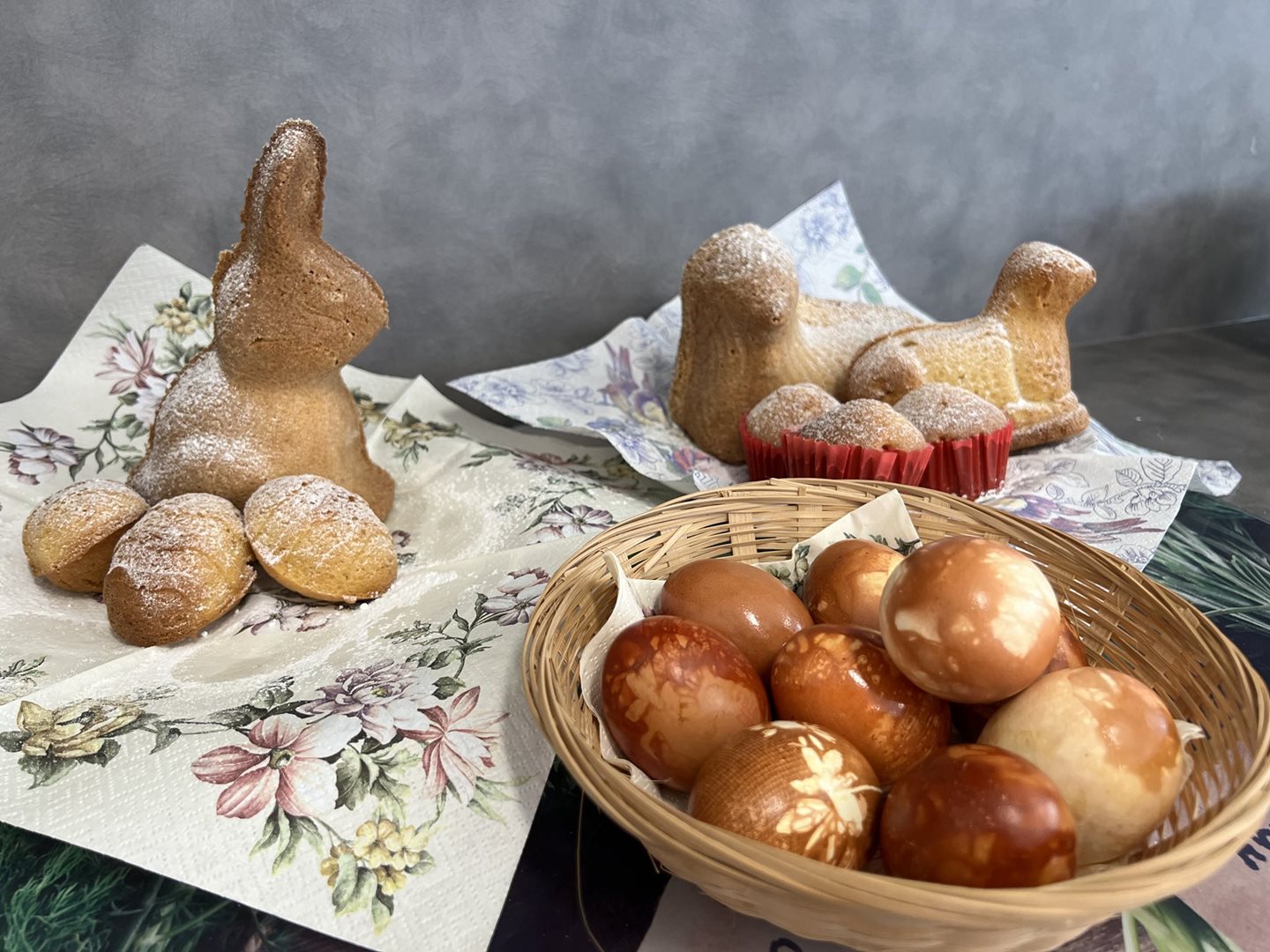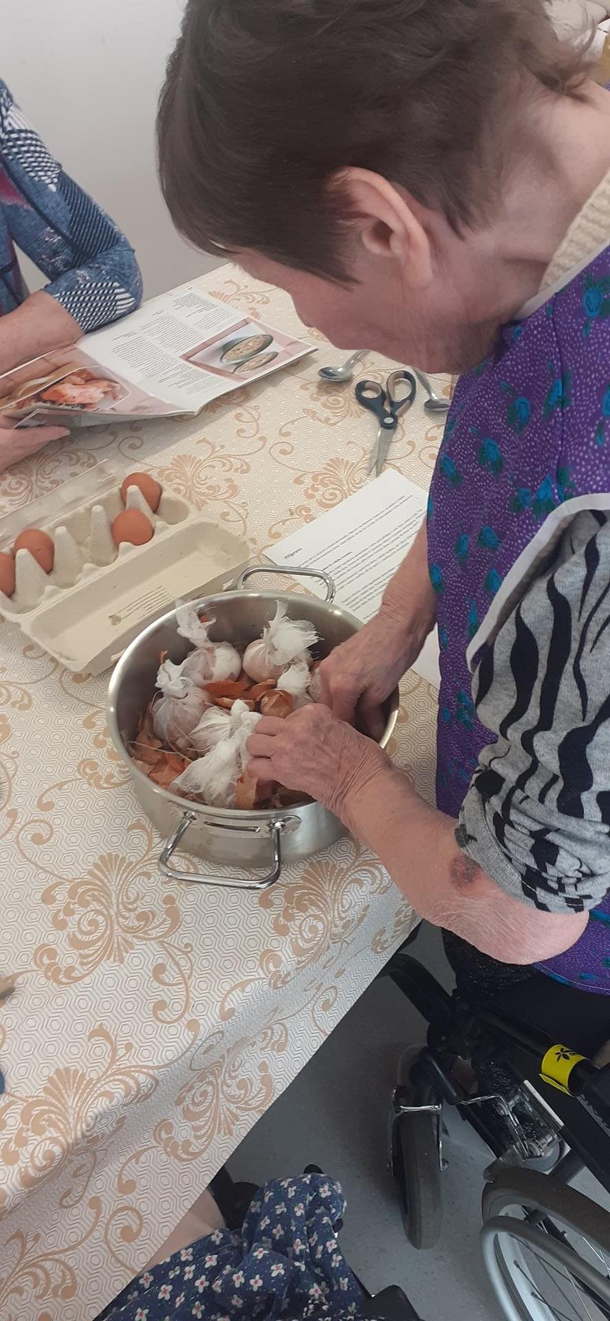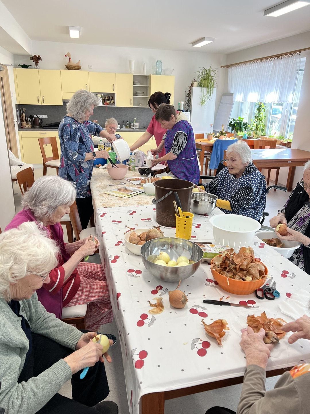 Dnes, na "škaredou" středu, jsme si s našimi uživatelkami udělaly radost a společně si upekly velikonoční beránky, zajíce a vajíčka z olejového těsta, které je rychlé na přípravu. Každá uživatelka, jako správná hospodyňka, se zapojila do přípravy na pečení. Během doby pečení jsme využily čas a pustily se do barvení vajíček pomocí cibulových slupek. Uživatelky si vyzkoušely tuto techniku a byly překvapené z výsledku. Vše se nám podařilo, vejce jsme řádně namastily, aby se leskla a beránky pocukrovaly.