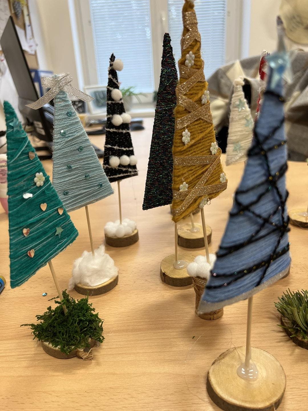 Jelikož za sedmnáct dní máme 1. adventní neděli, rozhodli jsme se, že s uživateli vytvoříme drobnou adventní dekoraci. Uživatelé vyráběli stromečky z kartonu a vlny. Tato aktivita je bavila.