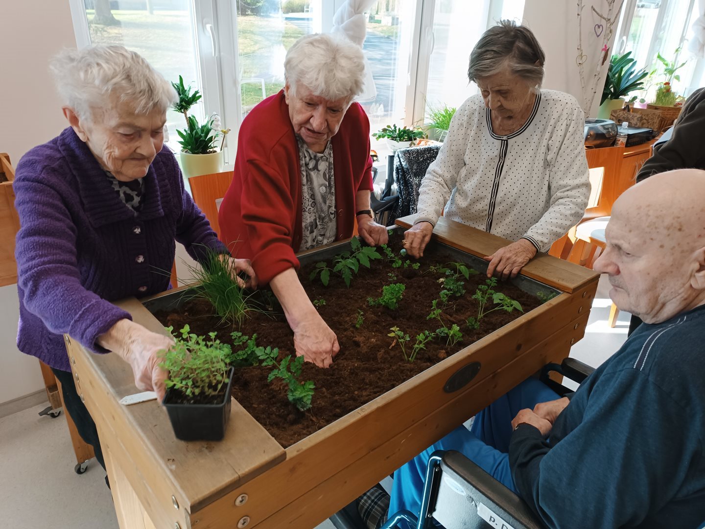 Uživatelé se zapojili do vysazování sazenic bylinek, zeleniny, ale také květin do mobilních záhonů. V rámci aktivity uživatelé poznávali druhy bylinek, sazenic. Zavzpomínali si, co dříve pěstovali na zahrádkách.