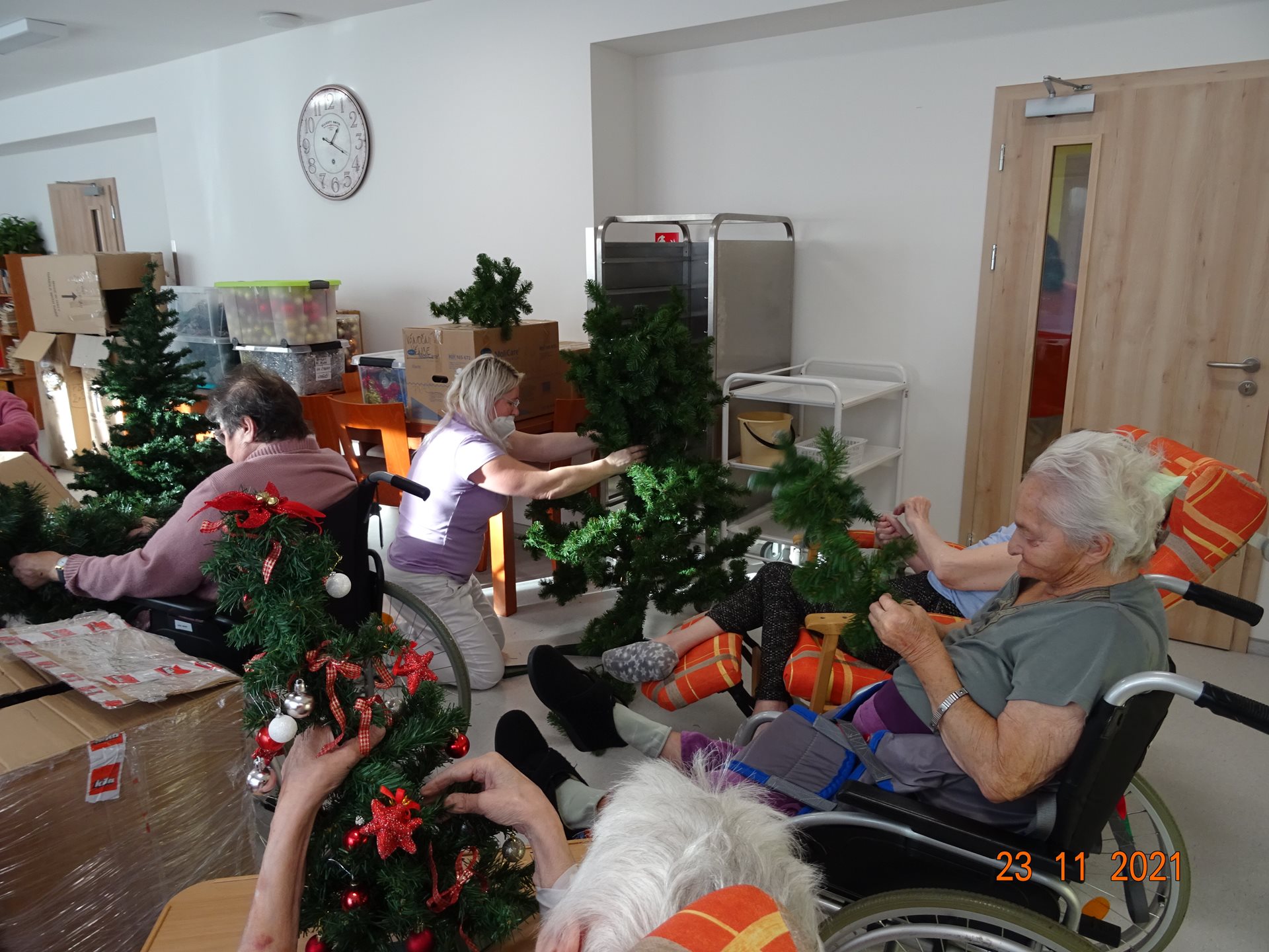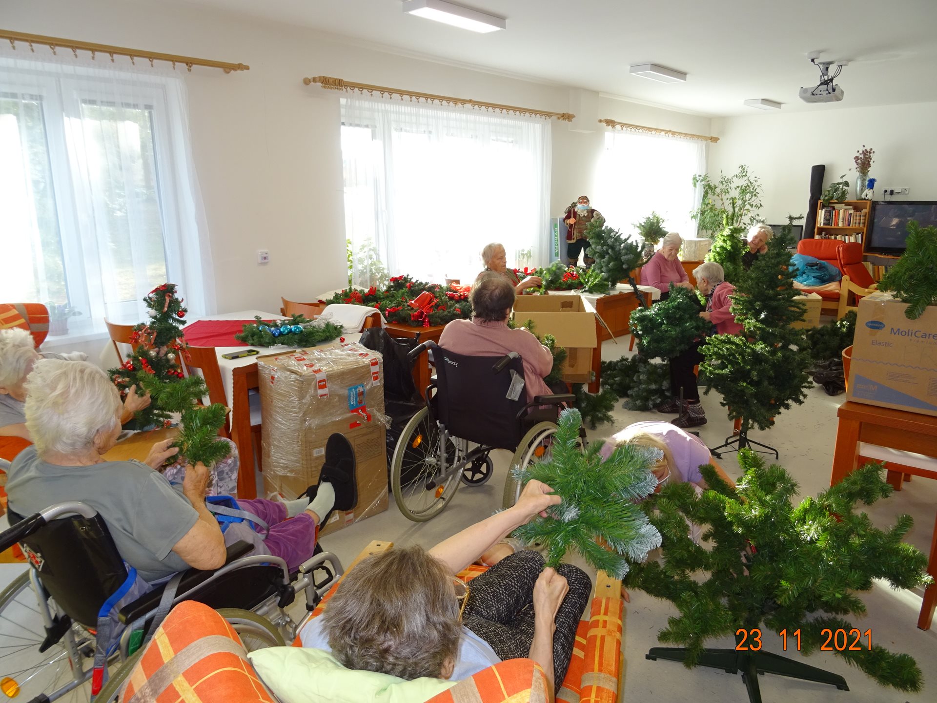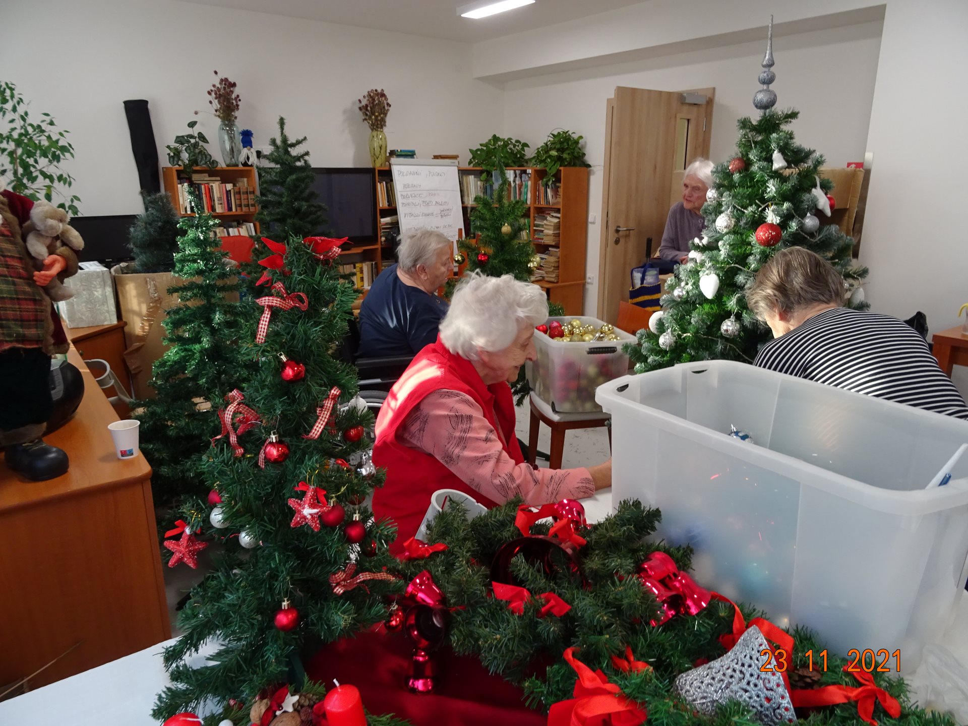 Senioři pomáhali se zdobením vánočních stromků s velkým nadšením a připomněli si tak nastávající vánoční atmosféru. Každý, kdo se zapojil, využil svou fantazii a zdobil dle svých představ. Stromky byly krásné a po ozdobení jsme je přesunuly na svá místa v prostorách DAS, aby se na první adventní neděli rozsvítily.